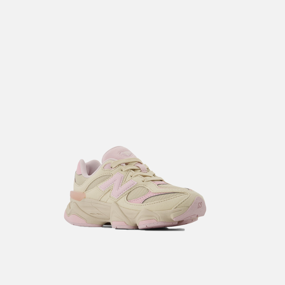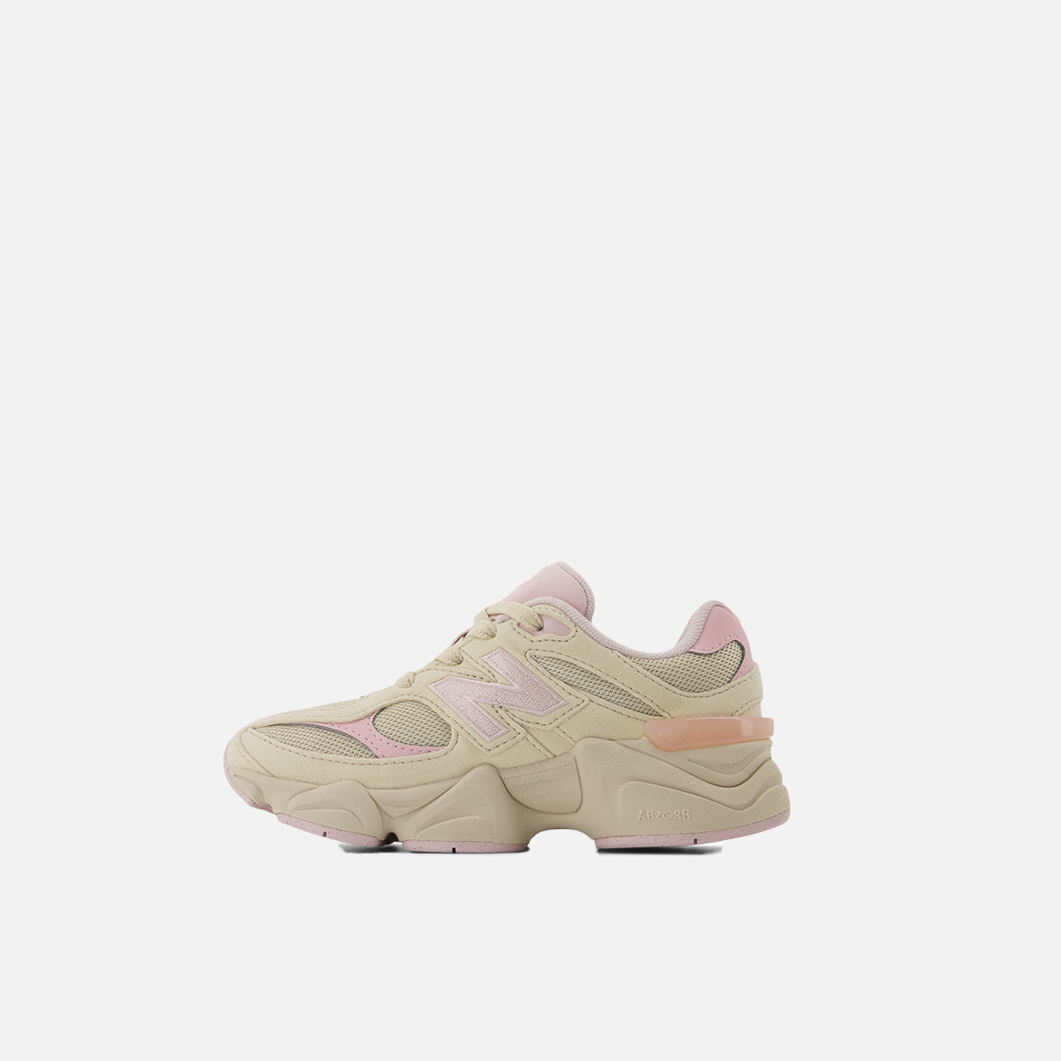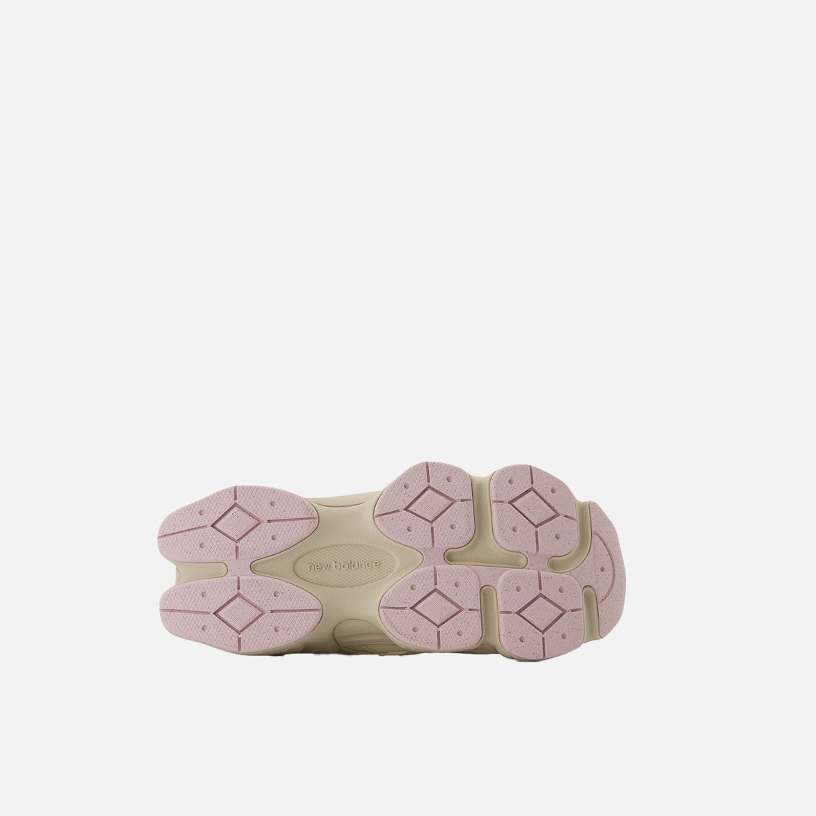 New Balance injects the DNA of their signature 99X series into a brand new model, the 9060, that marries an early aughts aesthetic with modern technology. This 9060 "Dream State/Bisque" constructs its upper from beige mesh and suede with pink leather layered on top in a retro-futuristic Y2K aesthetic. Branding appears courtesy of 991-inspired tongue tag, pink leather N on the lateral side, embroidered 'N' logo on the medial side, and NB on the heel. A pink translucent CR heel counter sits just above the sculpted dual-density midsole featuring ABZORB and SBS cushioning. Finally the split pod outsole features a diamond pattern inspired by the 860 to finish off the heritage influence.