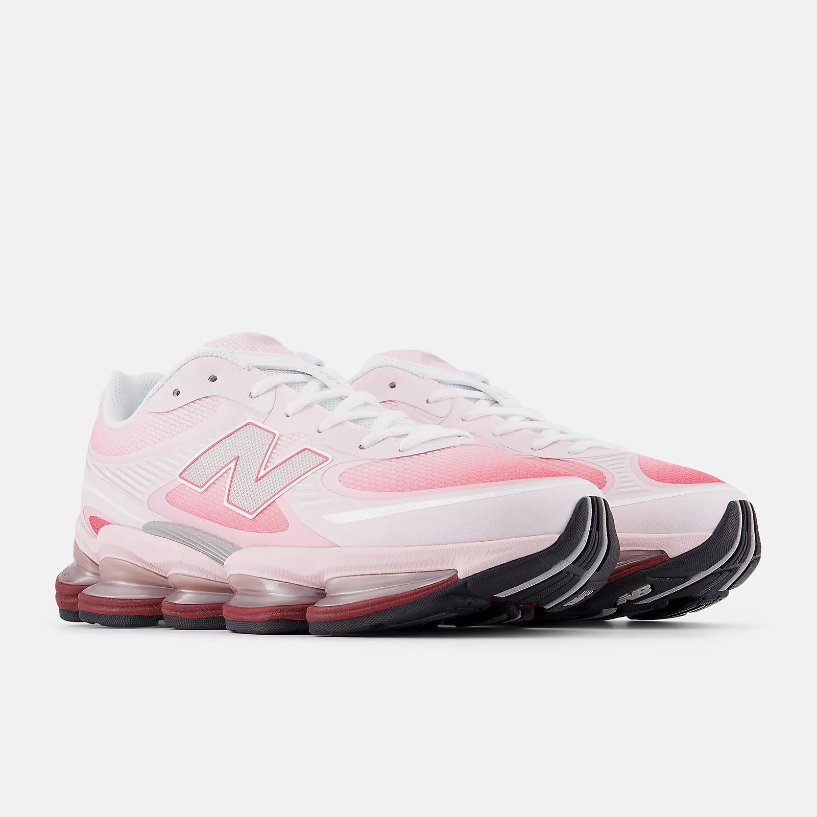 Continuing in the vein of New Balance's line of Y2K-inspired lifestyle runners, the ABZORB 2000 is another triumph of heritage design. It takes a distinctive feature of those 2000s running-inspired classics and makes it the focal point of this all-new style. The progressive, experimental design features an eye-popping full-length combination of ABZORB cushioning and burgundy ABZORB SBS pods covered in a black rubber outsole. This thoroughly futuristic outlook is also reflected with a minimalist-influenced upper design, featuring pink mesh covered by pink and white no-sew synthetic overlays with New Balance branding at the tongue, heel and signature side N logo.