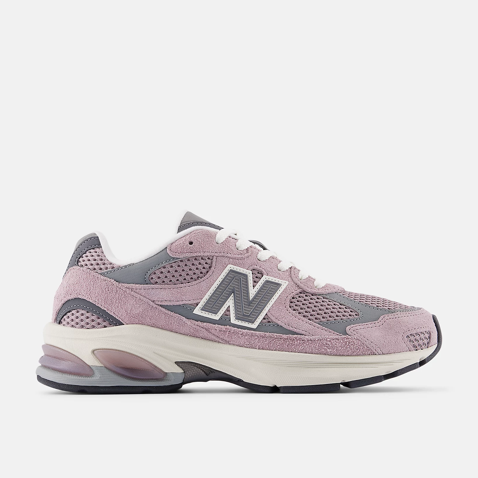 New Balance didn't have to look too far for inspiration for their newest silhouette, tapping into their own early-aughts design language for the all new ABZORB 2010 "Ice Wine/Castlerock". Combining the excitement of a progressive, all-new style with a sense of the familiar, the shoe pairs a pink diamond-knit mesh upper with tonal nubuck and grey synthetic overlays. The segmented ABZORB sole unit, a signature feature of several 2000s-era fan favorites, features more expansive proportions, becoming the centerpiece of this new design. A grey molded N logo on the sides and 2000s-era branding on the tongue and heel finish off the design.
