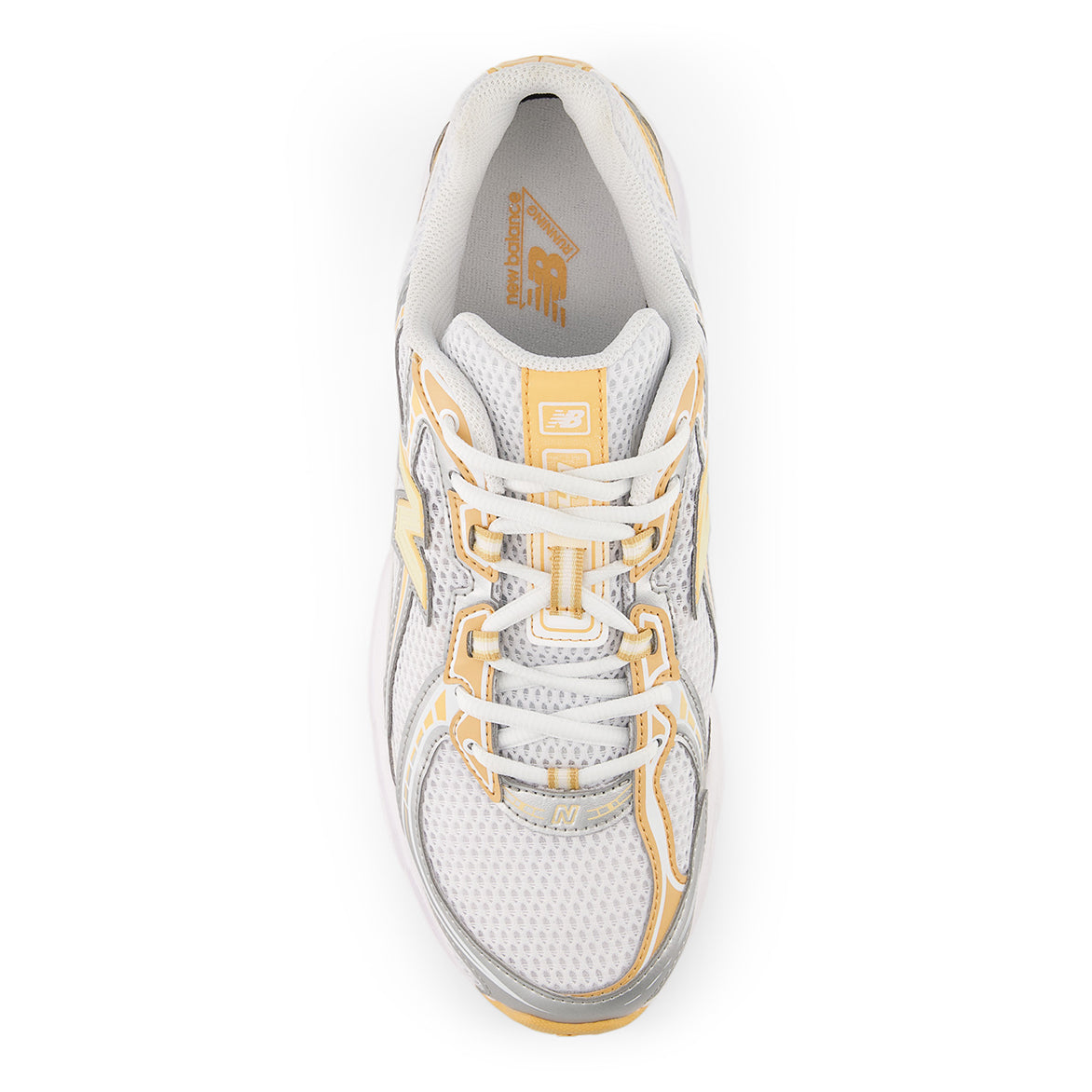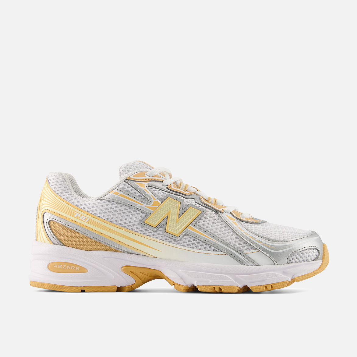 New Balance's longtime fan favorite early-aughts daily runner returns from the archives, poised to inspire a whole new generation of devotees with the updated 740 "White/Indoor Court/Ash Wood". The 740 combines an open knit white mesh upper, yellow and silver angular synthetic overlays, molded TPU "N" logo, segmented ABZORB midsole and a gum rubber outsole. NB branding on the tongue and heel, white laces and lining finish off the look.
