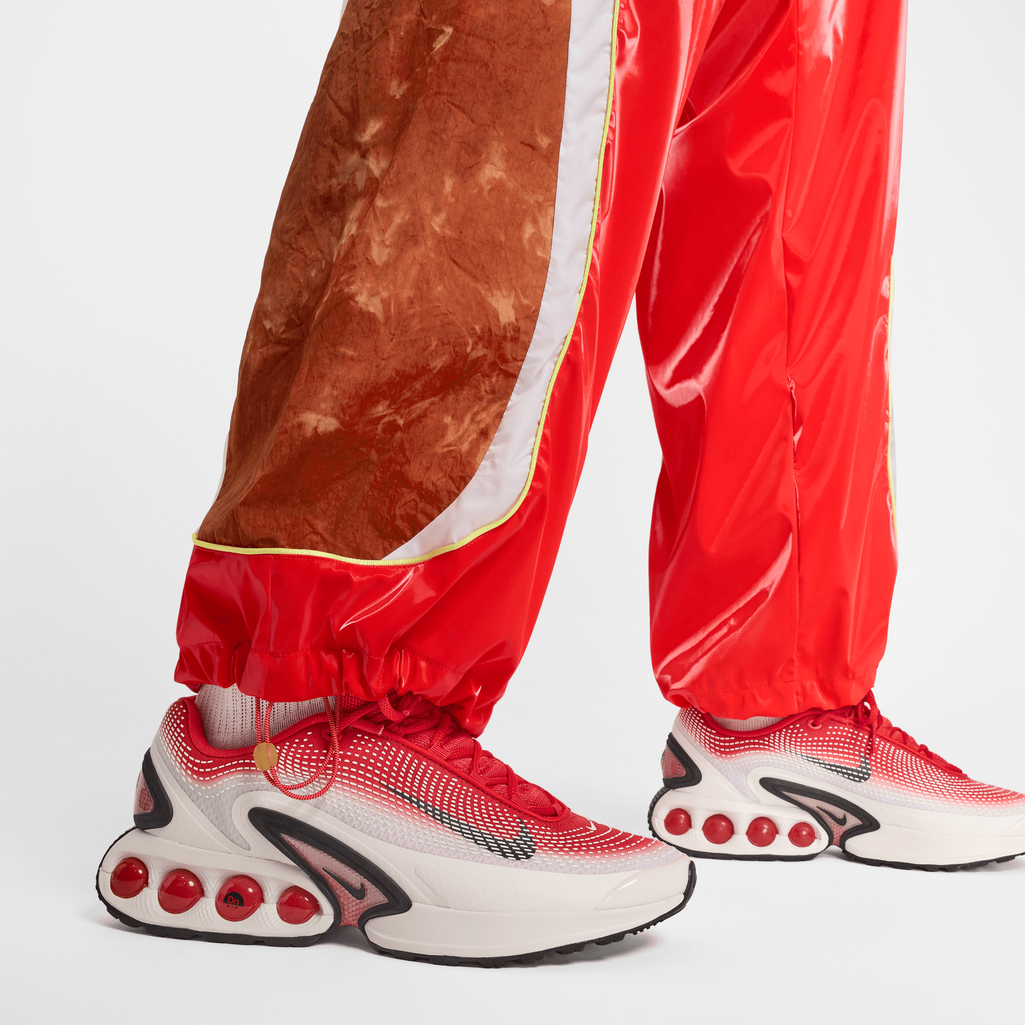 Nike reimagined the classic track pant with high-gloss knit, wave-dyed taffeta and contrasting trim. From off-balance retro color combinations to fresh fits and fabrics, Project F.R.O.G. breathes new life into sport apparel. These pants offer a bold combination of a high-gloss coated fabric and wave-dyed taffeta with contrasting trim. It's lined with mesh for breathability and comfort. Concealed pockets with zip closures help keep small items secure.