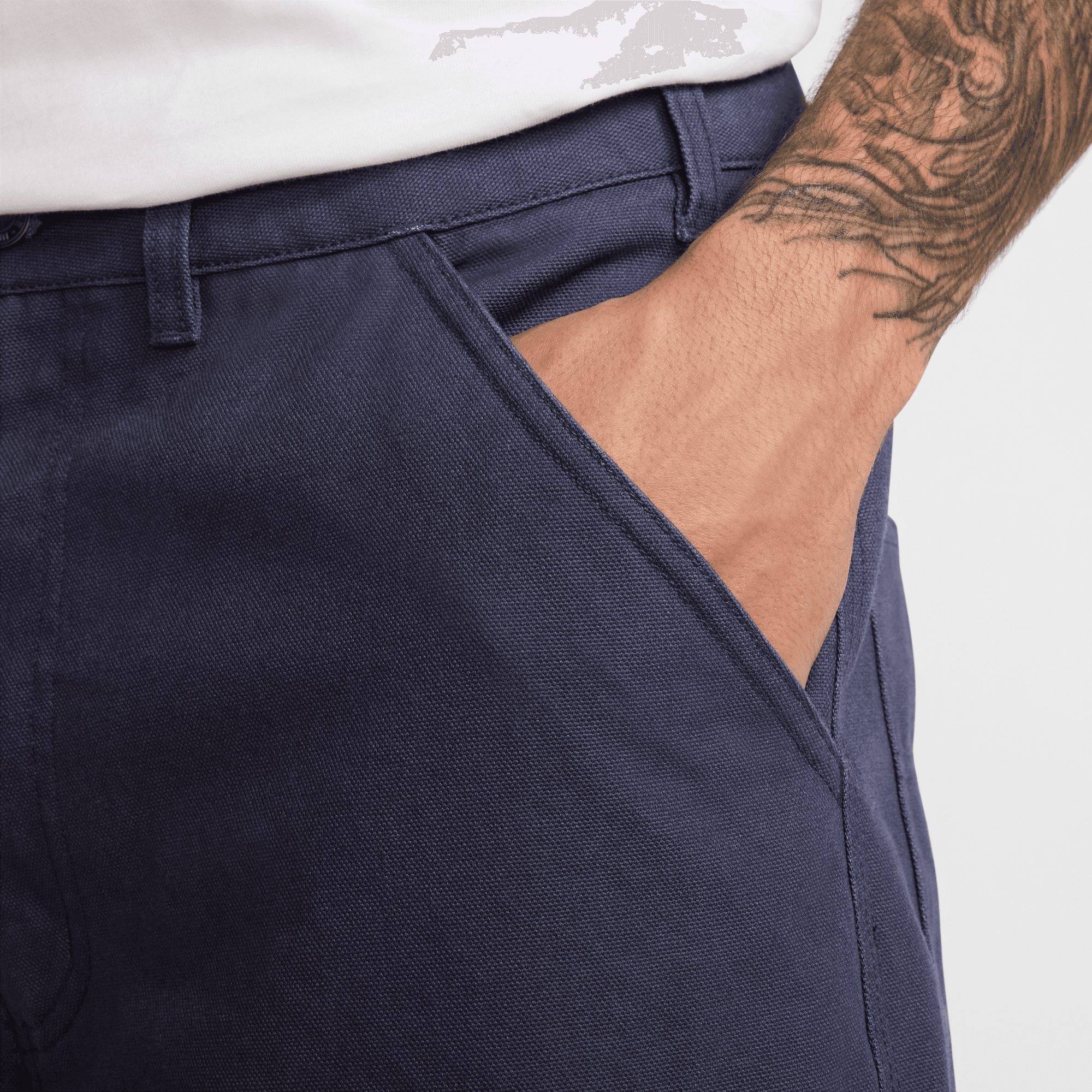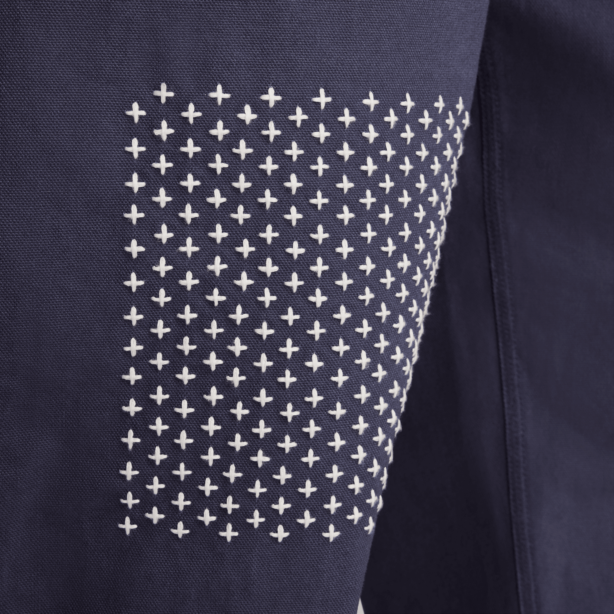 These durable Carpenter pants constructed with heavyweight, 100% cotton canvas are updated with sashiko stitching—a traditional Japanese sewing technique—to reinforce the knees.