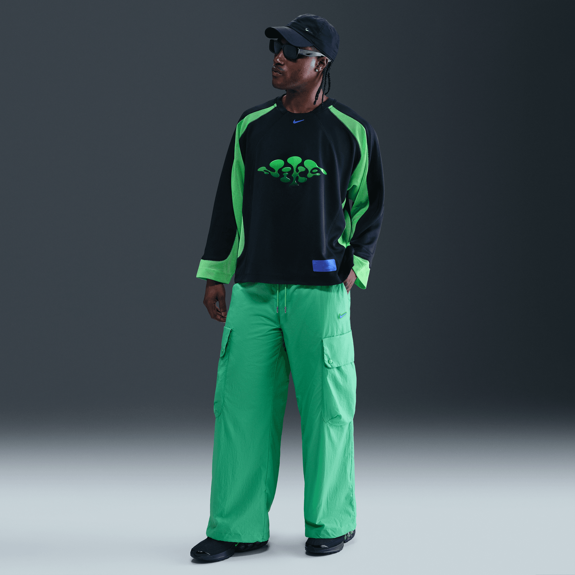 The Project F.R.O.G. Cargo Pants pants are made from 100% nylon ripstop fabric that repels water. Oversized fit is extra roomy through the seat and thighs, while an elastic waistband with external drawcord, large cargo pockets with snap closures and elastic bungees in the cuffs for styling around your shoes.