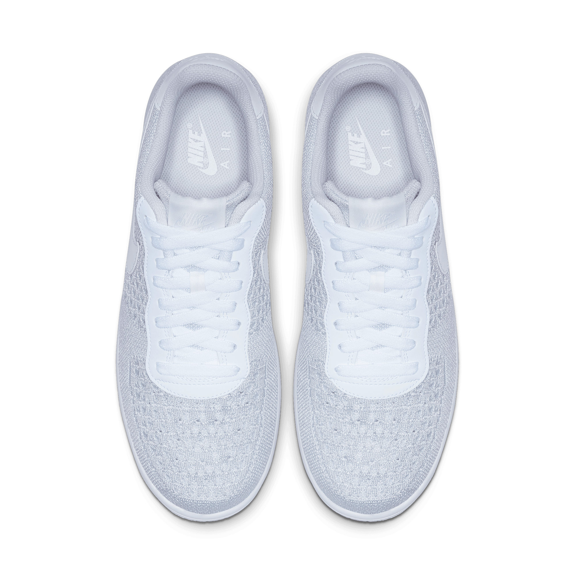 The Nike Air Force 1 Flyknit 2.0 is back in a lighter-than-ever design with this "White/Pure Platinum" colorway. Rocking a featherweight Flyknit construction in platinum and white with classic AF-1 design lines and white leather on the eyestay, heel and swoosh, it serves up old-school hoops vibes with a new school look. The signature Nike Air midsole is durable enough to double as the outsole, dramatically reducing the overall weight of the shoe.
