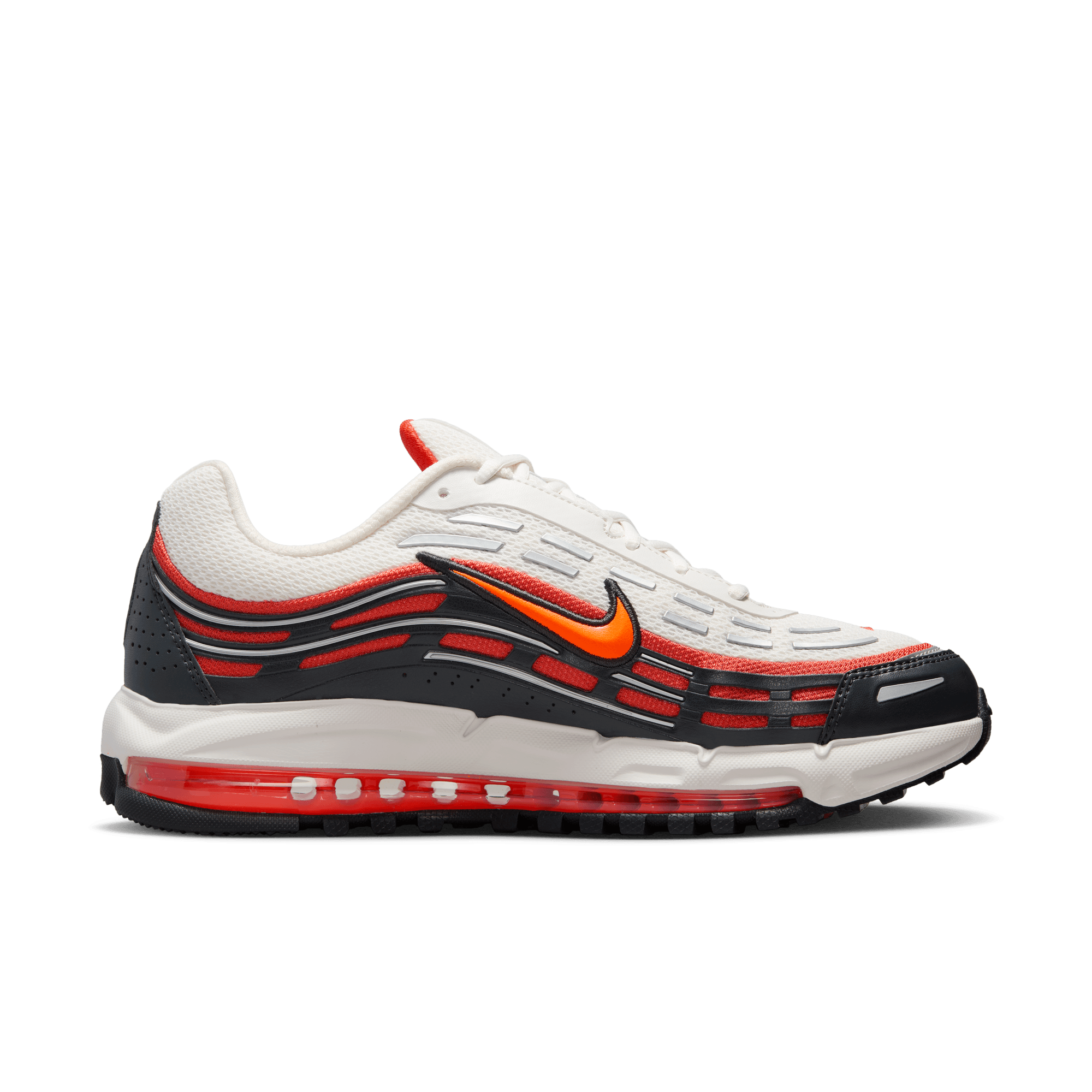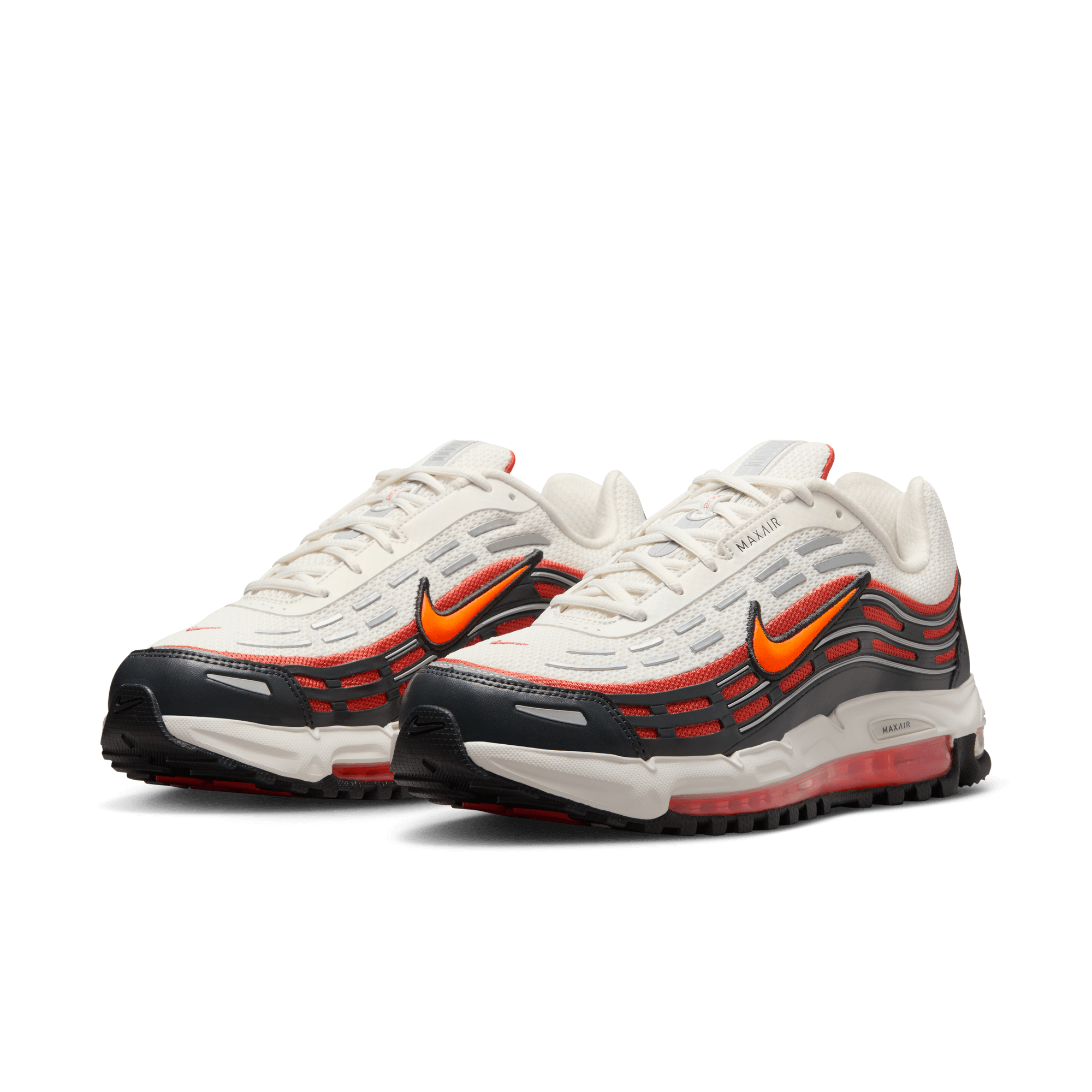 A beloved late '90s style returns seamlessly into the current sportstyle trend on the Air Max TL 2.5. Inspired by the Air Max 97, the model incorporates the 97's wavy lines in its fused overlays on the vamp and black TPU mudguard, along with an orange full-length Max Air unit. The white and orange mesh upper is accented with white synthetic leather on the vamp and black leather toe and heel patches. White laces and lining, orange swooshes on the sides, and branding on the toe, tongue and heel finish off the look.