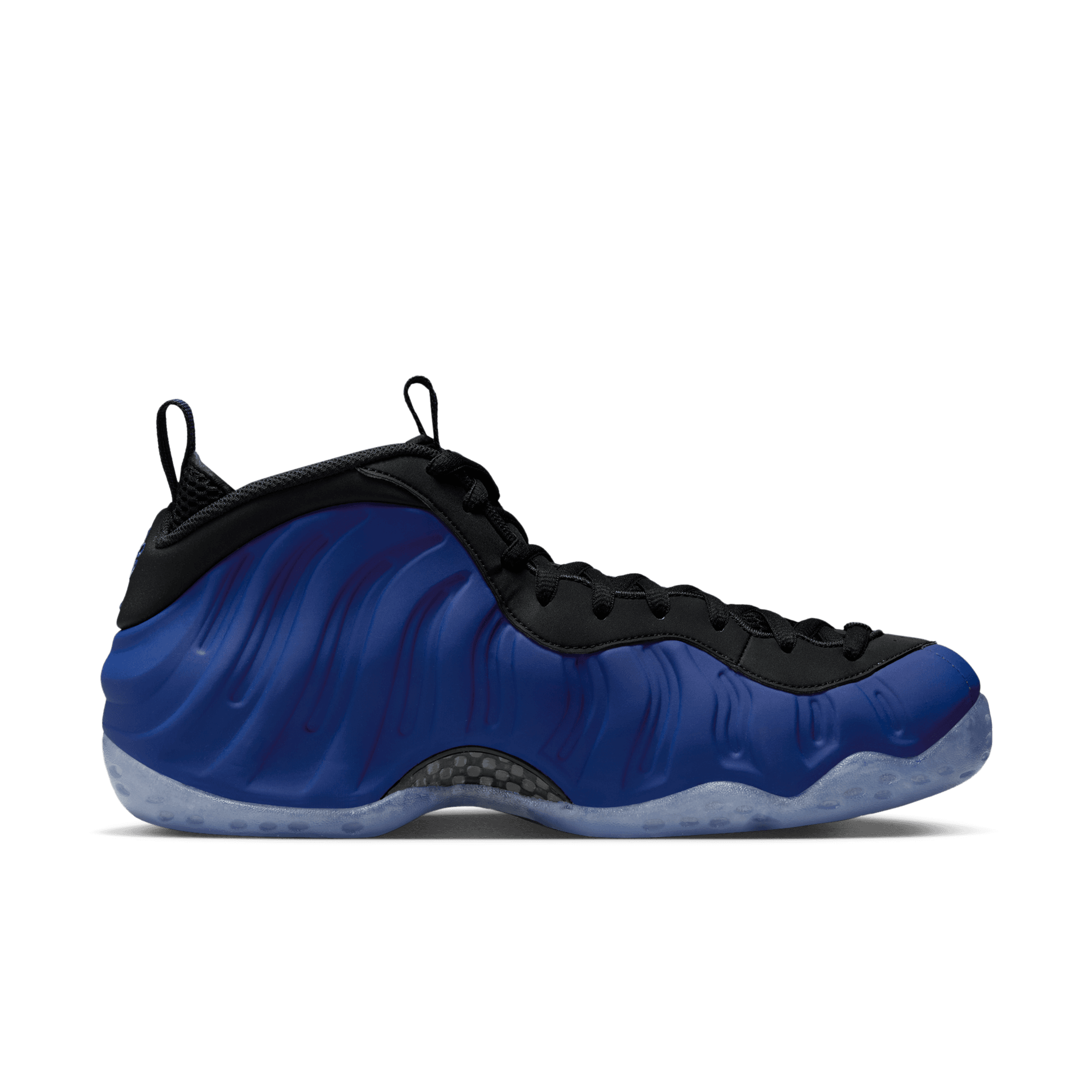 Another take on a classic Foamposite colorway is here, but just a shade darker than the original, on the Air Foamposite One "Deep Royal". This version of the classic silhouette boasts a deep royal blue Foamposite shell, slightly darker than the original 1997 Foamposite Pro, with black detailing on the nubuck eyestay, tongue, laces, lining and pull tabs. The Nike branding on the tongue and toe, and '1 Cent' logo on the heel are the same hue as the upper. A carbon fiber midfoot plate and semi-translucent blue rubber outsole complete the design.