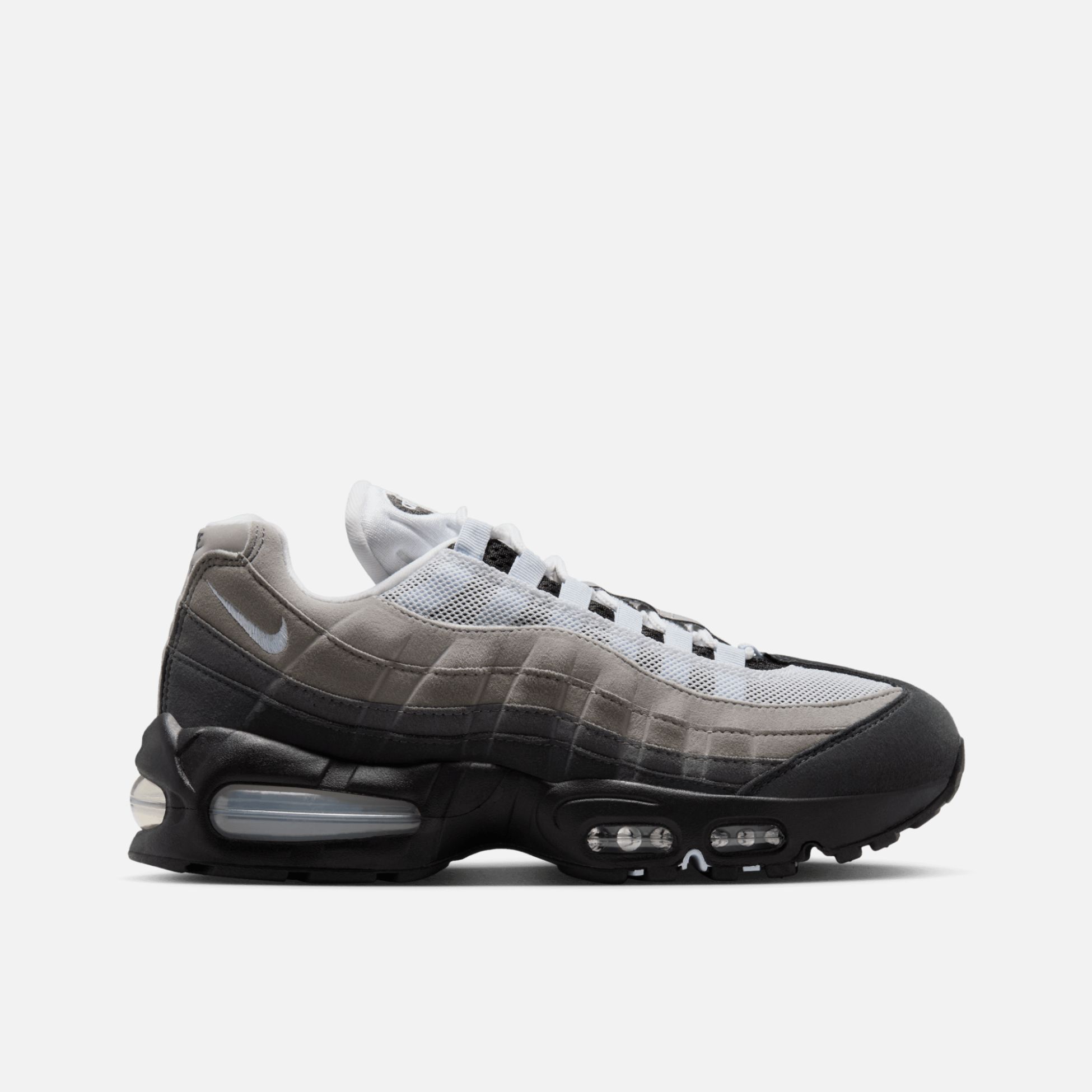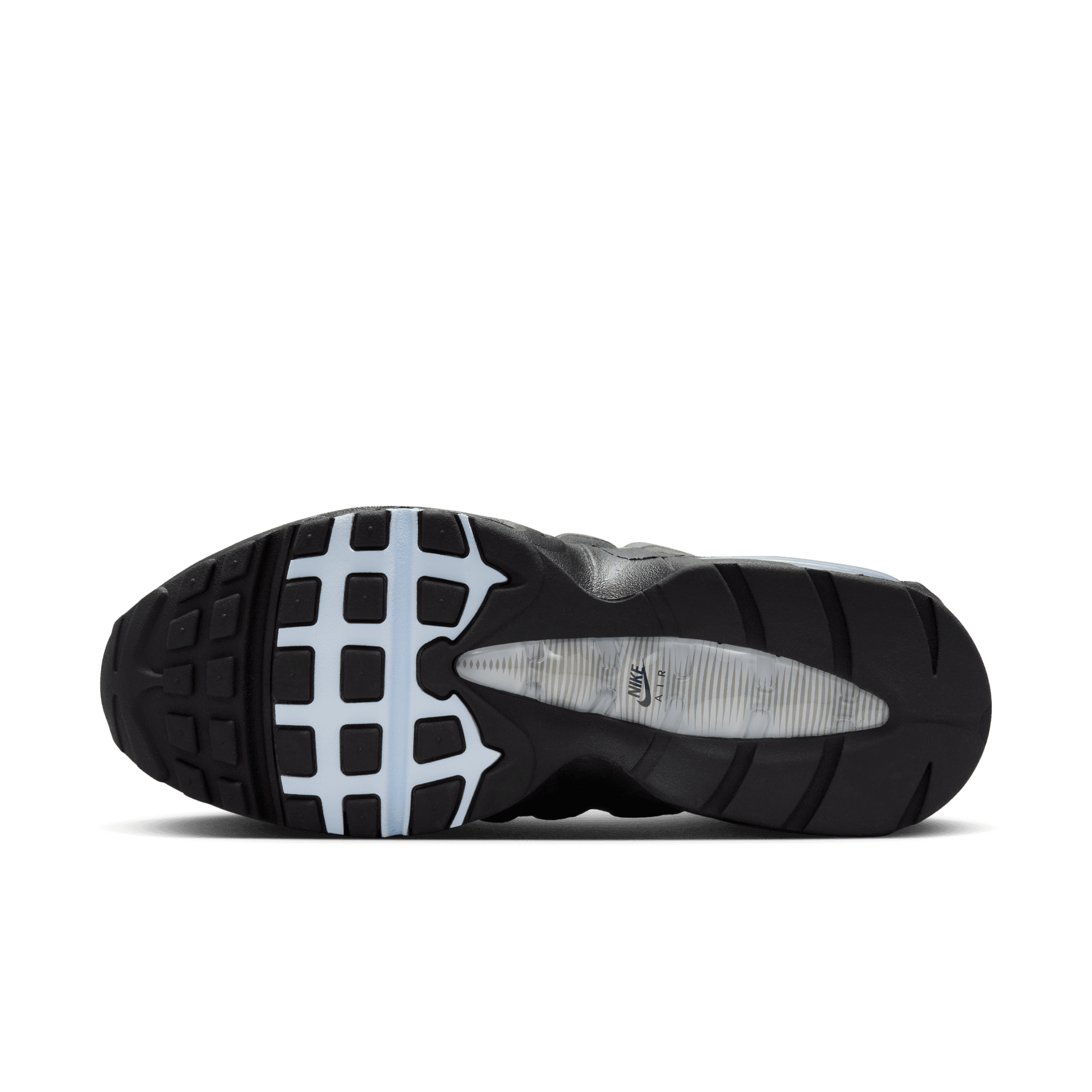 Nike's 30th anniversary celebration of the Air Max 95 continues with another standout release in its original "Big Bubble" design with the WMNS Air Max 95 OG "Blue Tint". The iconic model, whose design was inspired by the human body, features a wavy, multi-panel greyscale suede upper overlaid with a black suede toecap, white mesh netting and light blue eyelets. Light blue accents also hit the small embroidered swooshes on the rear quarter, embroidered tongue logo, insole and Air bags. Speaking of those Air bags, the bigger Max Air units in the heel and forefoot of the black foam midsole bring back the original look from 1995 when the air bags contained a more expansive gas. A black rubber outsole with light blue accents and the shoe's original PSI markings on the bottom of the Max Air unit finish off the design.