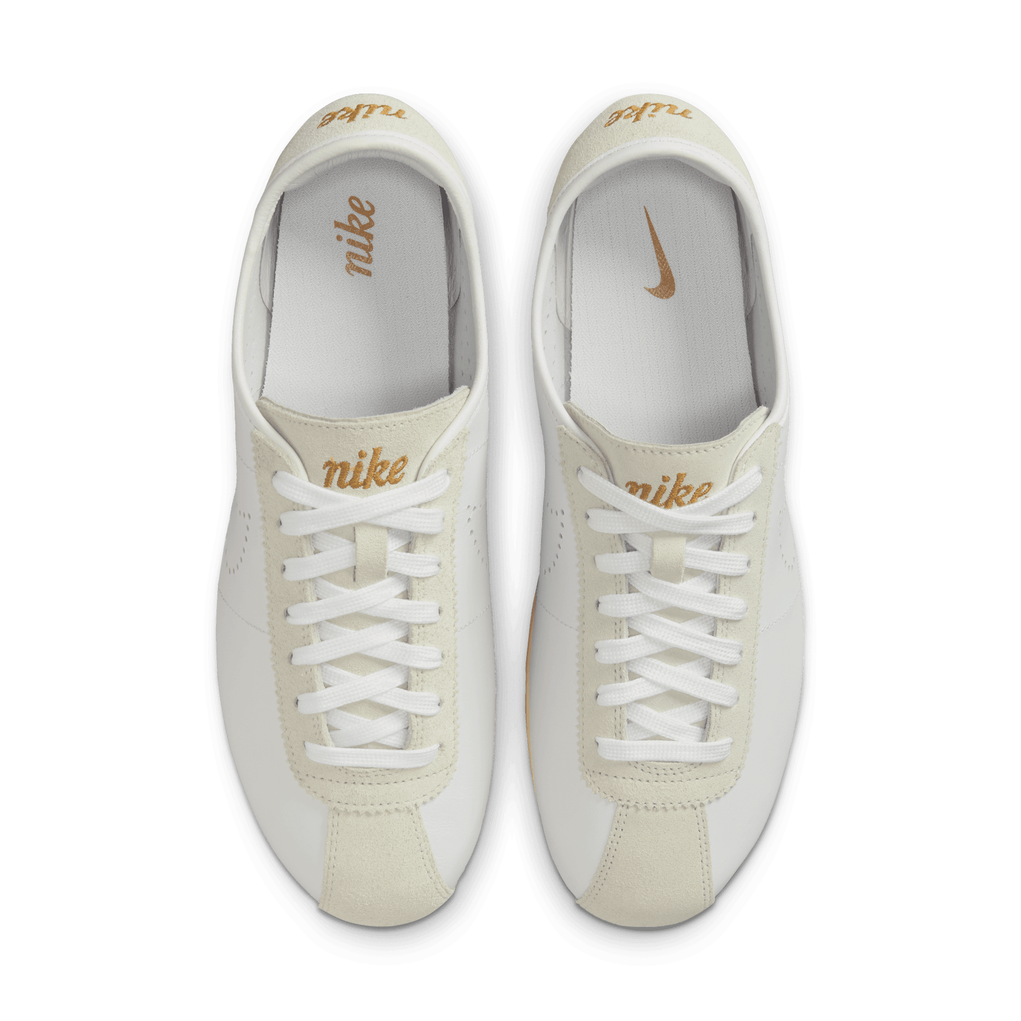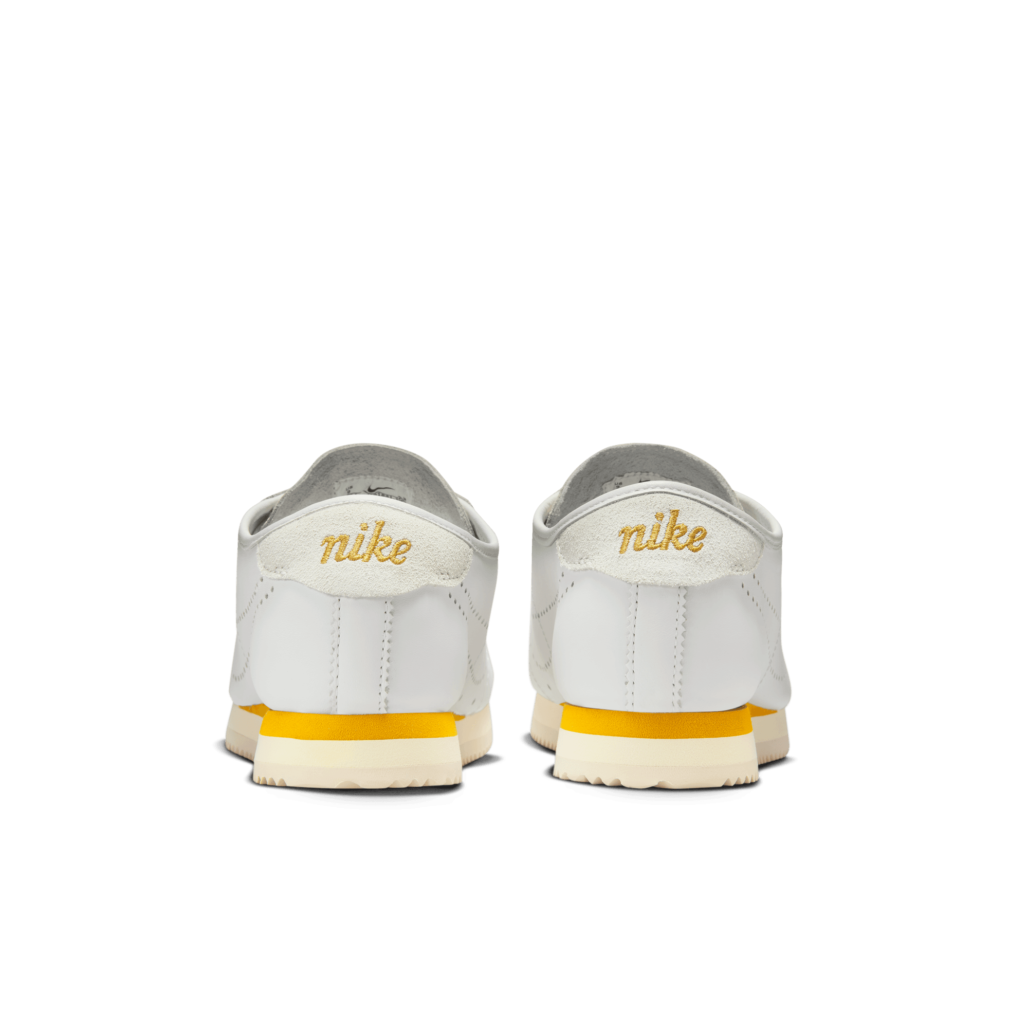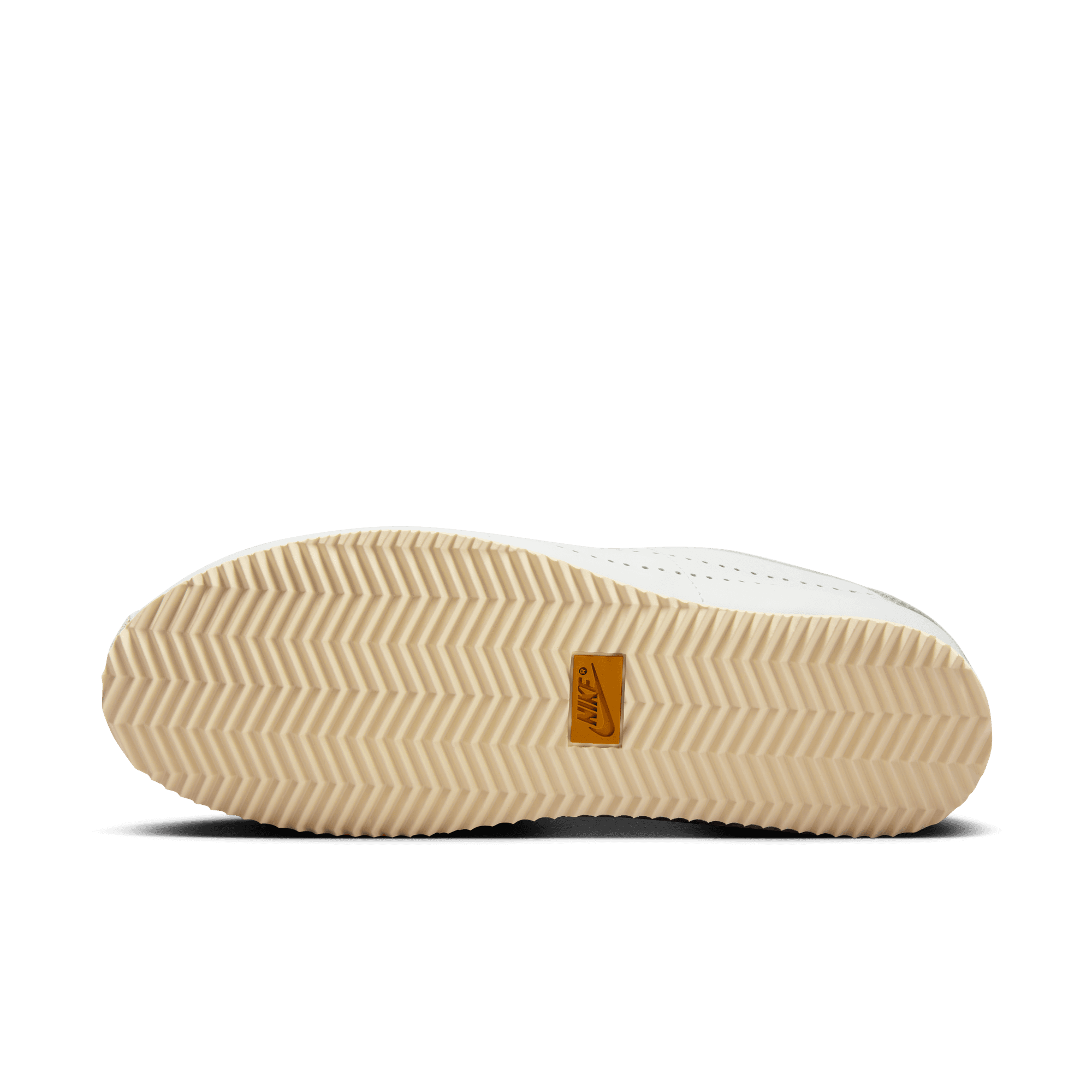 Nike's Cortez silhouette debuted in 1972 and has been one of their most popular styles ever since. The WMNS Cortez Leather "White / Light Bone" is the latest incarnation of the classic silhouette, and is built with a white leather upper and grey suede overlays on the eyestay, toe and heel tab. A perforated outline swoosh replaces the leather swoosh that normally graces the sides, while embroidered Nike branding hits the suede tongue and heel. A soft EVA midsole and a sail sharktooth outsole finish off this certified sneaker staple.