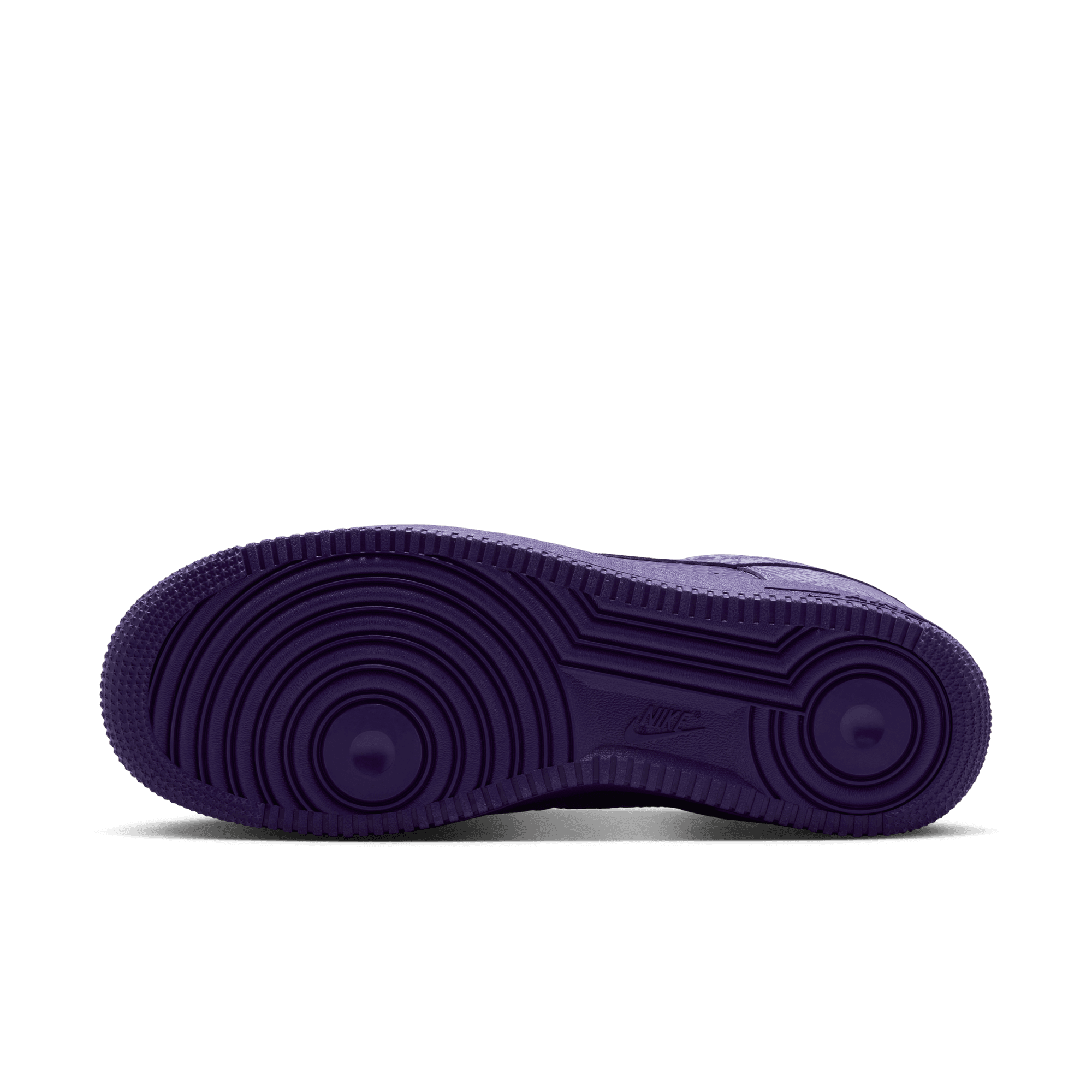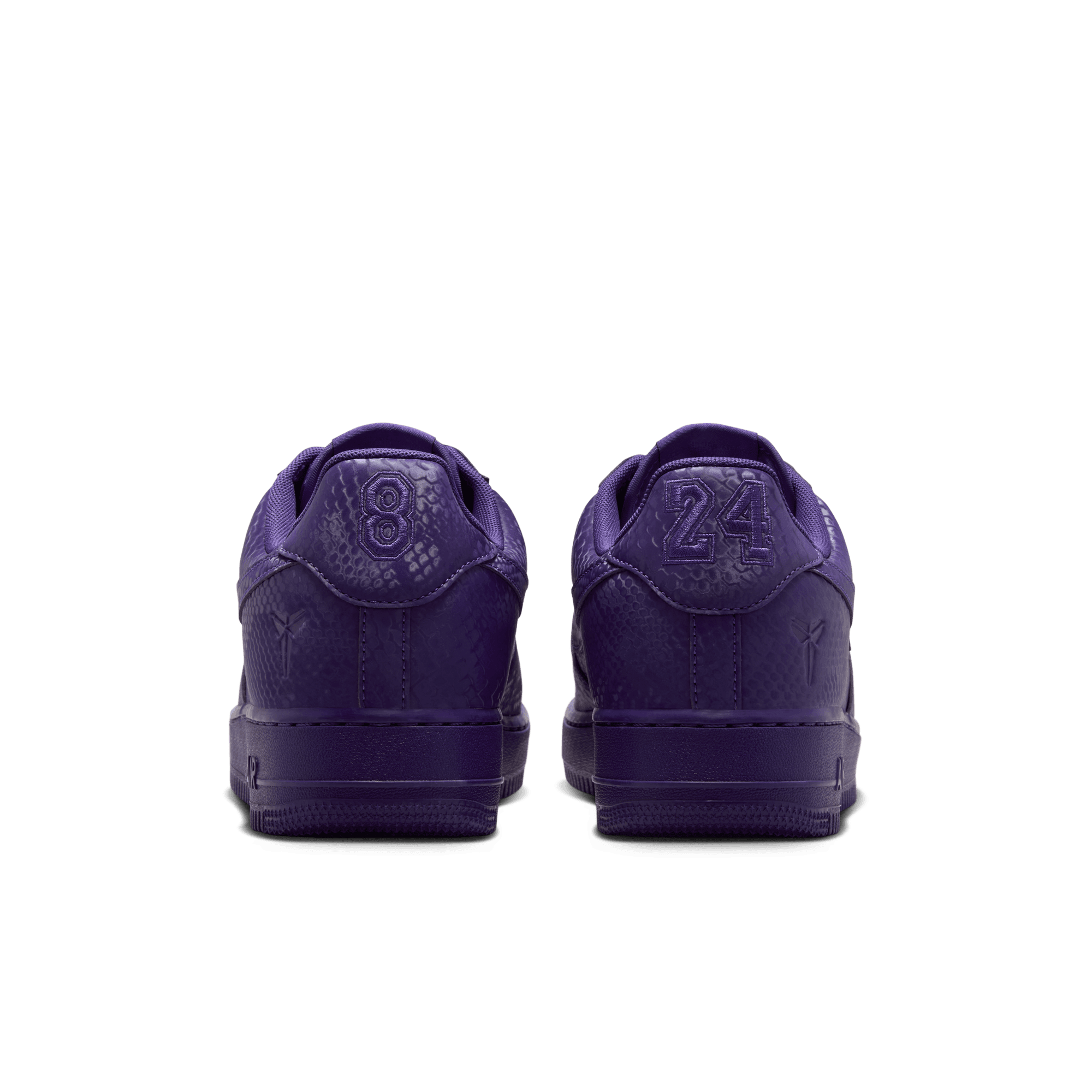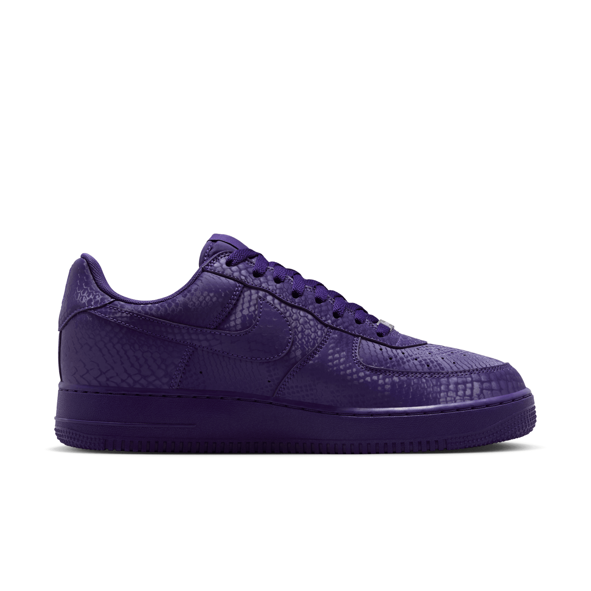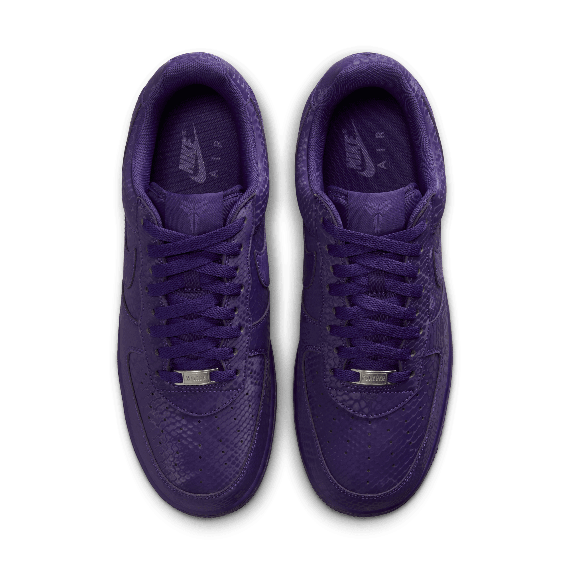 Kobe lends his spirit to another Air Force 1 as Nike follows up this summer's "Forever White" release with the Kobe Bryant x Nike Air Force 1 Low "Court Purple". Leaning into the Lakers' team colors, this AF 1 upgrades the monochromatic purple look with an allover snakeskin embossing on the premium leather upper. Sheath logos hit the tonal woven tongue tag, as well as being debossed on the on lateral heels, while heel tabs boast tonal embroidered 8 and 24. Finally, purple laces and lining, a purple sole unit and silver lace dubraes reading "Mamba" and "Forever" complete the design.