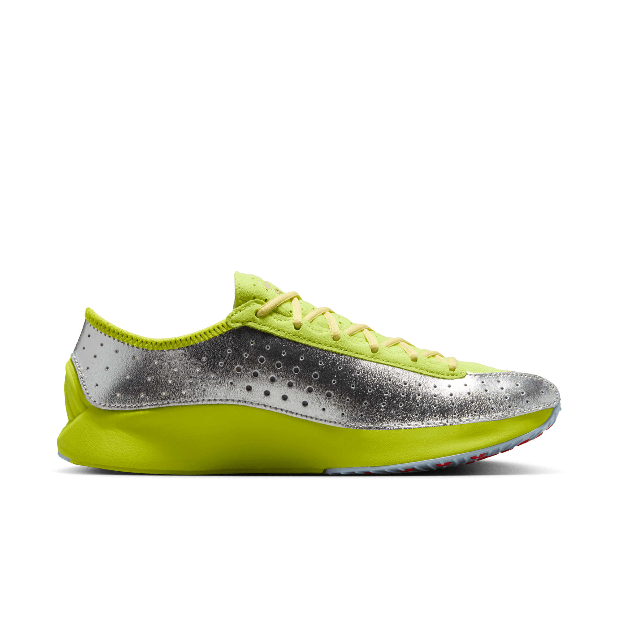 The Women's Air Superfly is back to usher in a new era of running-inspired design in 2025 with this "Cyber/Metallic Silver" edition. The early-aughts fan fav emerges from Nike's vault a new attitude, blending its nostalgic design with modern updates like Air cushioning. The low-profile shape and outsole pattern channel its track heritage, while the Metallic Silver perforated upper, lime green suede overlays, neoprene bootie, green foam midsole and grey and green rubber outsole finish off the look.