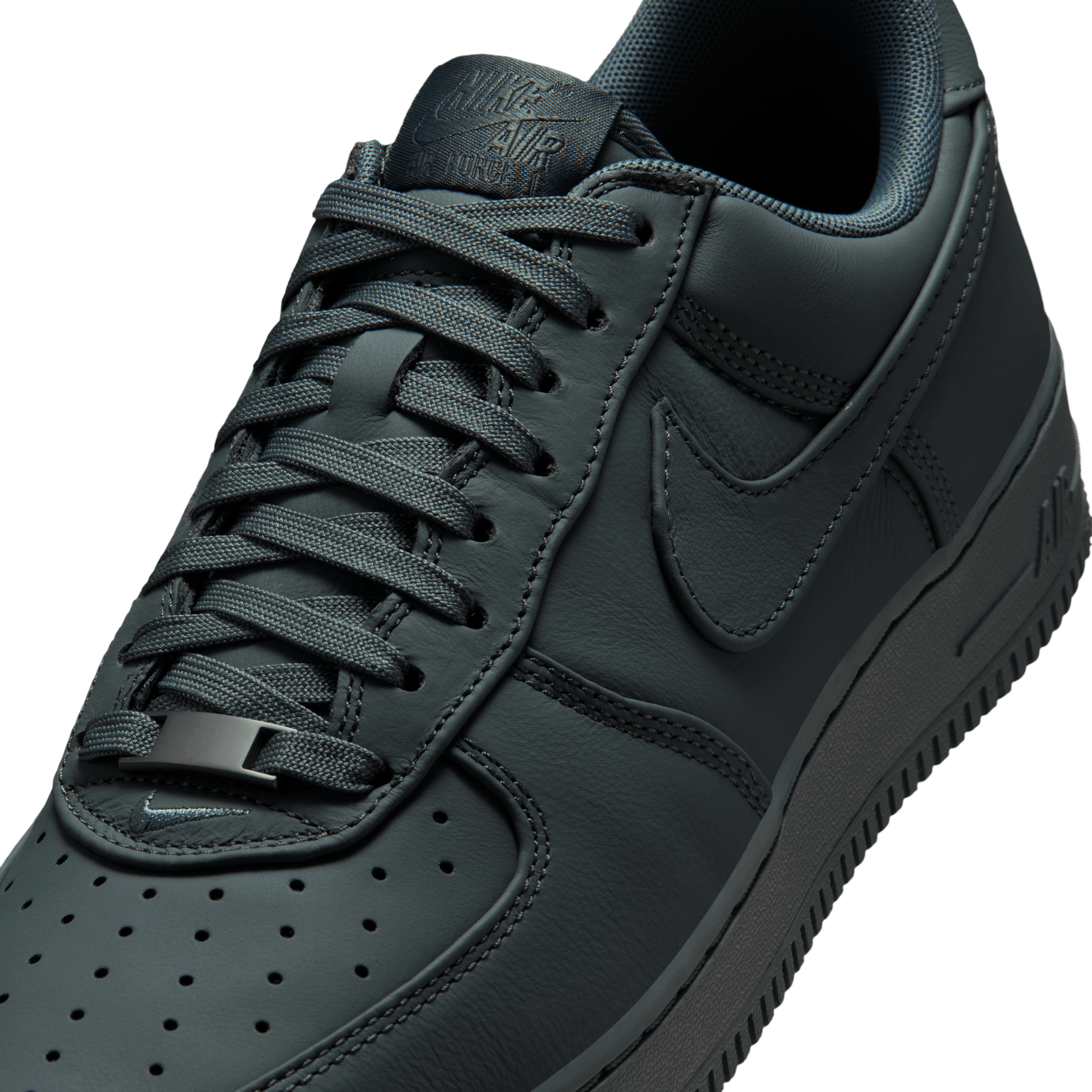 The Air Force 1 goes ultra clean and low key with a very seasonal look on the Air Force 1 Retro PRM "Bomber Grey". Maintaining the unmistakable look and shape they've had since their 1992 debut, this legendary model takes it to the next level with an upgraded premium leather upper atop the classic Air sole in a monochrome bluish-grey. In addition to the higher quality leather, branding has been removed from the heel tab and metallic dubrae for an even more low key aesthetic. Tonal laces, lining, branding, insole and sole unit finish off the look.