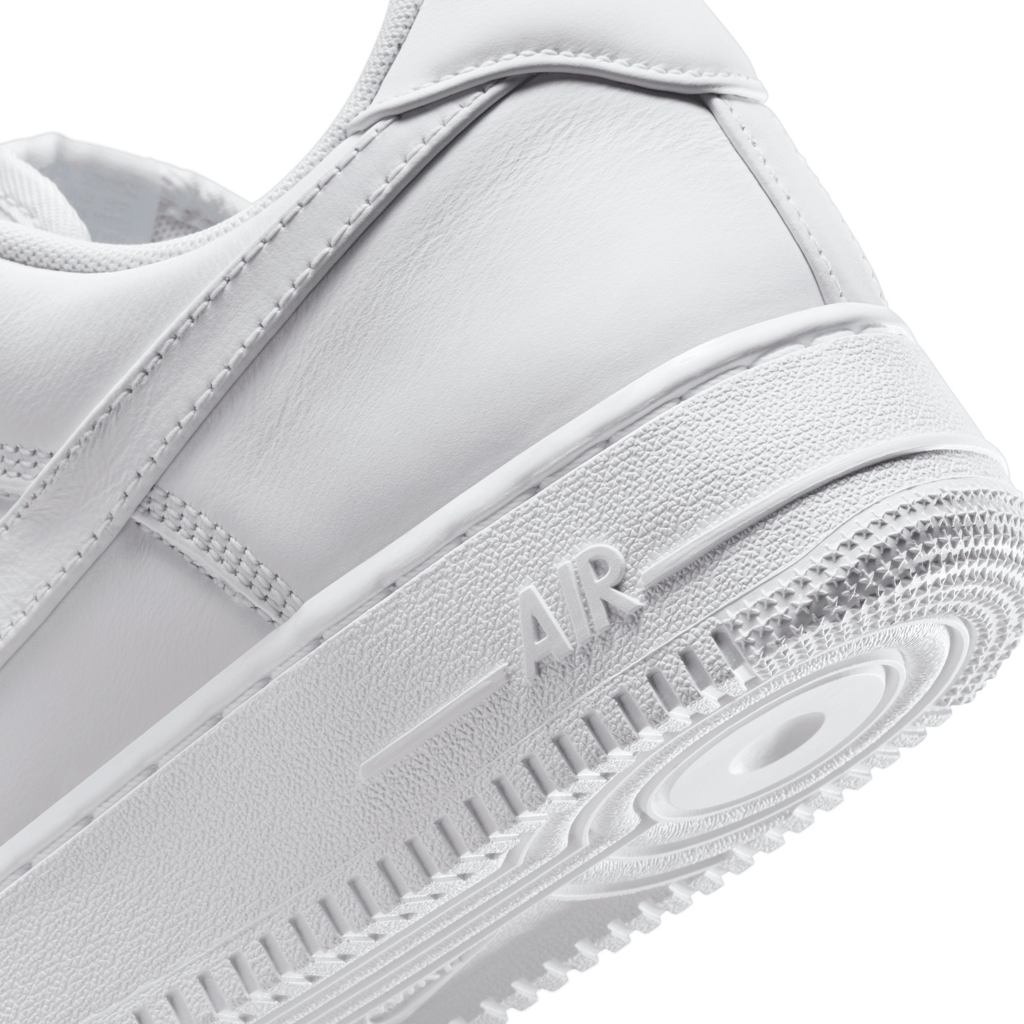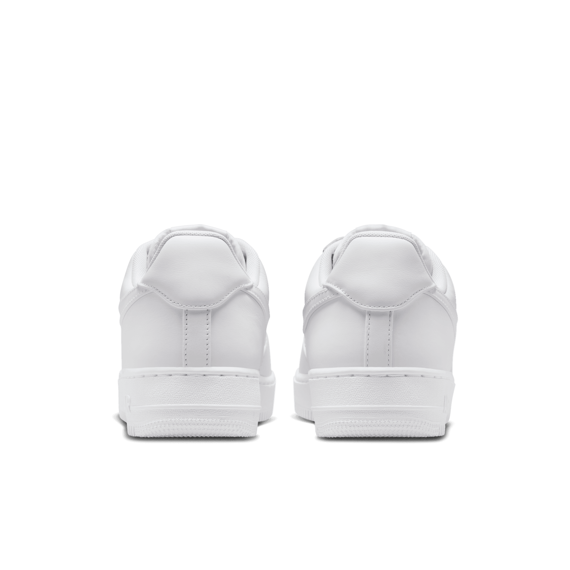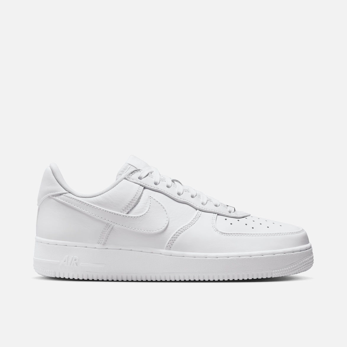 Nike's most iconic silhouette gets cleaner than ever on the Air Force 1 Low Retro PRM "Triple White". Maintaining the unmistakable look and shape they've had since their 1992 debut, this legendary model takes it to the next level with an upgraded premium leather upper atop the classic Air sole in signature all white. In addition to the higher quality leather, branding has been removed from the heel tab and metallic dubrae for an even more low key aesthetic.