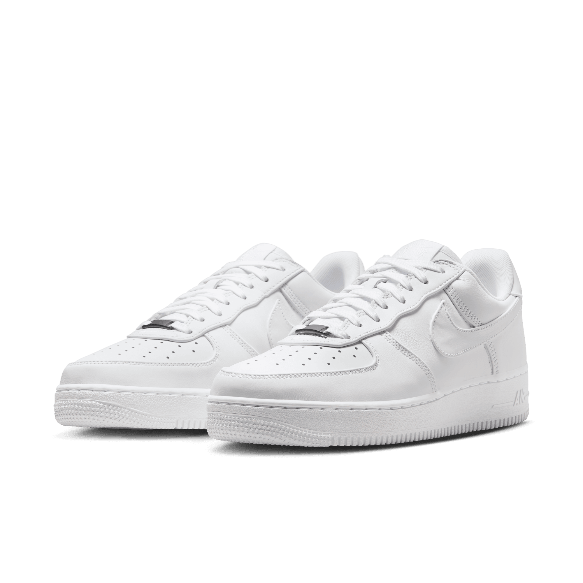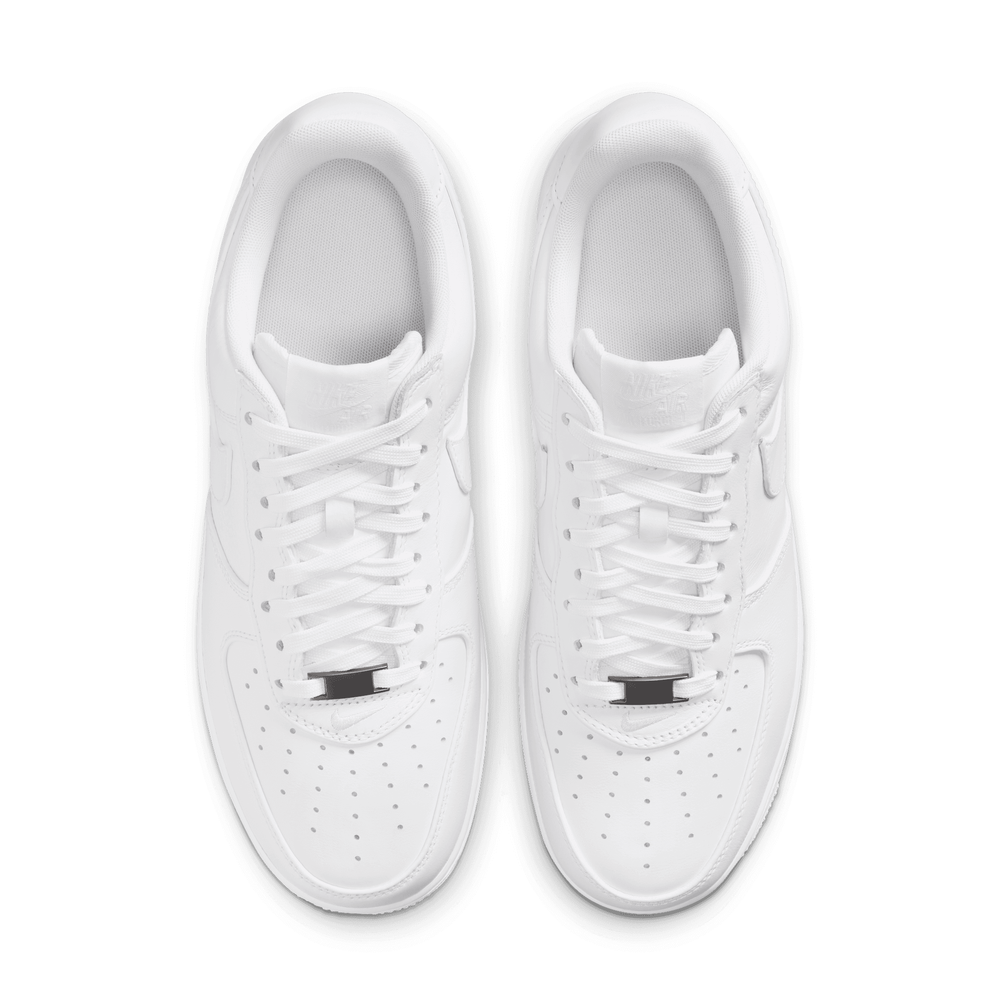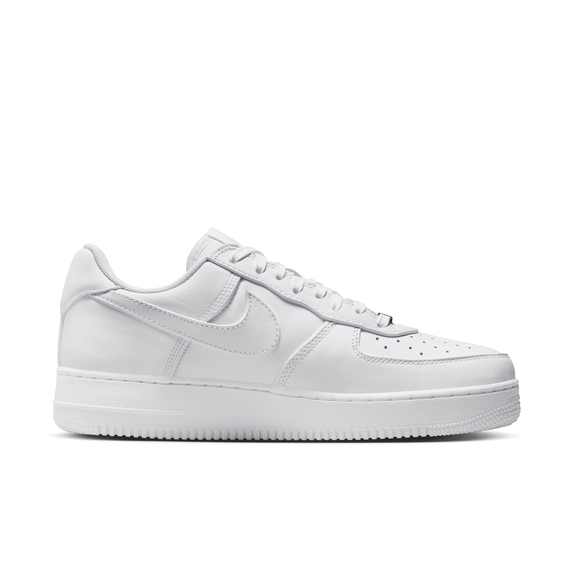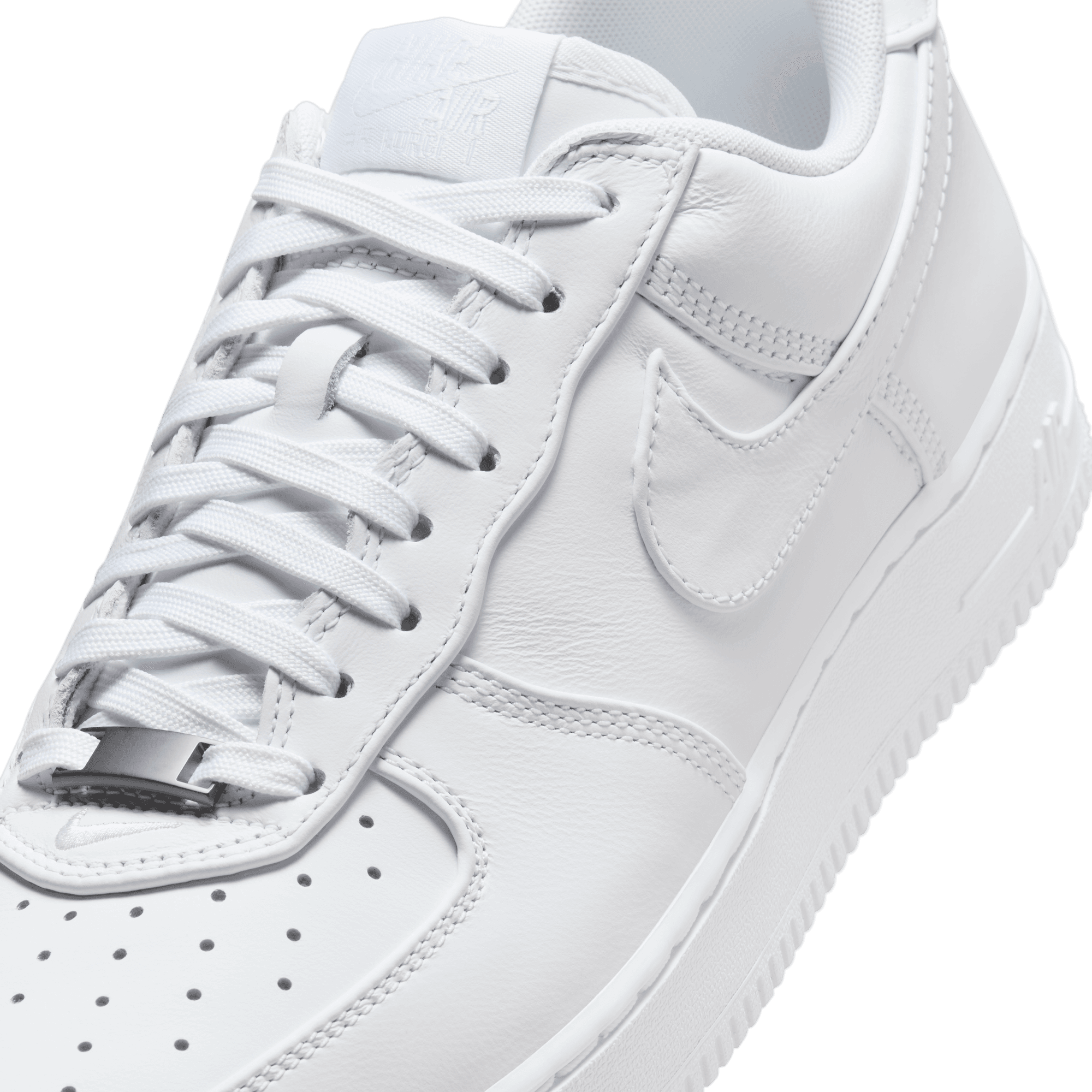 Nike's most iconic silhouette gets cleaner than ever on the Air Force 1 Low Retro PRM "Triple White". Maintaining the unmistakable look and shape they've had since their 1992 debut, this legendary model takes it to the next level with an upgraded premium leather upper atop the classic Air sole in signature all white. In addition to the higher quality leather, branding has been removed from the heel tab and metallic dubrae for an even more low key aesthetic.