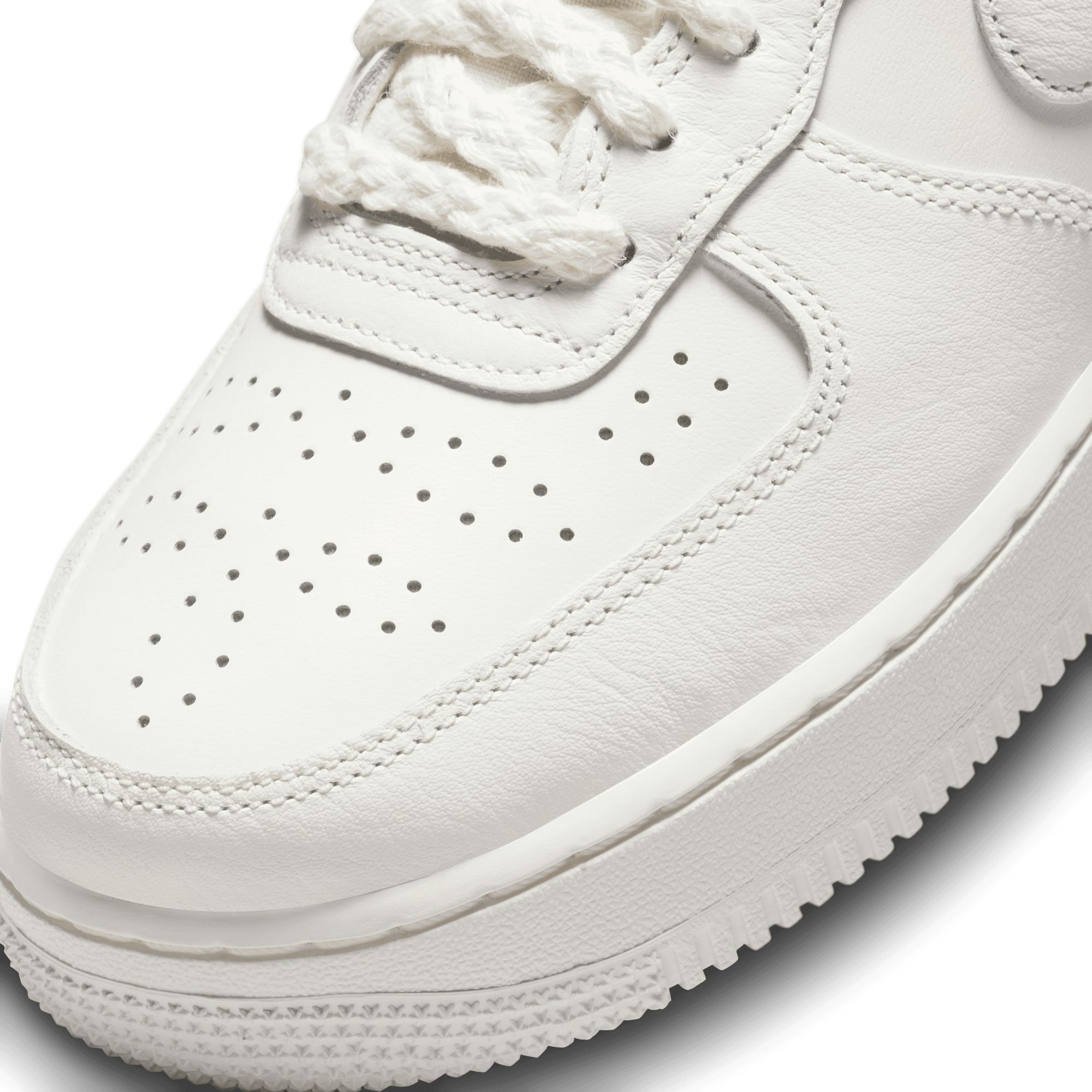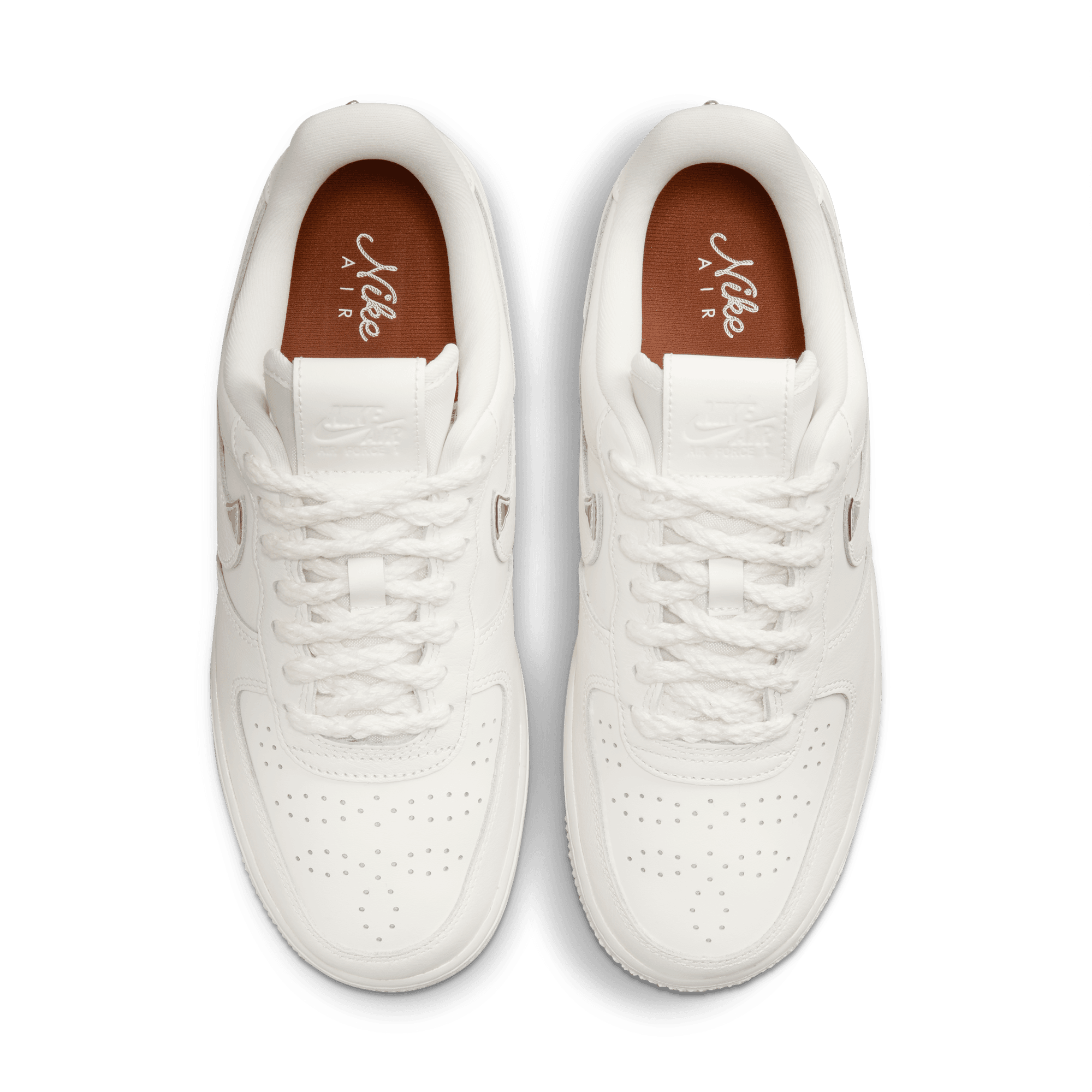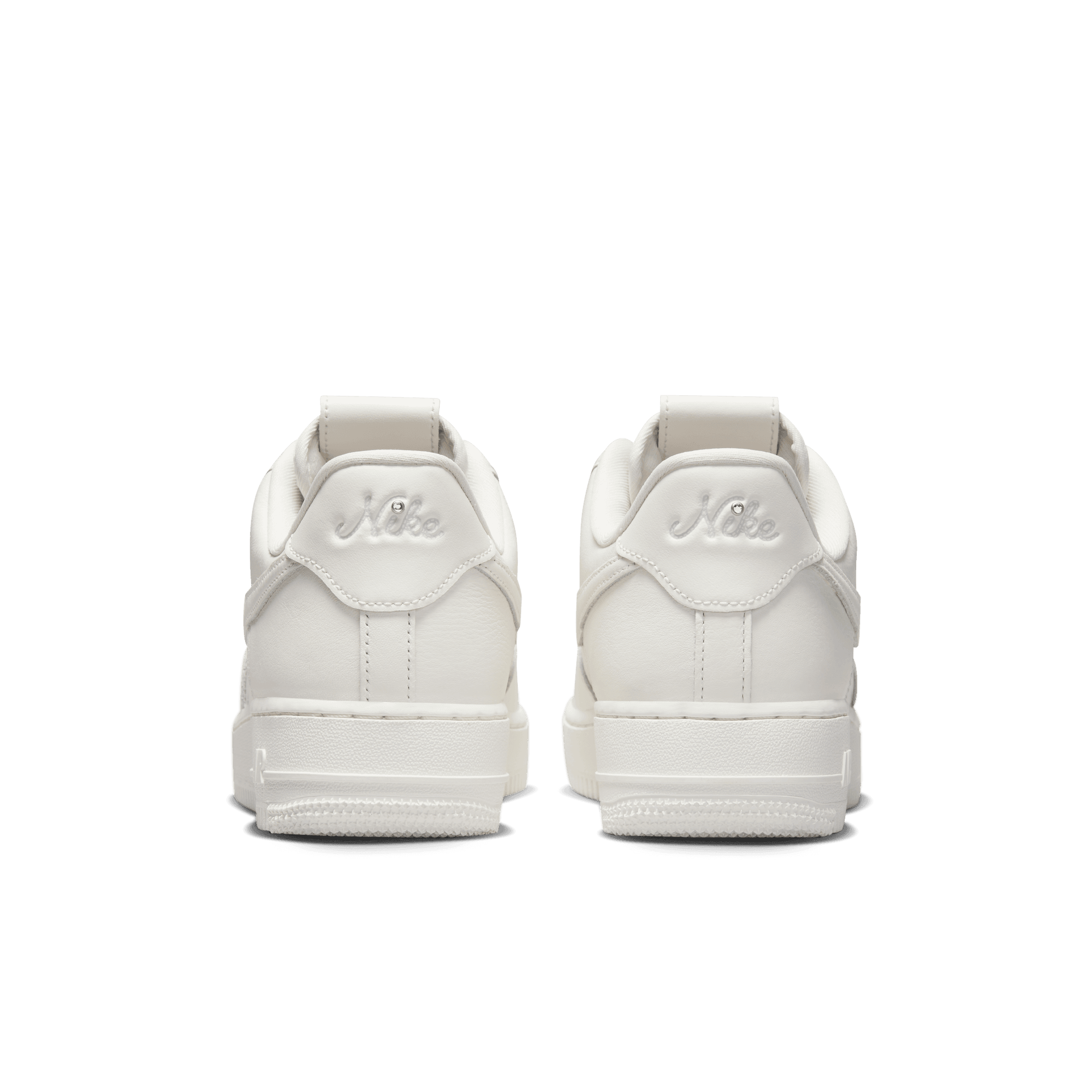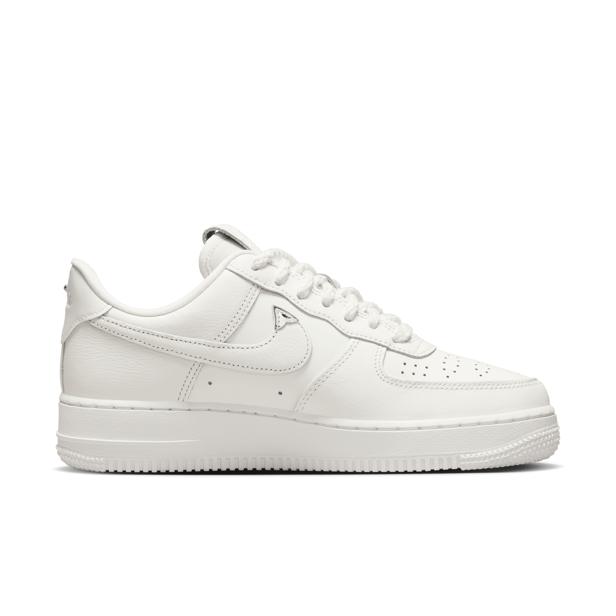 This all new women's makeup of the Air Force 1 boasts several special details inspired western Americana on the WMNS Air Force 1 '07 LV8 "Sail Chrome". The clean tonal all leather build is accented with cowboy boot-like chrome tips on the swooshes, patterned perforations on the toe boxes, woven rope laces, and a jewel embedded above the heel branding. The insoles are branded with a lasso-style script logo, while a debossed leather tongue tag and tonal sole unit complete the design.