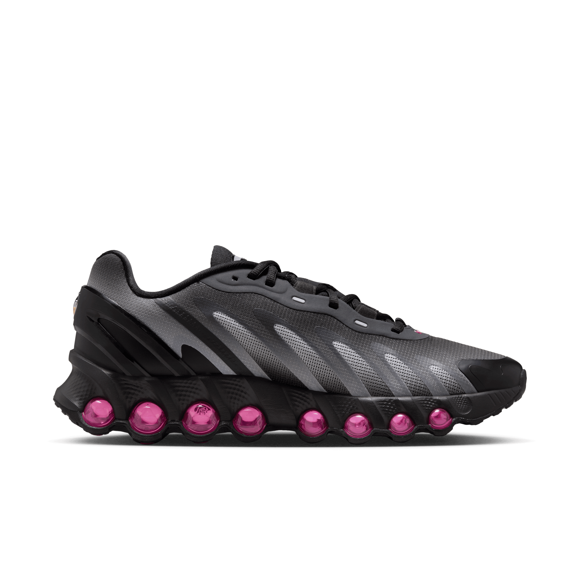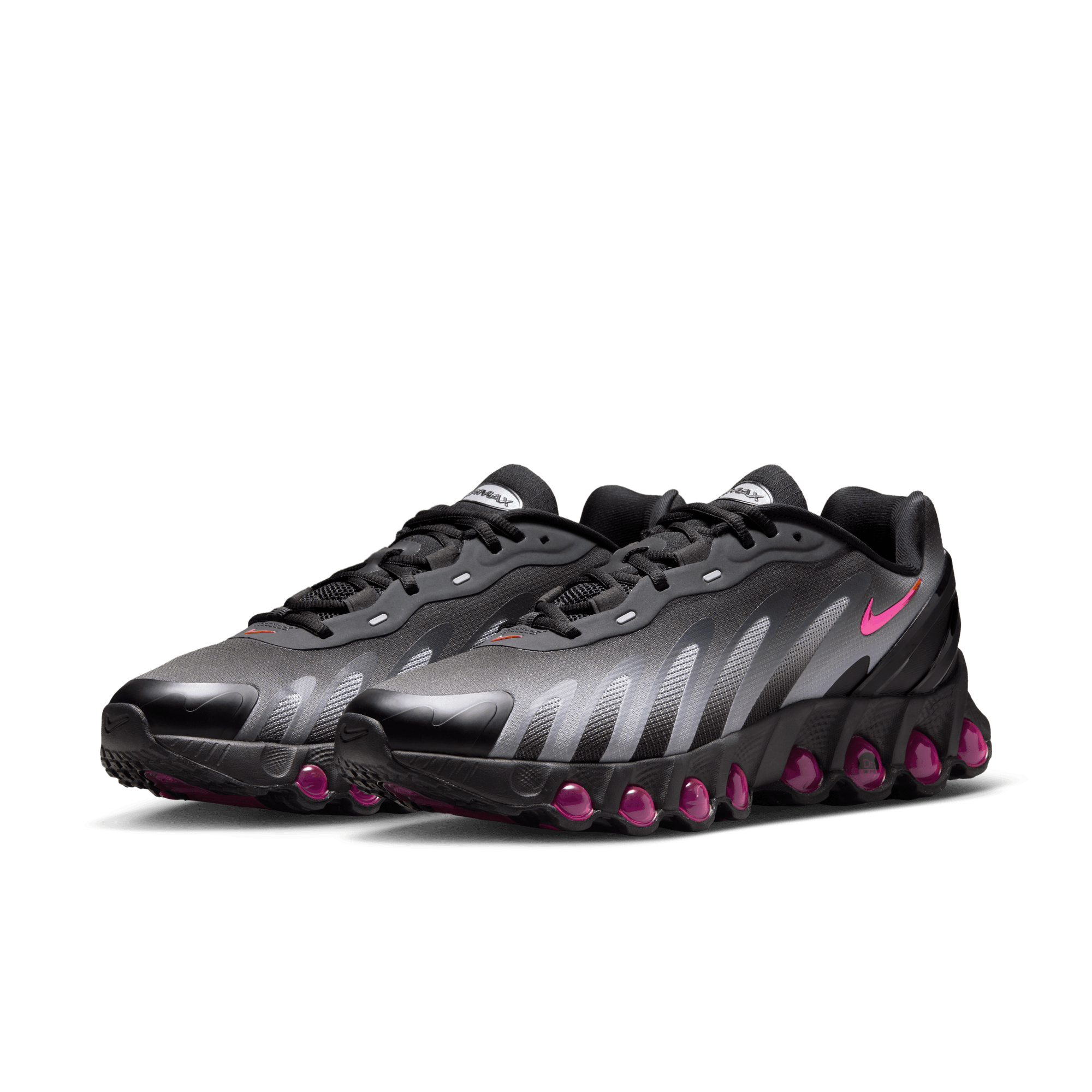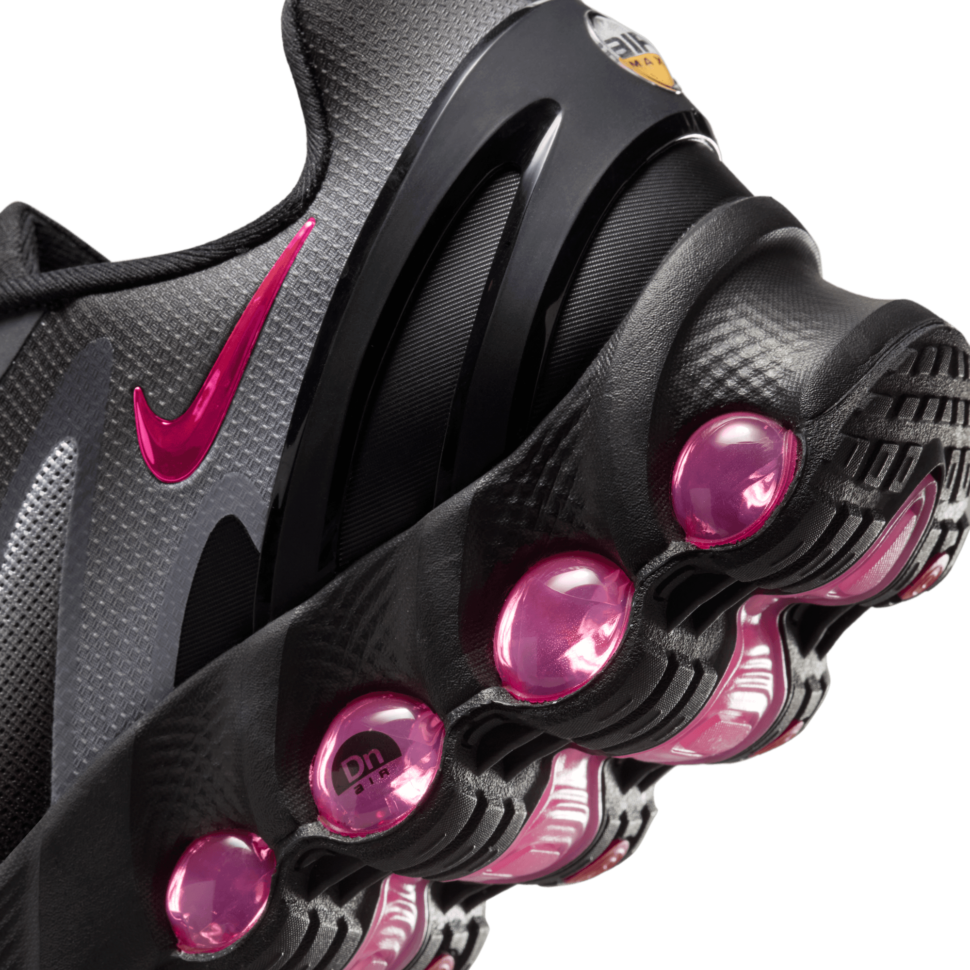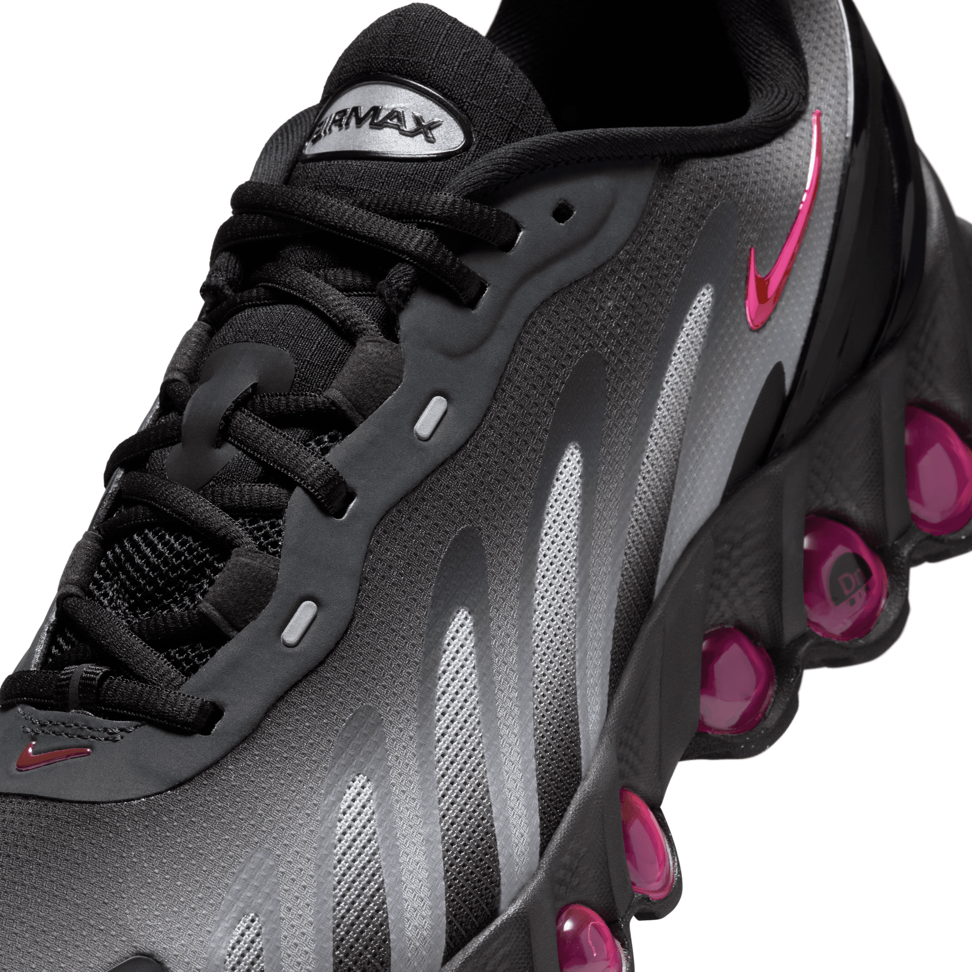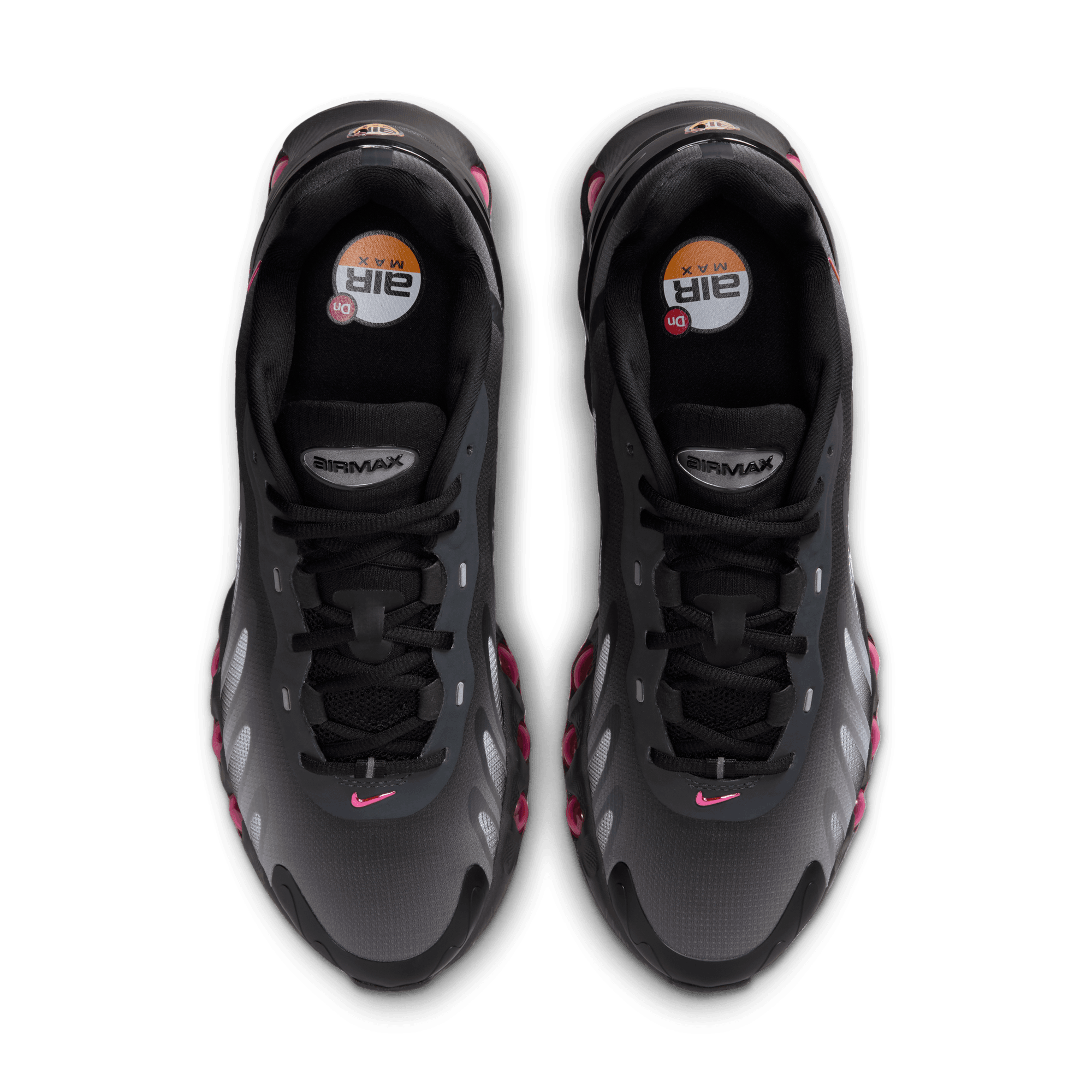 Nike's latest Air Max innovation is finally coming to stores with the release of the Air Max Dn8. The shoe builds upon the Dynamic Air technology introduced in the Dn by applying it throughout the length of the shoe with 8 dual-chambered pressurized Air tubes that shift airflow within each set of tubed in response to compression. A sleek, sculpted upper made of lightweight grey mesh presents a fluid appearance mimicking the smooth heel to toe air transition of the cushioning system. Black TPU overlays on the heel and toe provide support while the Dn cushioning is visible through bright pink circular pods in the midsole. A black foam midsole and black rubber outsole completes the build, while Air Max Dn branding on the heel, outsole and insole finish off the design.