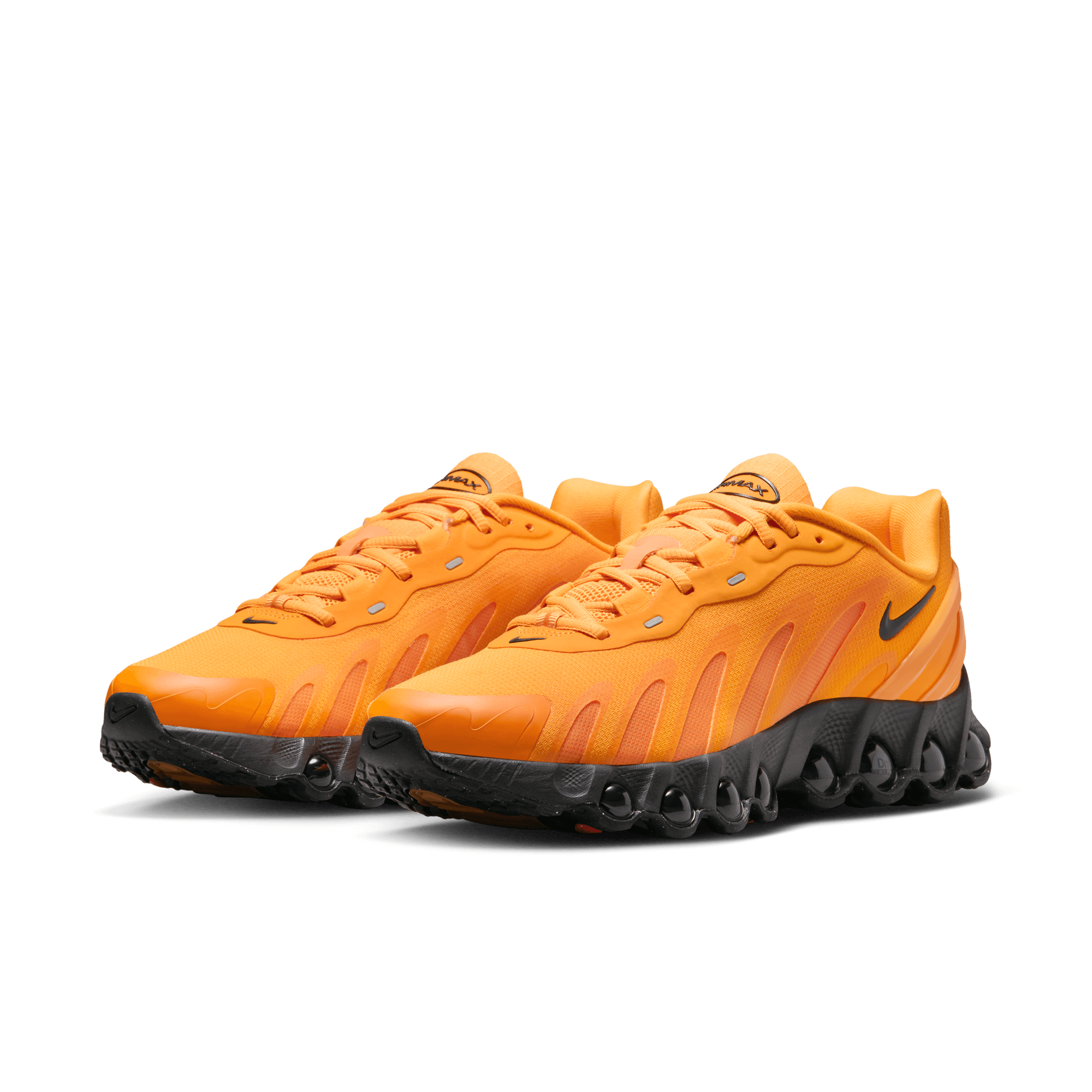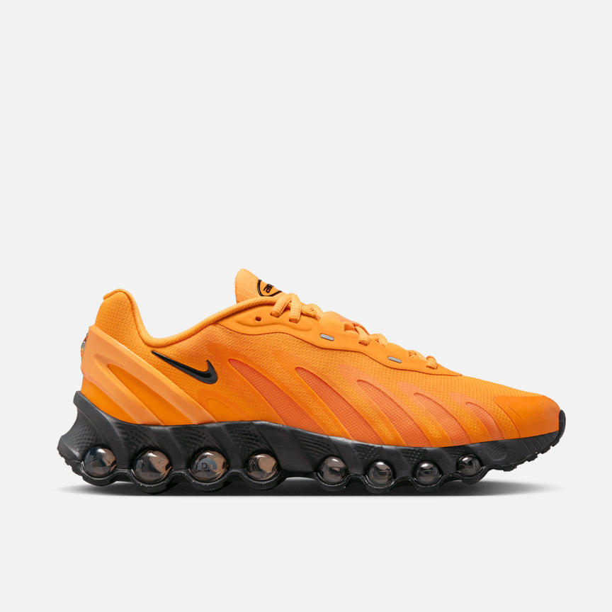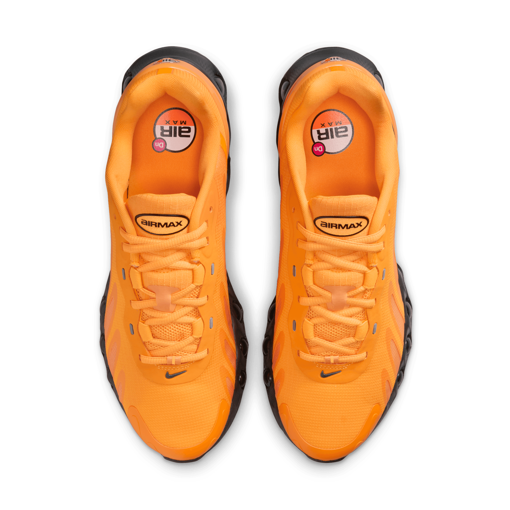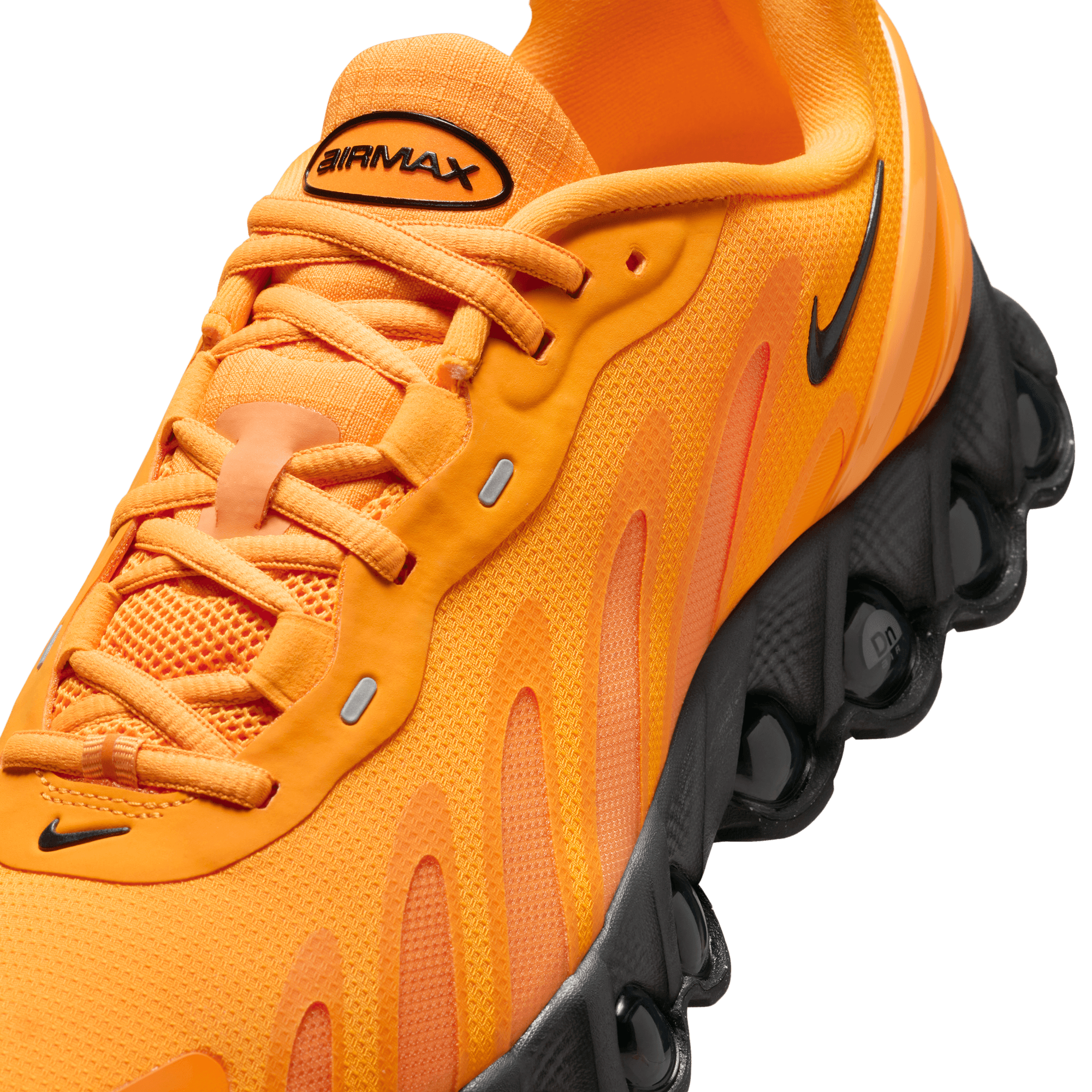 Nike's latest Air Max innovation is finally coming to stores with the release of the Air Max Dn8. The shoe builds upon the Dynamic Air technology introduced in the Dn by applying it throughout the length of the shoe with 8 dual-chambered pressurized Air tubes that shift airflow within each set of tubed in response to compression. A sleek, sculpted upper made of lightweight orange mesh presents a fluid appearance mimicking the smooth heel to toe air transition of the cushioning system. Tonal TPU overlays on the heel and toe provide support while the Dn cushioning is visible through circular pods in the midsole. A black foam midsole and black rubber outsole completes the build, while Air Max Dn branding on the heel, outsole and insole finish off the design.