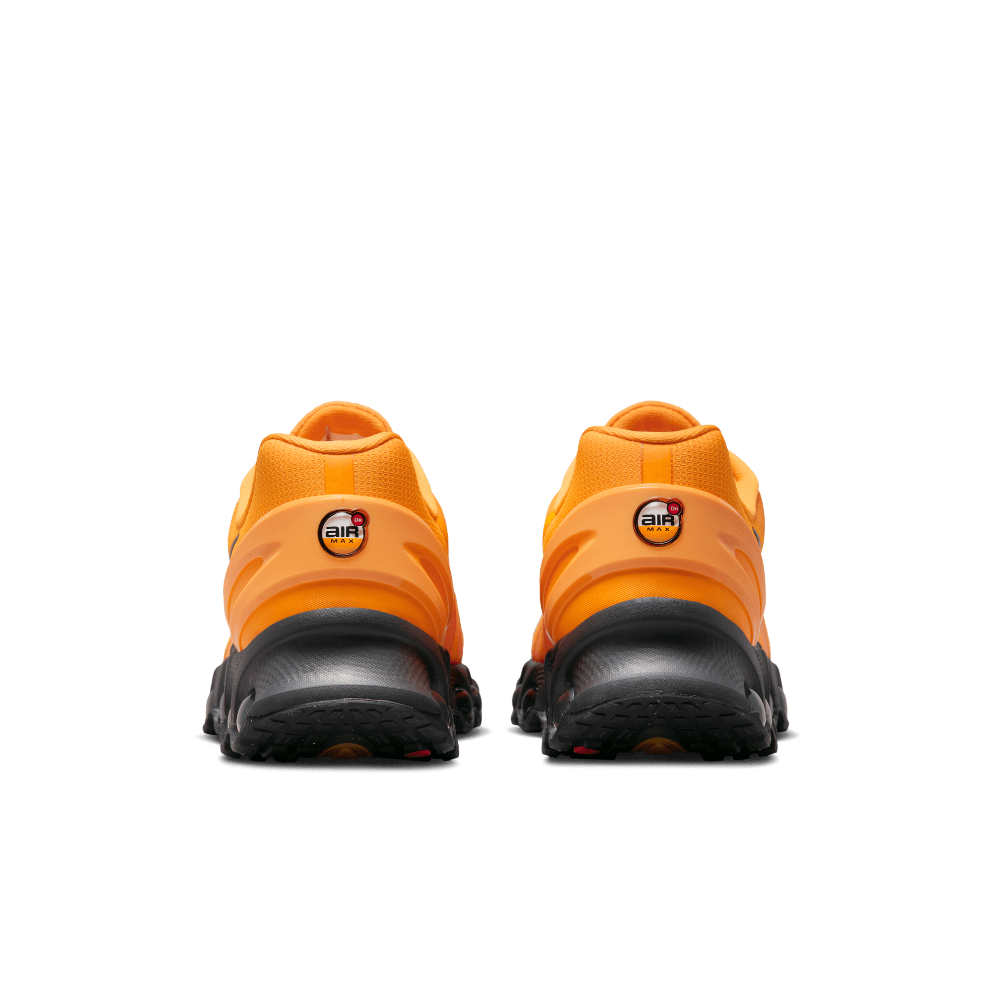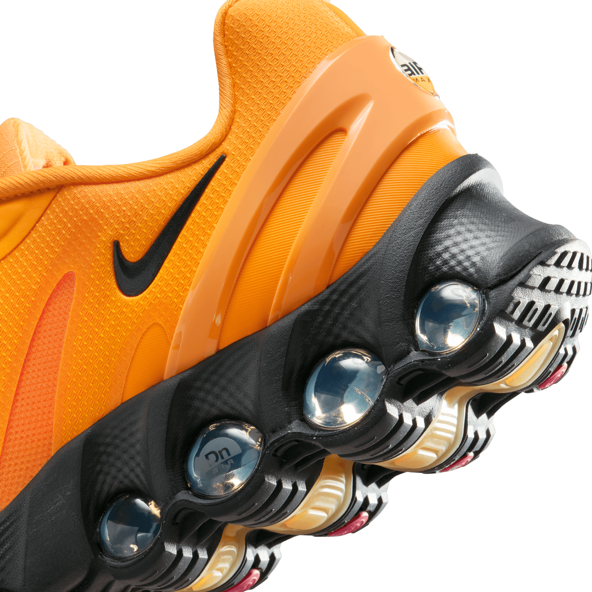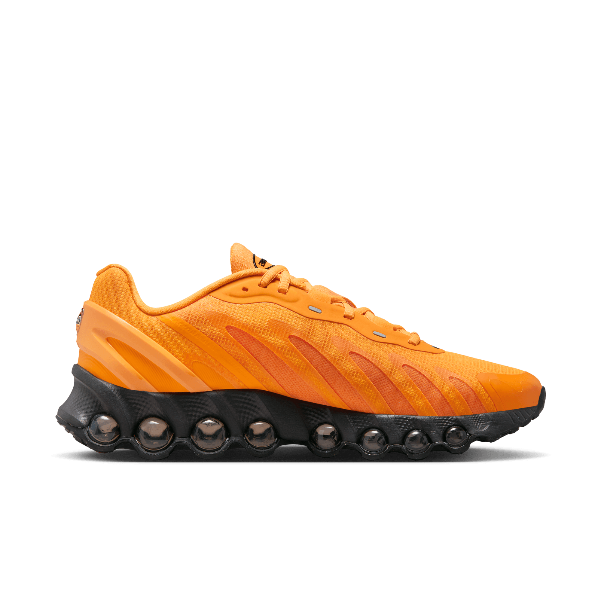 Nike's latest Air Max innovation is finally coming to stores with the release of the Air Max Dn8. The shoe builds upon the Dynamic Air technology introduced in the Dn by applying it throughout the length of the shoe with 8 dual-chambered pressurized Air tubes that shift airflow within each set of tubed in response to compression. A sleek, sculpted upper made of lightweight orange mesh presents a fluid appearance mimicking the smooth heel to toe air transition of the cushioning system. Tonal TPU overlays on the heel and toe provide support while the Dn cushioning is visible through circular pods in the midsole. A black foam midsole and black rubber outsole completes the build, while Air Max Dn branding on the heel, outsole and insole finish off the design.