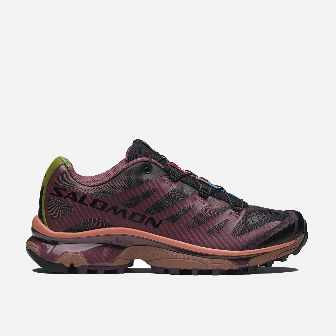 The XT-4 OG R.A.D.(Rave At Dawn) updates the brand's classic silhouette as an homage to the vibrancy and energy of rave culture. The light yet durable construction consists of a single layer of anti-debris mesh upper covered in a color design inspired by the kaleidoscopic colors and pulsing beats of a dance club. A dual density EVA-cushioned midsole is capped off by a rubber lug Mud Contragrip outsole designed to tackle loose, soft, rugged or uneven surfaces. A colorful Salomon label on the tongue, Quicklace system and additional branding on the toe, tongue and heel finish off the details.
