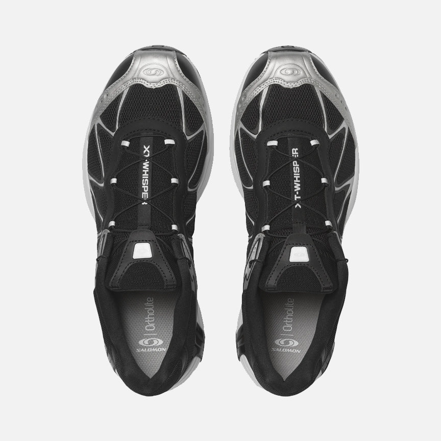 Strong in Salomon DNA, heir to an XT design lineage, XT-WHISPER is provocatively textured and rich in layered call-outs and product finish. The upper is constructed from a mix of 3D open mesh knit and a tighter anti-debris mesh weave and synthetic overlays. It's supported by an ACS chassis that enhances stability and support, and an EVA-cushioned midsole capped off by a rubber lug Contragrip outsole designed to tackle rugged terrain. A lace pocket, Quicklace system, and additional branding on the toe, tongue and heel finish off the details.