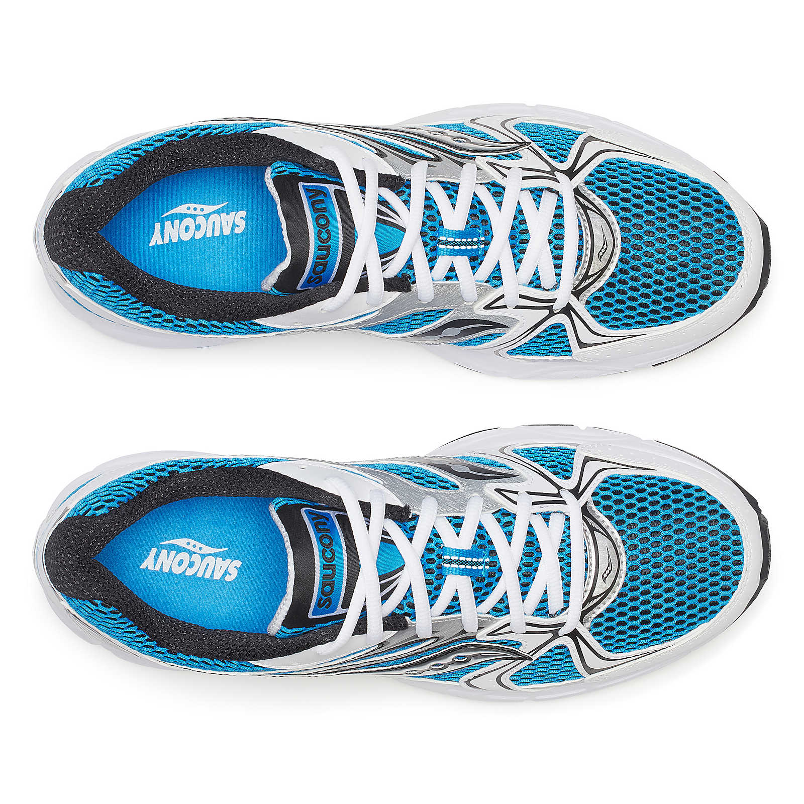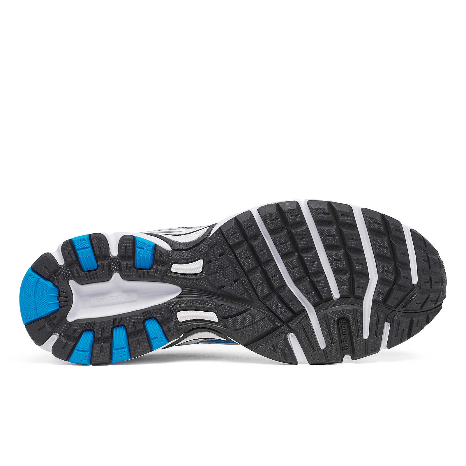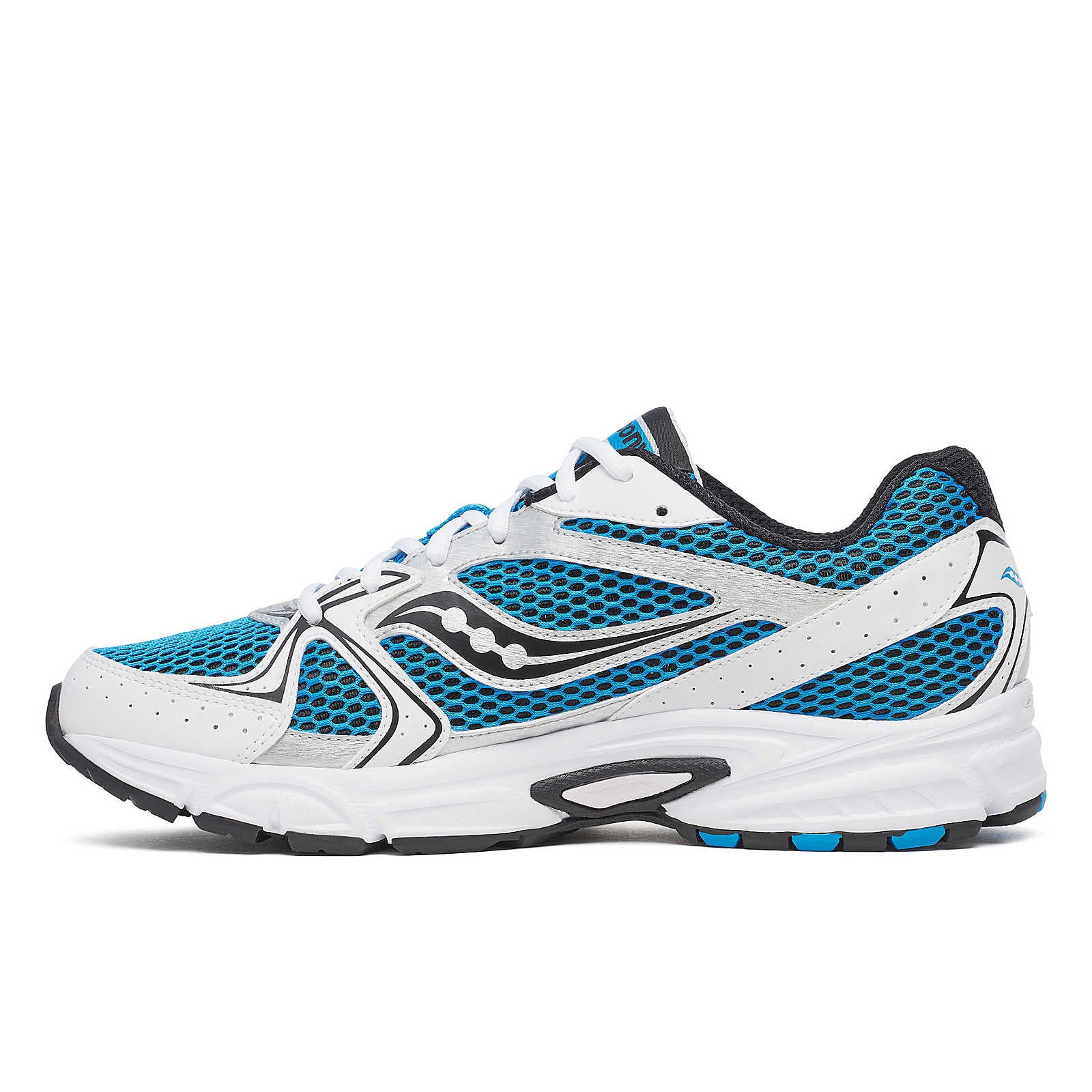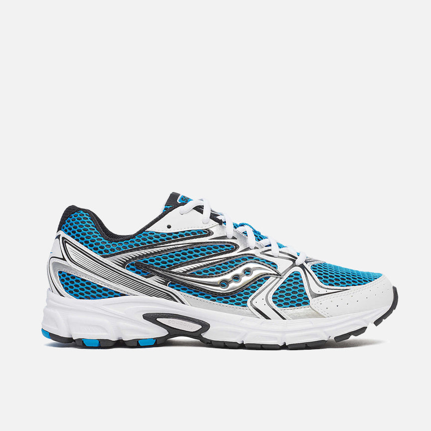 The Saucony Ride Millennium adopts the fervor and iconic details of some of the brand's classic Y2K-era models while incorporating today's most innovative tech. The sleek aesthetic features silver and white synthetic leather over blue mesh on top of a white Grid cushioned midsole. Black branding, white laces and black lining, and metallic details finish off the look.