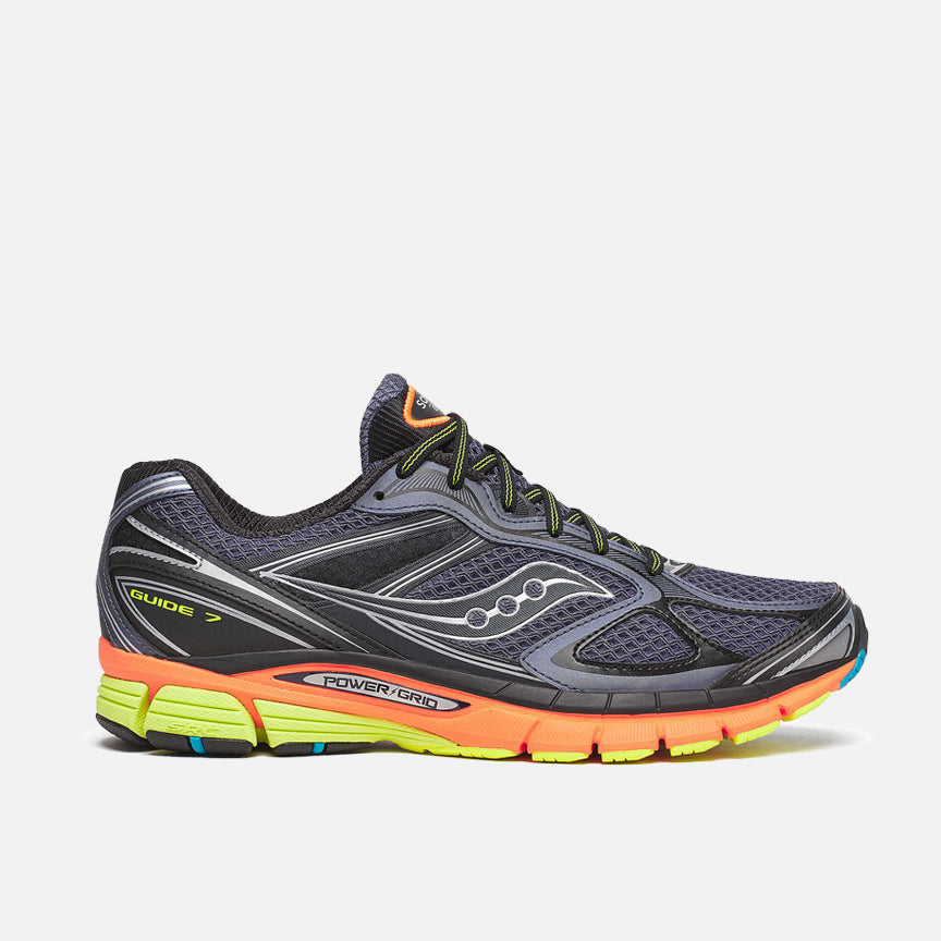 Saucony unleashes another great 2000s tech runner from their archives with the ProGrid Guide 7. In the early 2000s Saucony set a new standard for the use of color and customization in the world of run shoes. Today, this 2013 retro re-release maintains its running DNA, built on an upgraded PowerGrid midsole for superior cushioning and stability, so it doesn't just look great, it also feels great on foot. Reflective details and synthetic overlays are layered onto its breathable purple mesh upper, along with bold accents to make these really stand out.