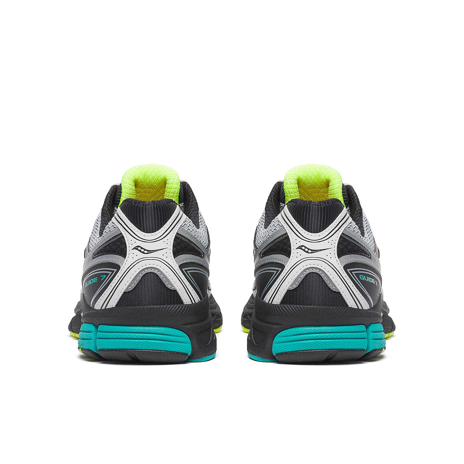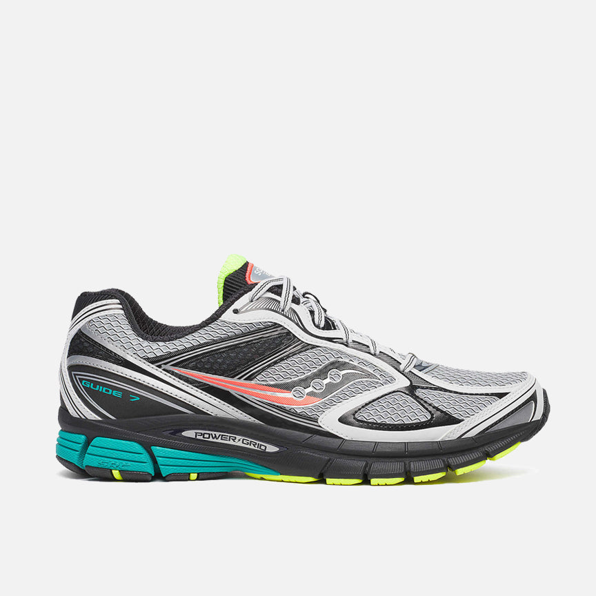 Saucony unleashes another great 2000s tech runner from their archives with the ProGrid Guide 7. In the early 2000s Saucony set a new standard for the use of color and customization in the world of run shoes. Today, this 2013 retro re-release maintains its running DNA, built on an upgraded PowerGrid midsole for superior cushioning and stability, so it doesn't just look great, it also feels great on foot. Reflective details and synthetic overlays are layered onto its breathable silver mesh upper, along with bold accents to make these really stand out.