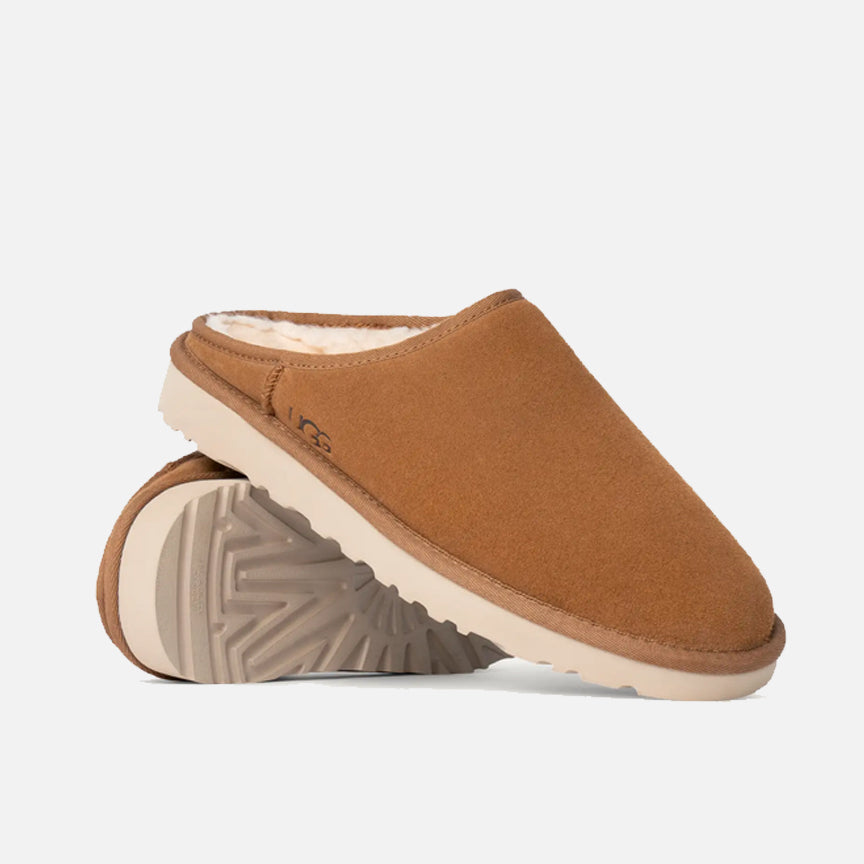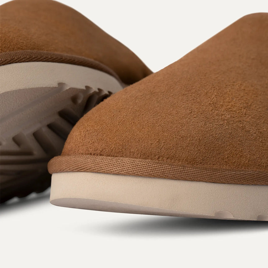 An effortless take on the icon with the same rich suede and soft sheepskin, the new Classic Slip-On offers easy entry and a laidback look. Lined in signature UGGplush blend of upcycled wool and plant-based TENCEL Lyocell, it's finished with an ultra-lightweight outsole for grip and cushioning. The outsole of this product is either a sugarcane EVA outsole, which is a responsible compound using sugarcane foam that allows us to reduce dependency on fossil fuels by replacing petroleum-based ethylene, or a Treadlite by UGG outosle.