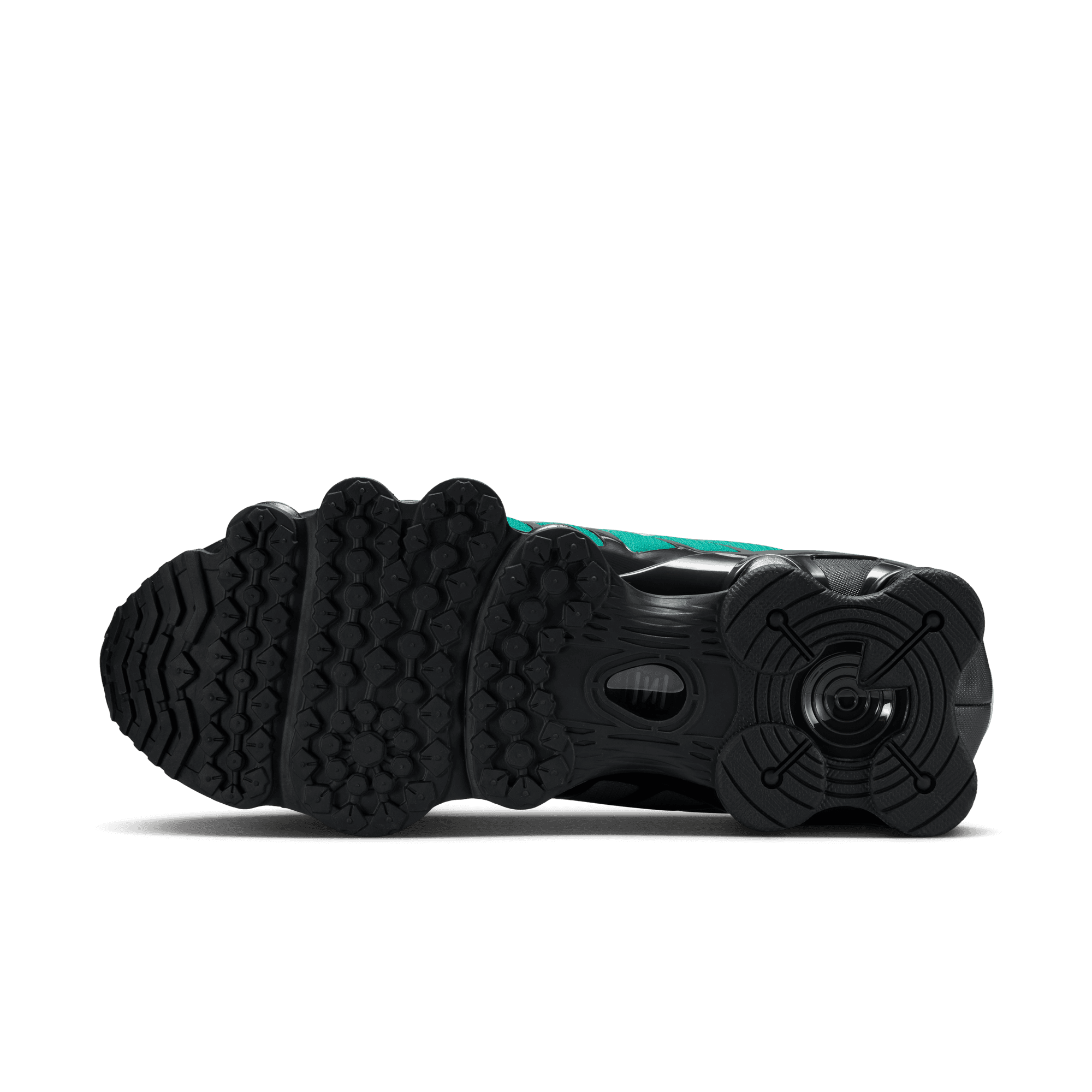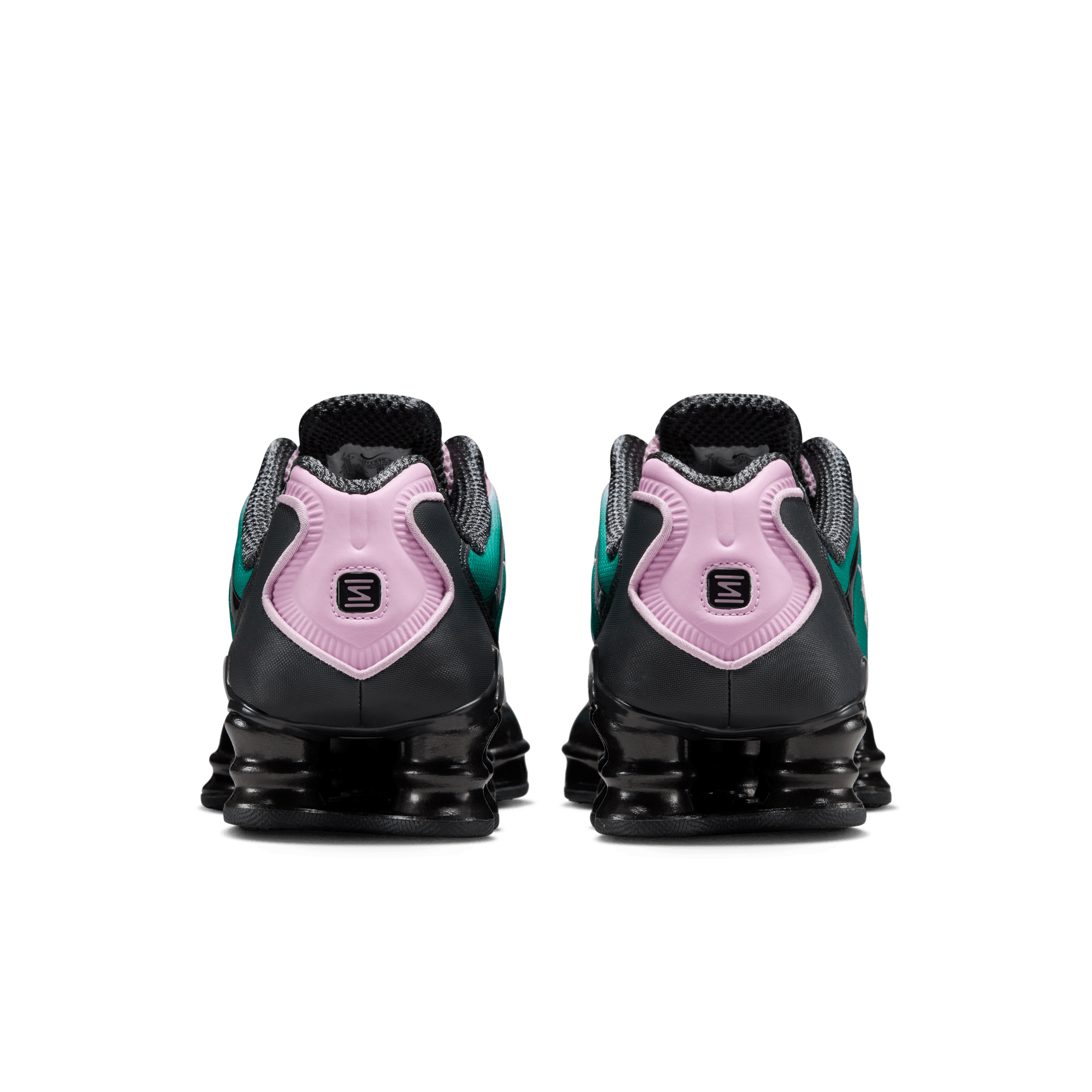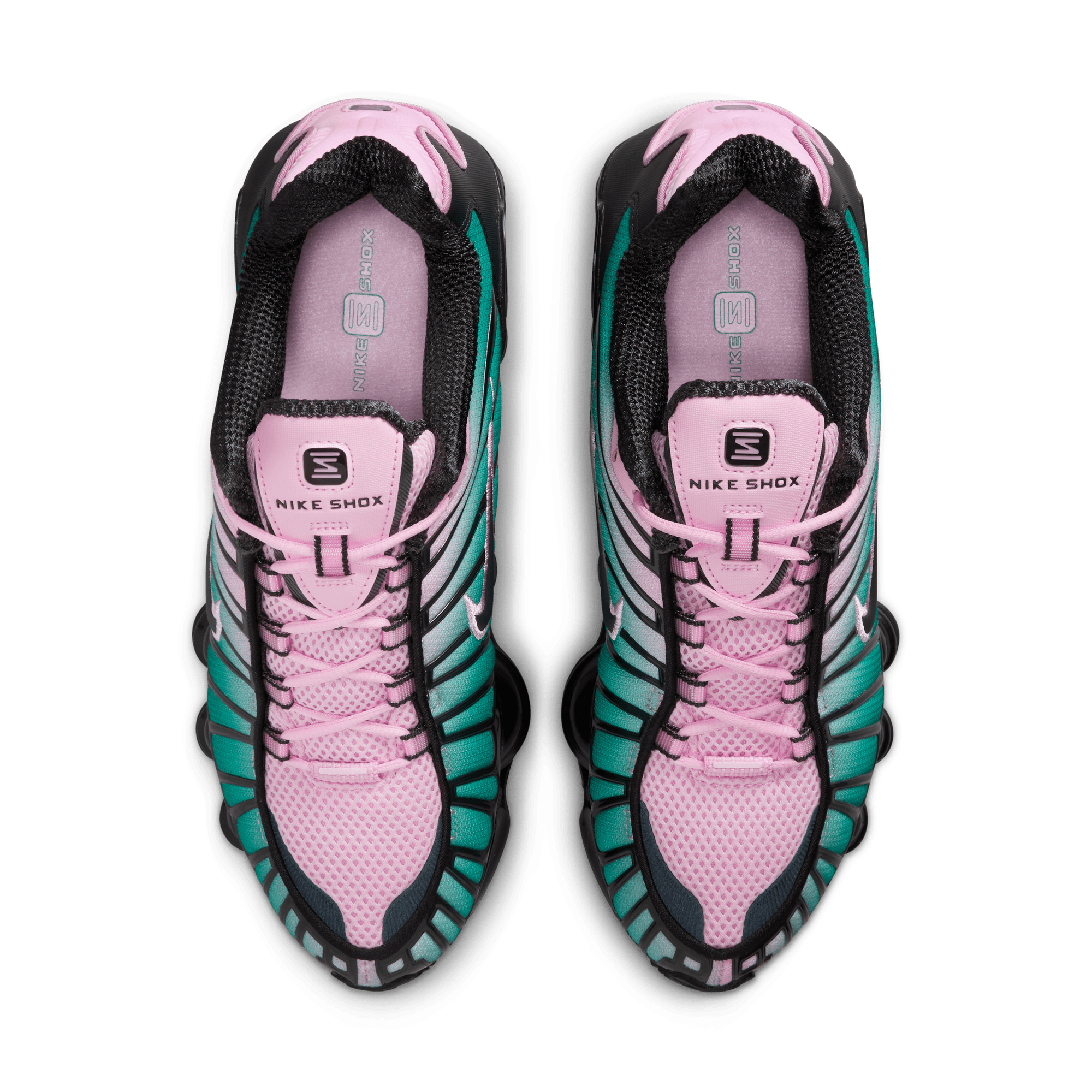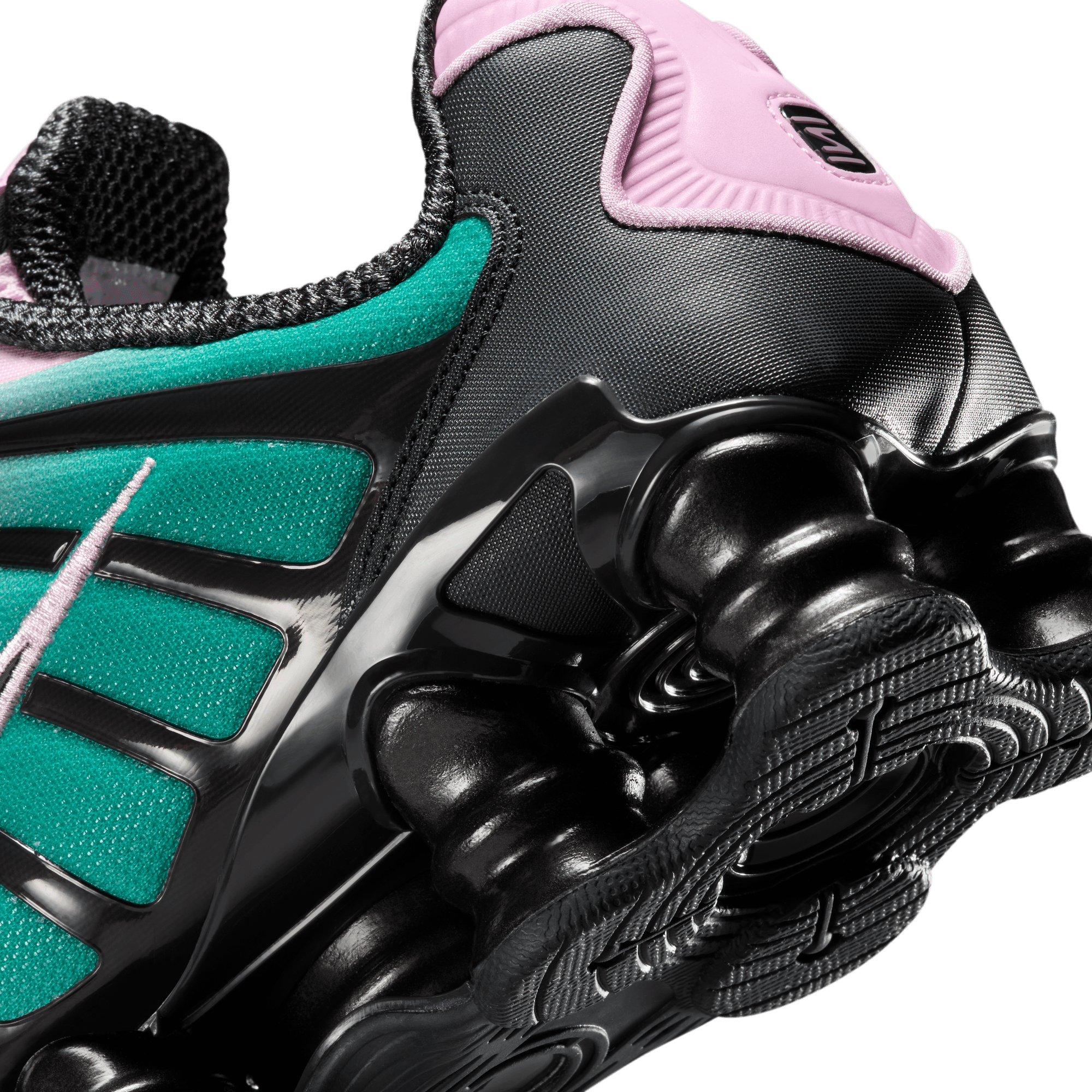 The shoe that took "Shox" cushioning to the extreme is back in a South Beach-esque gradient colorway on the Shox TL Fade "Watermelon". Best known for extending the spring-like cushioning columns the full length of the sole, this version of the Shox TL features a pink-to-teal mesh and synthetic upper surrounded by black plastic overlays, along with pink laces, black lining and the aforementioned black shox unit. Pink accents surrounding the black swoosh and the leather heel cap provide a bright infusion of color, while reflective accents throughout and the massive 12-column sole unit finishes off the build.