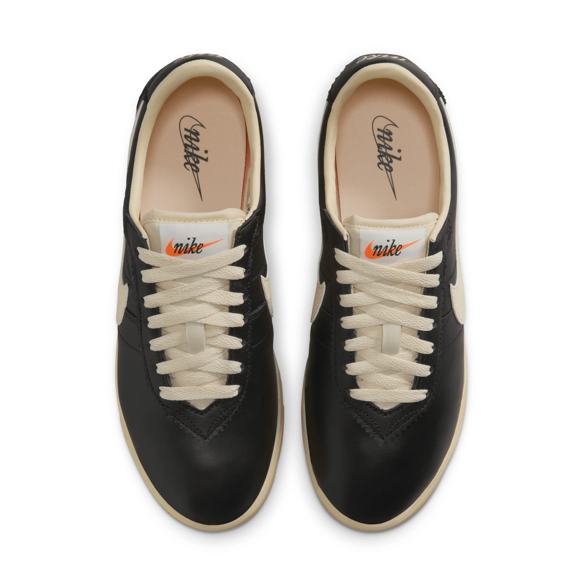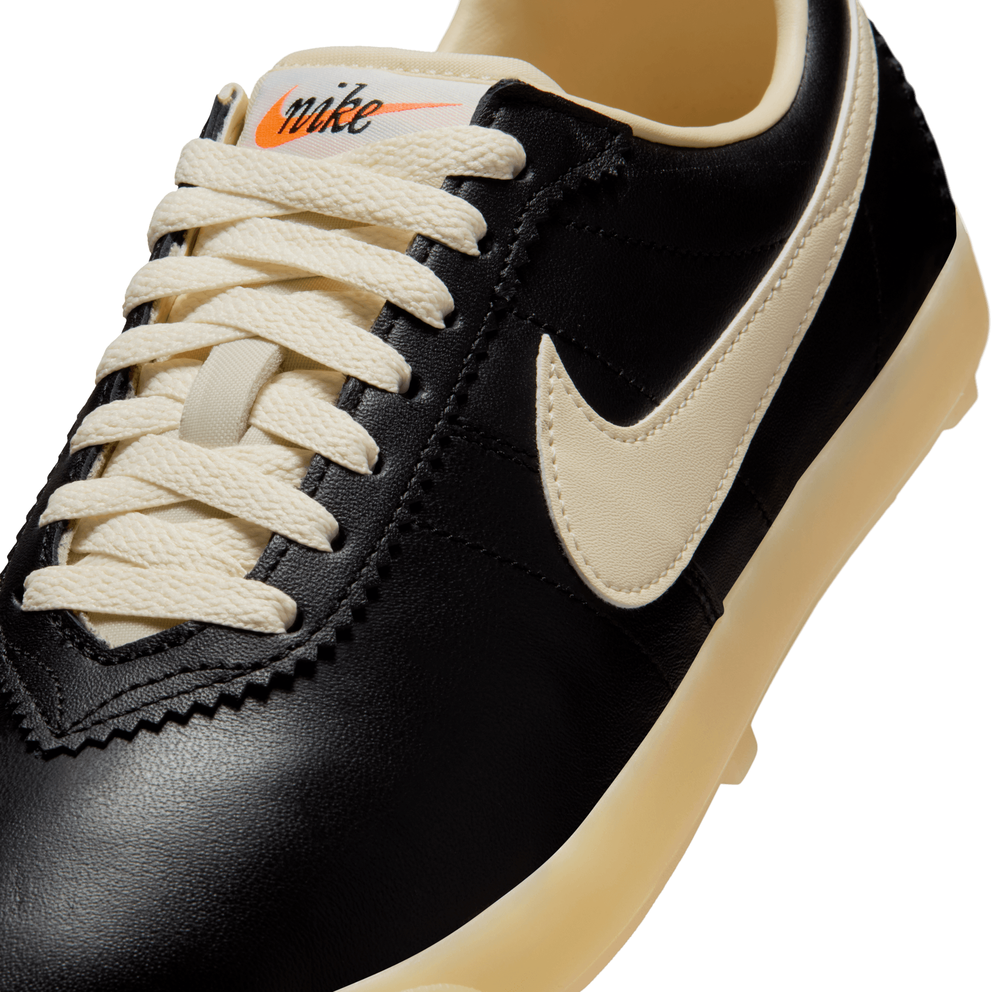 Nike's earliest football shoe-turned-modern-lifestyle staple is back in a premium leather build on the WMNS Astrograbber LTHR "Black/Muslin/Sail". Debuting on the heels of Nike's Waffle Trainer, the state-of-the-art Astrograbber was designed to better grip the old school (astro) turf on American football fields. Now, the iconic football shoe from '74 returns in an updated construction of a black premium leather upper accented by a sail leather swoosh, laces and lining. A white tongue tag and embroidered white vintage Nike logo on the heel, and light gum rubber sole dotted with square lugs completes the design.