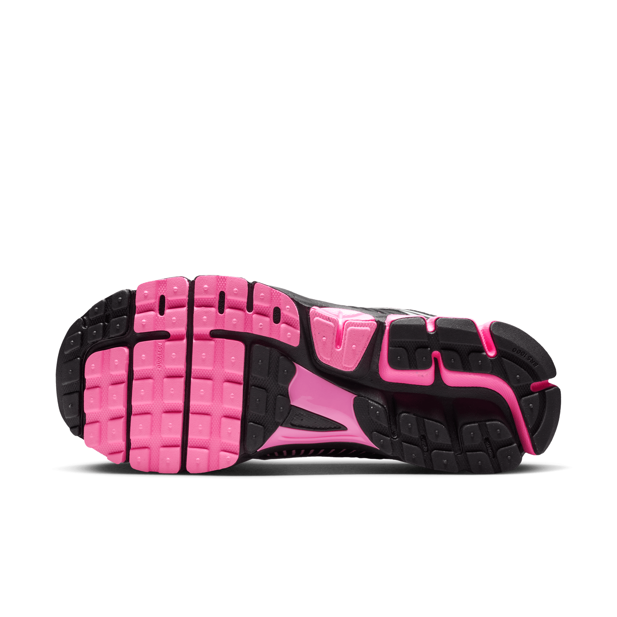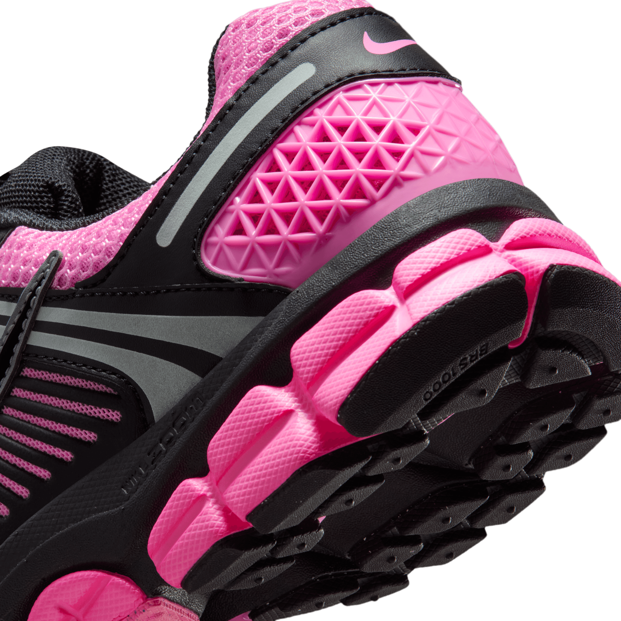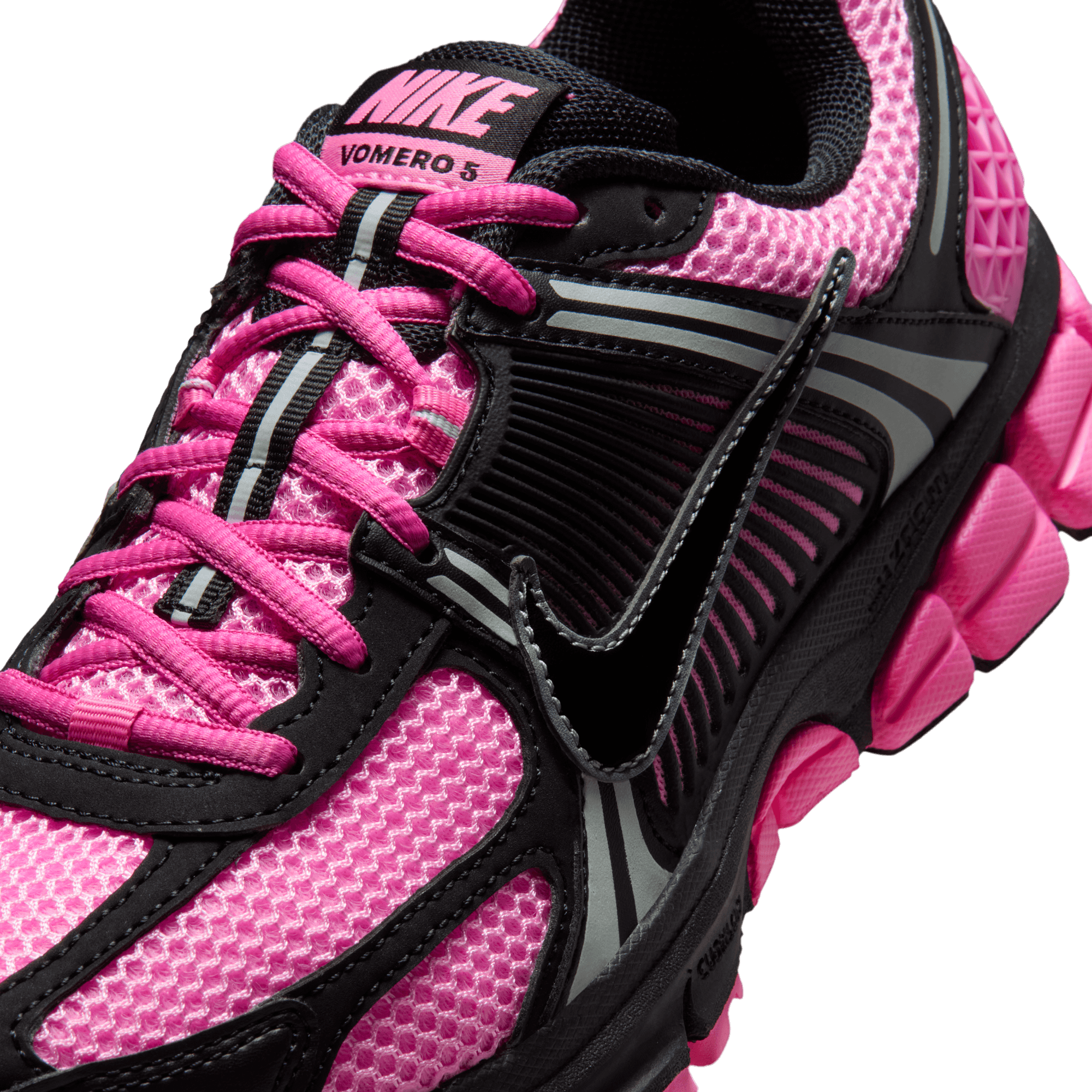 The classic 2010 runner is back in a bold fall colorway that truly marries lifestyle and tech with the WMNS Zoom Vomero 5 "Pink Spell/Black. Originally released in 2010, the Zoom Vomero 5 is renowned for its nearly unmatched comfort, with two separate Zoom Air units in the heel and forefoot providing pillowy soft cushioning. This vivid colorway is built from a bright pink mesh upper with black TecTuff leather overlays and swoosh, pink laces and lining, and silver accents throughout. The shoe features black TPU side panels, 3M reflective details, a Bob Bowerman graphic on the insole, and a tonal 3D printed lattice-like air ventilation panel on the heel. A pink Zoom Air midsole and a black and pink waffle outsole completes the design.
