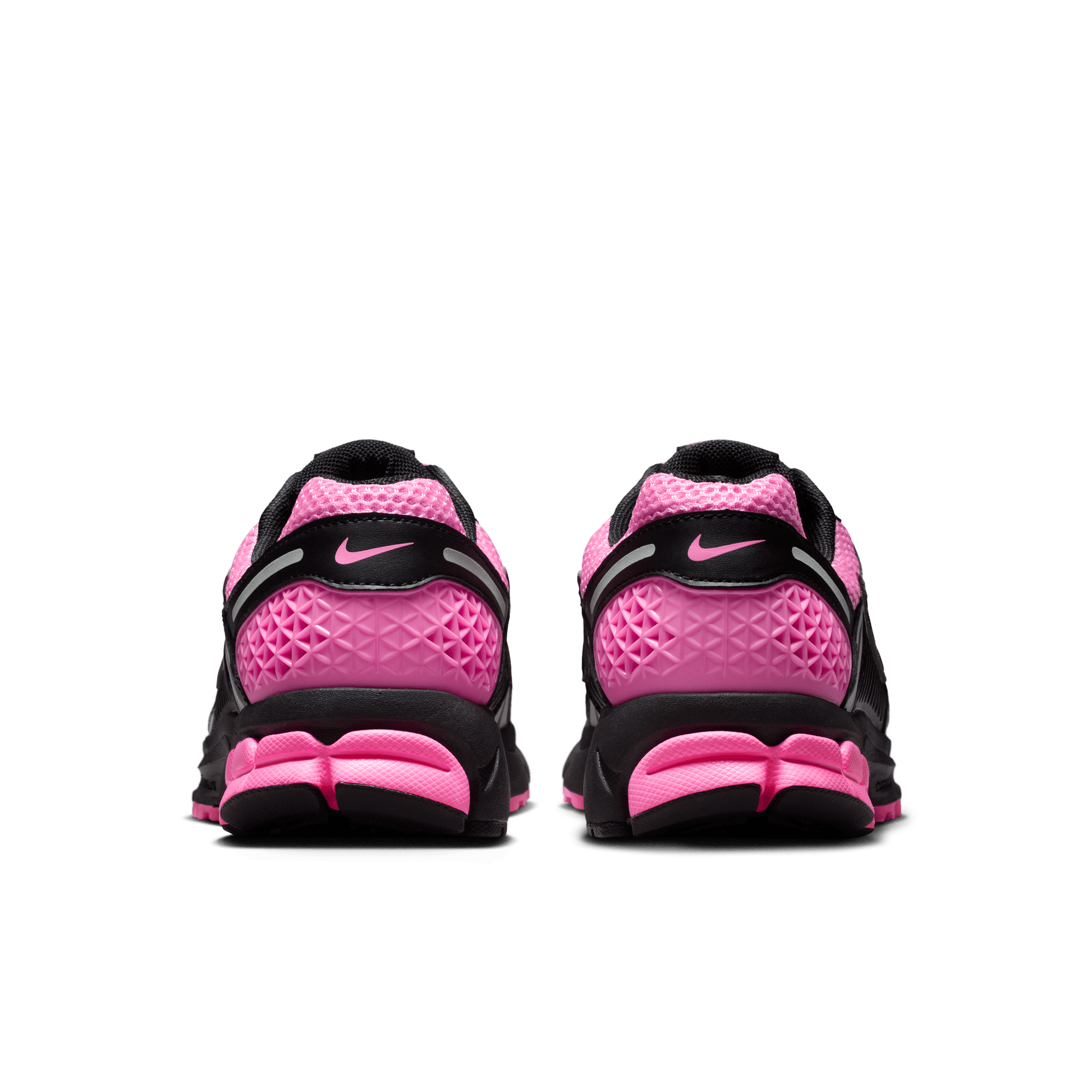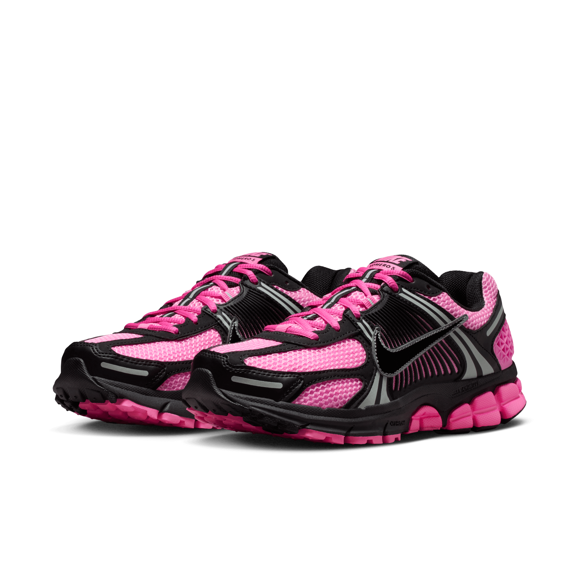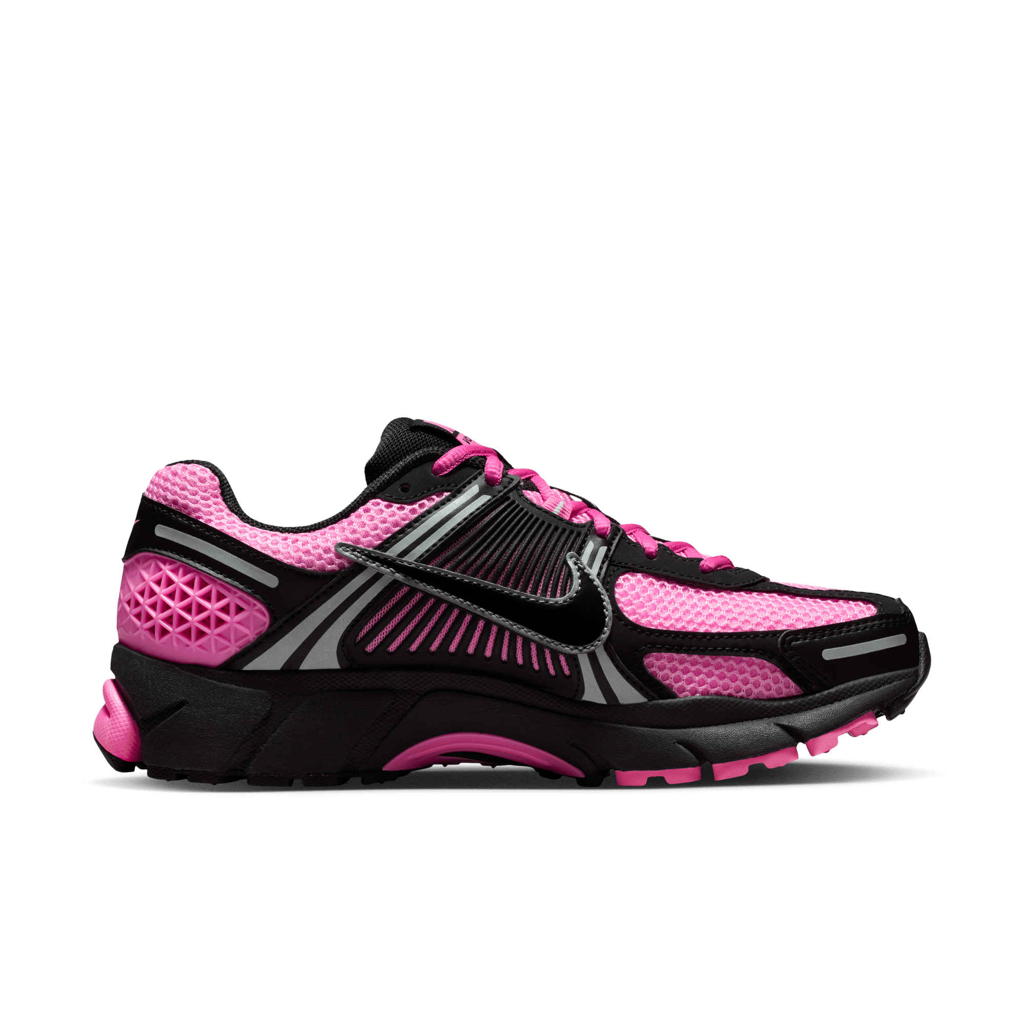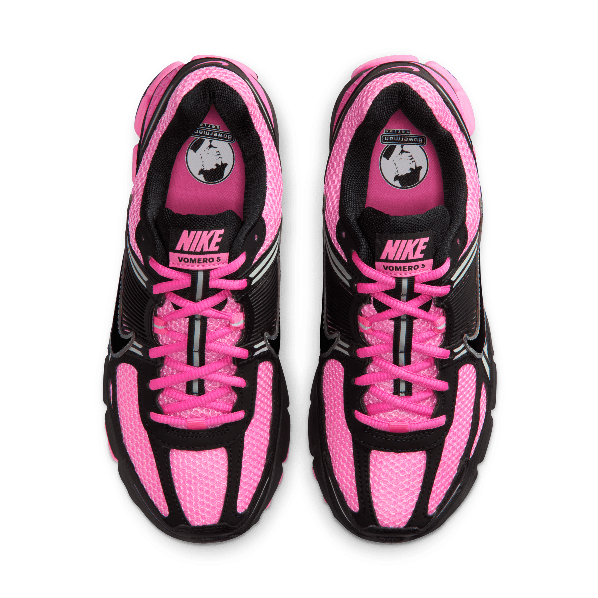 The classic 2010 runner is back in a bold fall colorway that truly marries lifestyle and tech with the WMNS Zoom Vomero 5 "Pink Spell/Black. Originally released in 2010, the Zoom Vomero 5 is renowned for its nearly unmatched comfort, with two separate Zoom Air units in the heel and forefoot providing pillowy soft cushioning. This vivid colorway is built from a bright pink mesh upper with black TecTuff leather overlays and swoosh, pink laces and lining, and silver accents throughout. The shoe features black TPU side panels, 3M reflective details, a Bob Bowerman graphic on the insole, and a tonal 3D printed lattice-like air ventilation panel on the heel. A pink Zoom Air midsole and a black and pink waffle outsole completes the design.