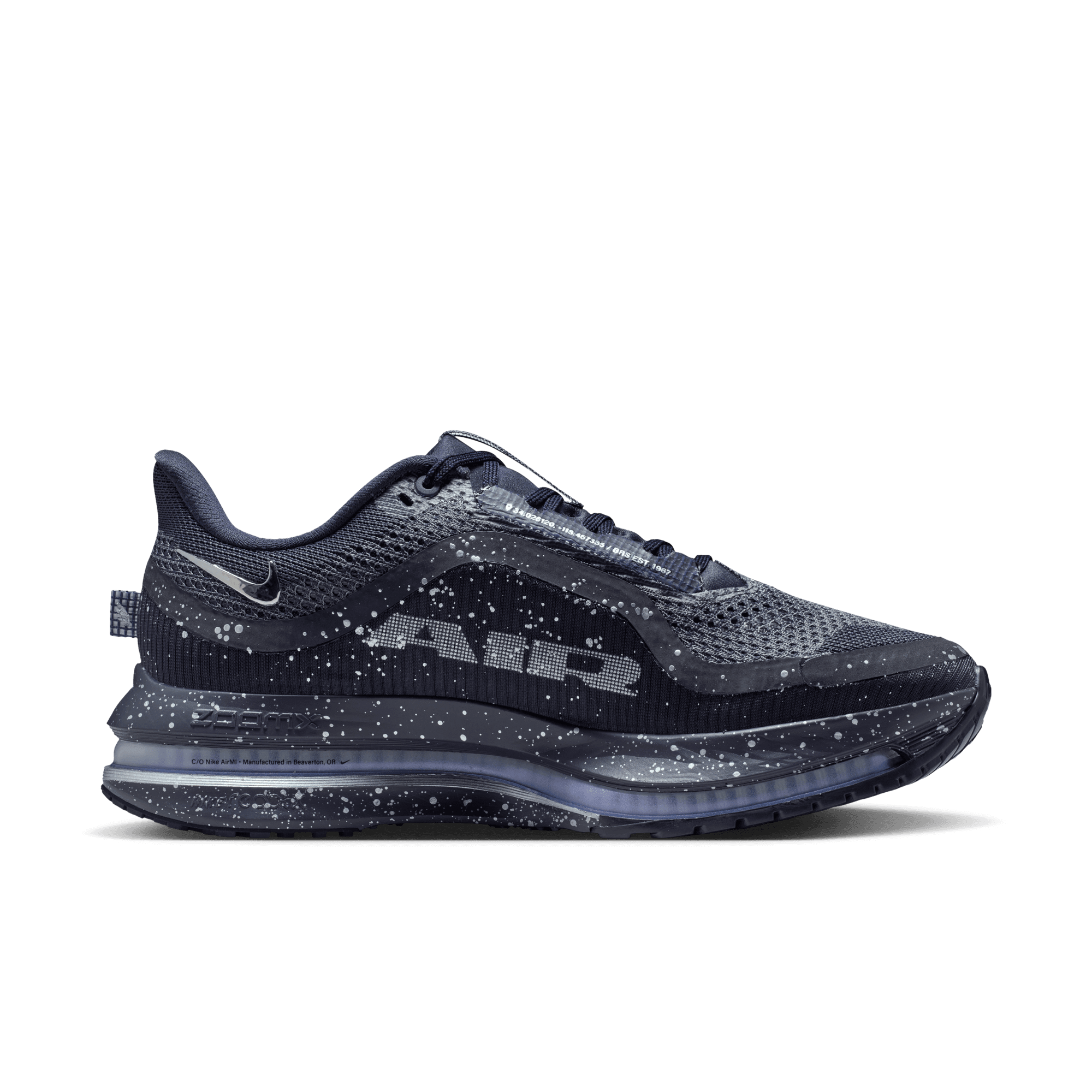 Nike upgrades one of their most cherished legacy runners with cutting edge tech and style on the WMNS Pegasus Premium SE "Cave Purple". This new version of the classic silhouette is supercharged with responsive cushioning courtesy of a speckled triple stack of Nike's most powerful running technologies: ZoomX foam, a sculpted Air Zoom unit and ReactX foam. A purple, stretchy, circular knit mesh and darker purple, more tightly woven mesh are separated by a rubberized overlay and silver swoosh, with silver speckles covering the entire bottom half of the shoe. Silver branding, a full-length purple Zoom Air midsole and reflective elements throughout the upper and a modified waffle outsole completes the design.