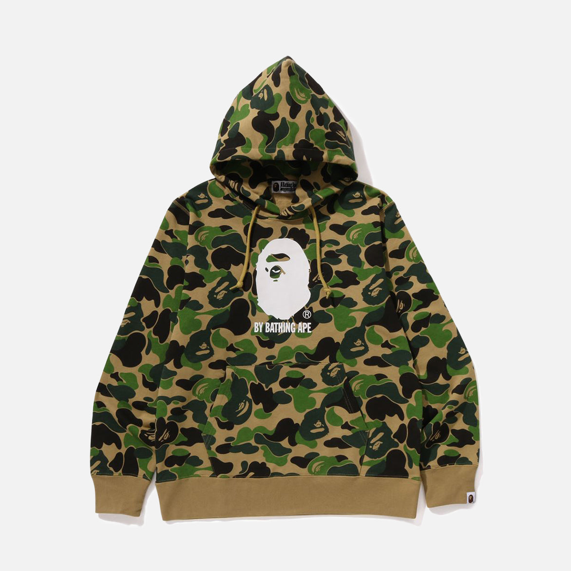 Explore the latest pieces from BAPE's popular ABC CAMO collection, merging practicality with style to upgrade your streetwear. This fleece-lined pullover hoodie features the iconic ABC CAMO pattern and proudly displays the BY BATHING APE logo on the front. It has a regular fit and includes a kangaroo pocket for added convenience.