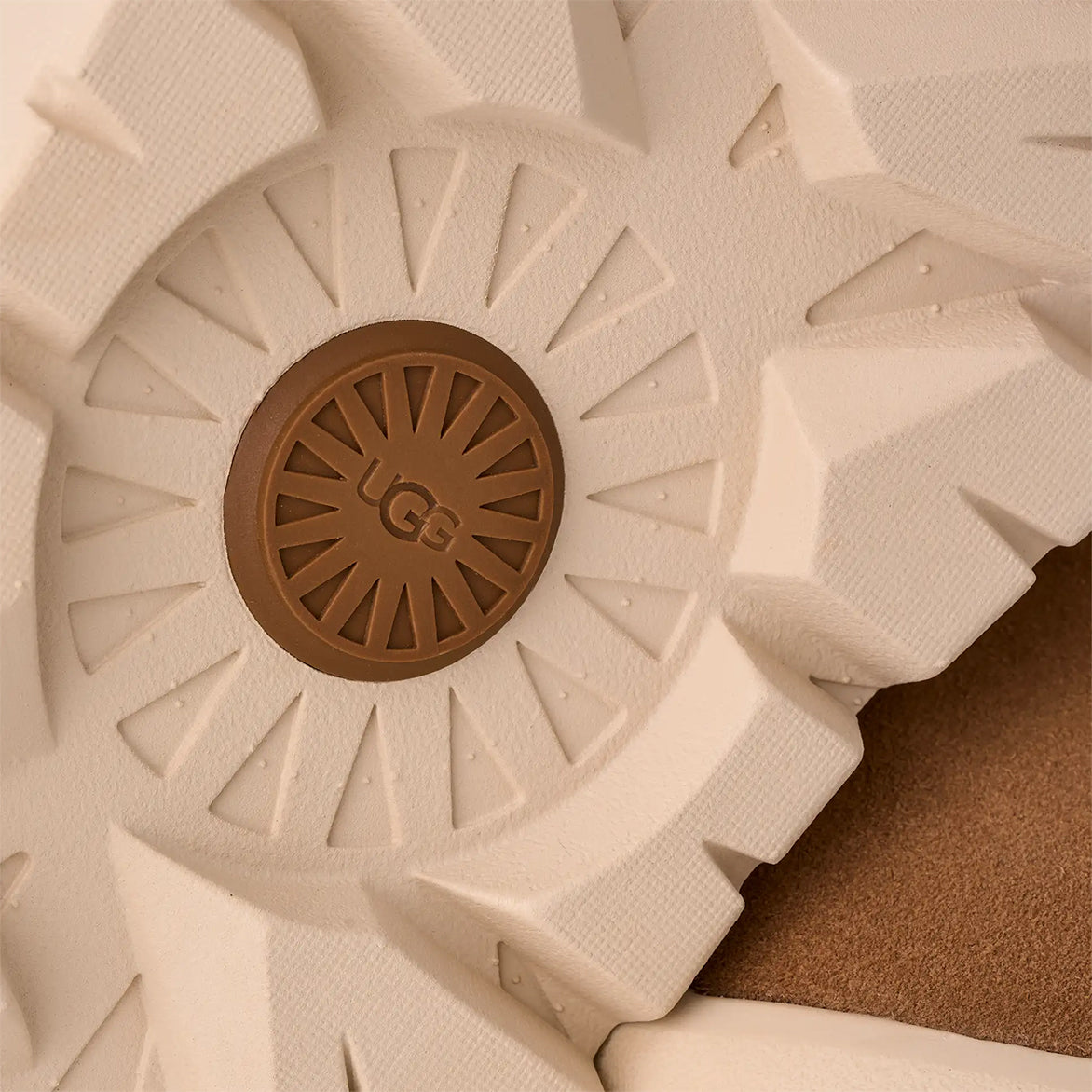 Soft yet durable, iconic yet effortless, our Heritage Utility Mini brings chunky lugs to the iconic Feel of UGG®. The intentionally slouched upper is crafted with genuine suede made for nonchalant styling. It features our cozy UGGplush™ lining and insole, while the lightweight sugarcane EVA outsole is inset with durable Spider Rubber® Pods for superior traction.