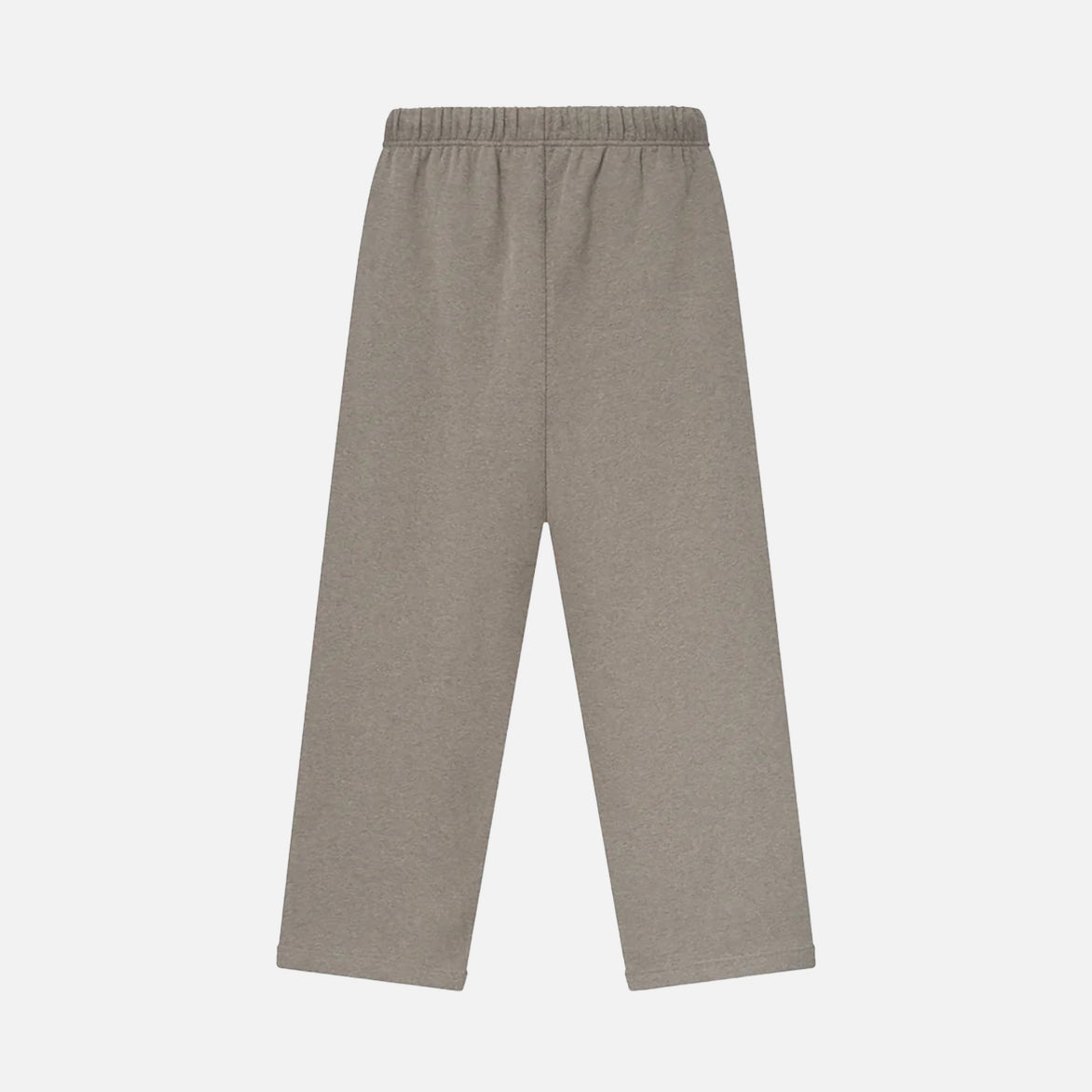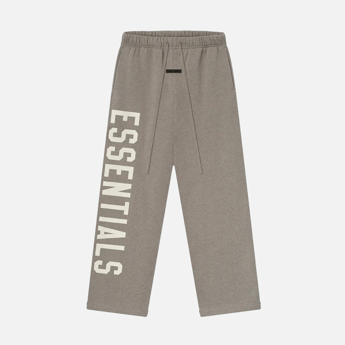The Lounge Sweatpant is crafted from 380gsm core fleece, offering both body and structure. The fit is designed with oversized proportions for voluminous drape throughout. A bold "ESSENTIALS" logo is screen-printed down the leg. Additional details include an encased elastic waistband and bottom hem, elongated drawstrings, and side seam pockets. The front center showcases a rubberized label bearing the" Fear of God Essentials" logo.