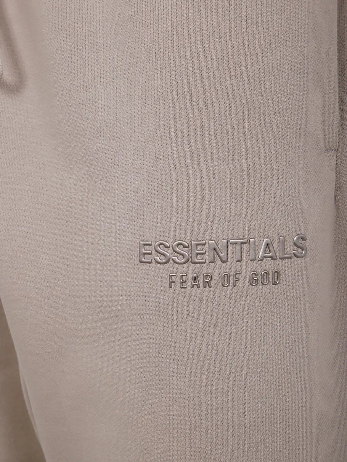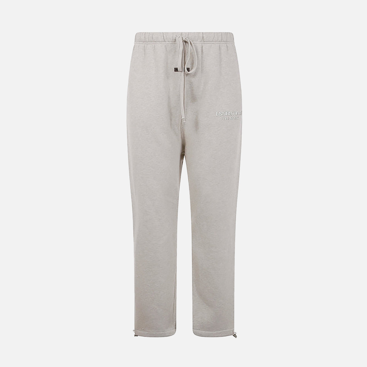 The Relaxed Sweatpant is made from 380gsm 80% cotton/20% polyester core fleece. The piece is designed with a relaxed straight leg fit for ideal drape and comfort. The embroidered "Essentials" logo is placed on the leg, while a "Fear of God Essentials" rubberized label is situated at the center front. Key features include side pockets, ankle bungee, and an encased elastic waistband with drawstrings for adjustability.