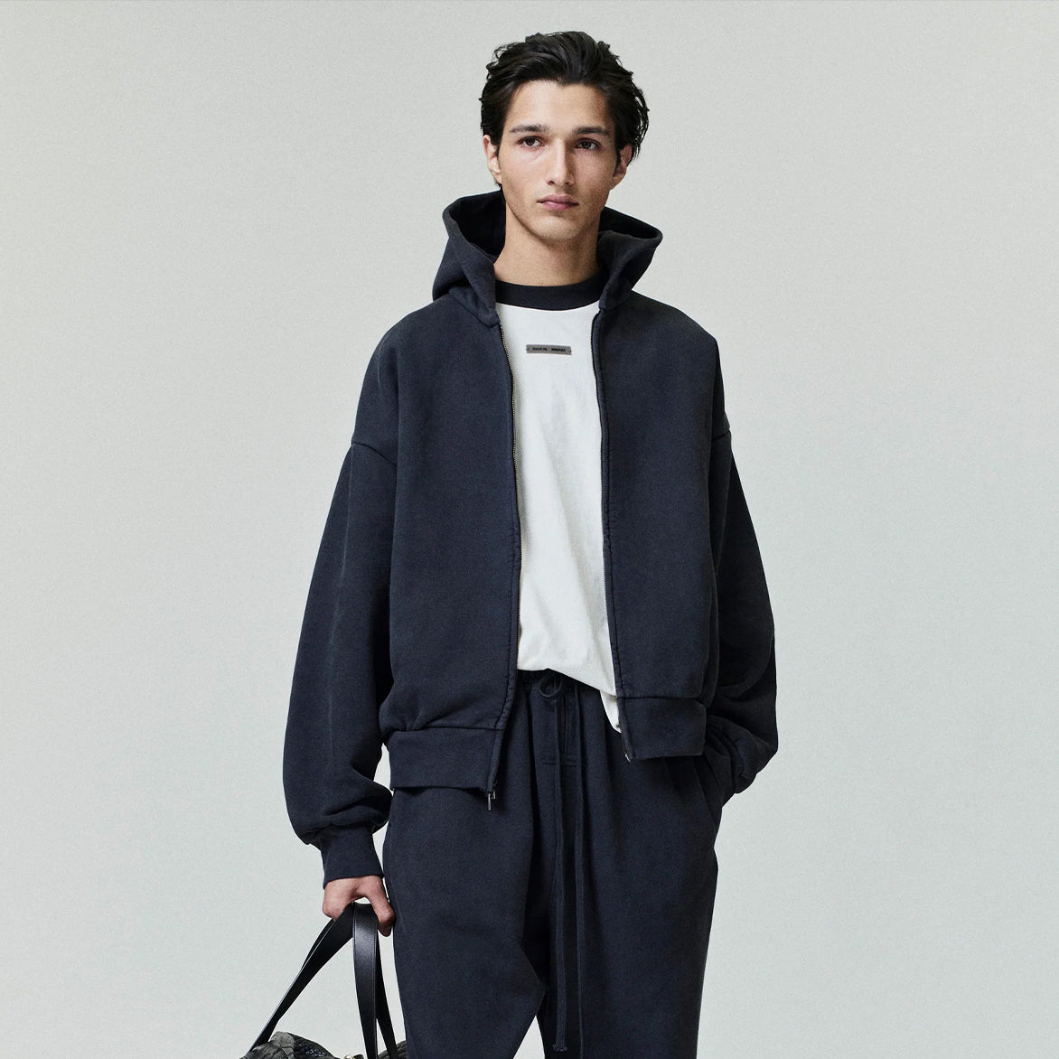 The Classic Fleece Full Zip Hoodie is crafted from 520gsm heavy fleece and treated with a pigment dye to create rich depth of color. Its classic silhouette is defined by an embroidered Fear of God Essentials logo on the back. Details include side pockets, rib-knit cuffs, and waist-hem. A Fear of God Essentials rubberized label stitched at the back collar.