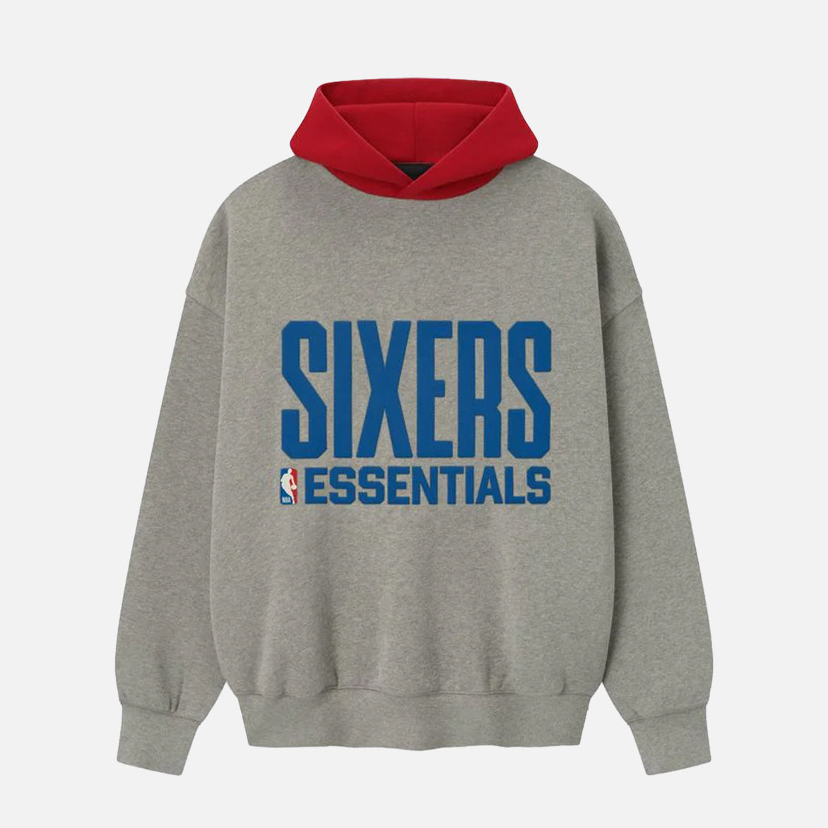 The Sixers Sport Hoodie is crafted from 805 cotton/20% polyester fleece, offering an elevated balance of softness, structure, and lasting comfort. Cut in a relaxed sport fit, it drapes with more ease through the body and extended length compared to the Essentials classic silhouette. The front features a bold puff-print graphic "Sixers Essentials " alongside the authentic NBA logo, while the back showcases the official Philadelphia Sixers graphic logo. Additional features include contrasting hood, side pockets, rib-knit at the cuffs and waist hem. The signature rubberized Fear of God Essentials label accents the hood.