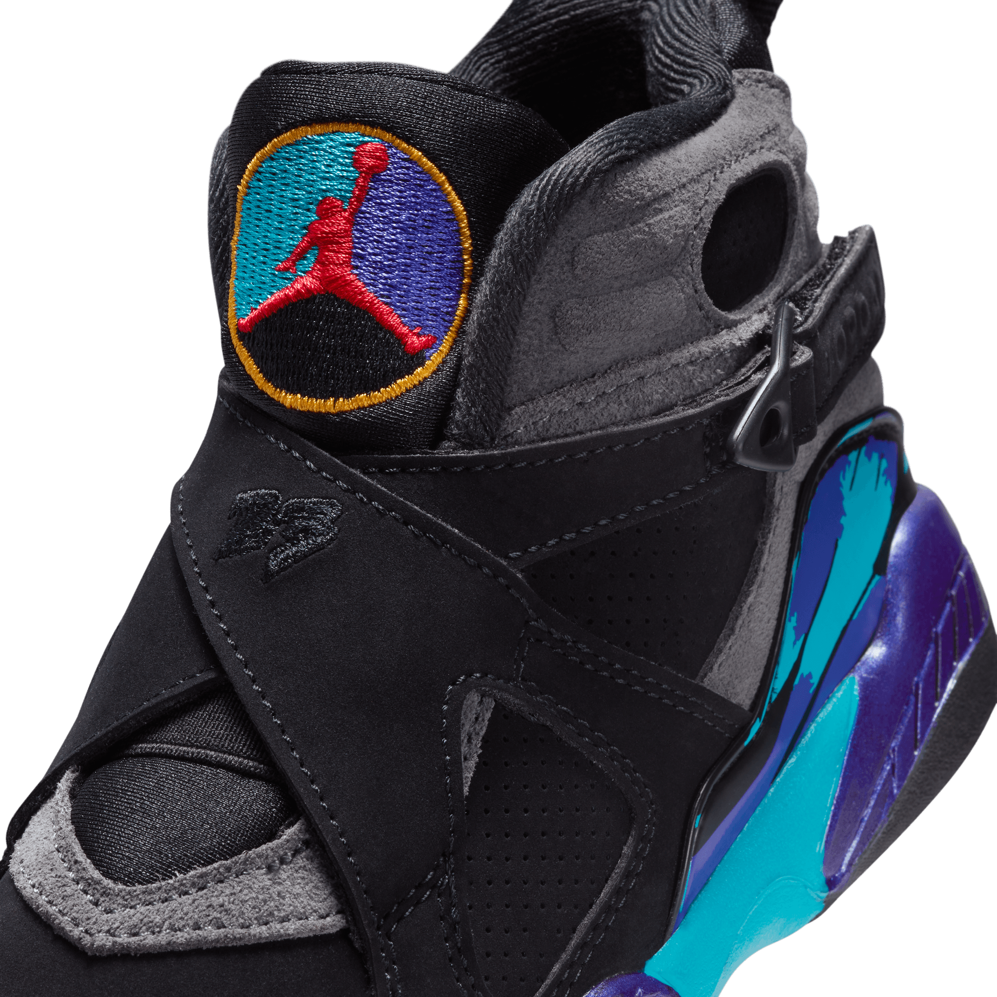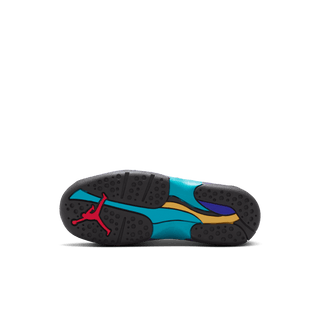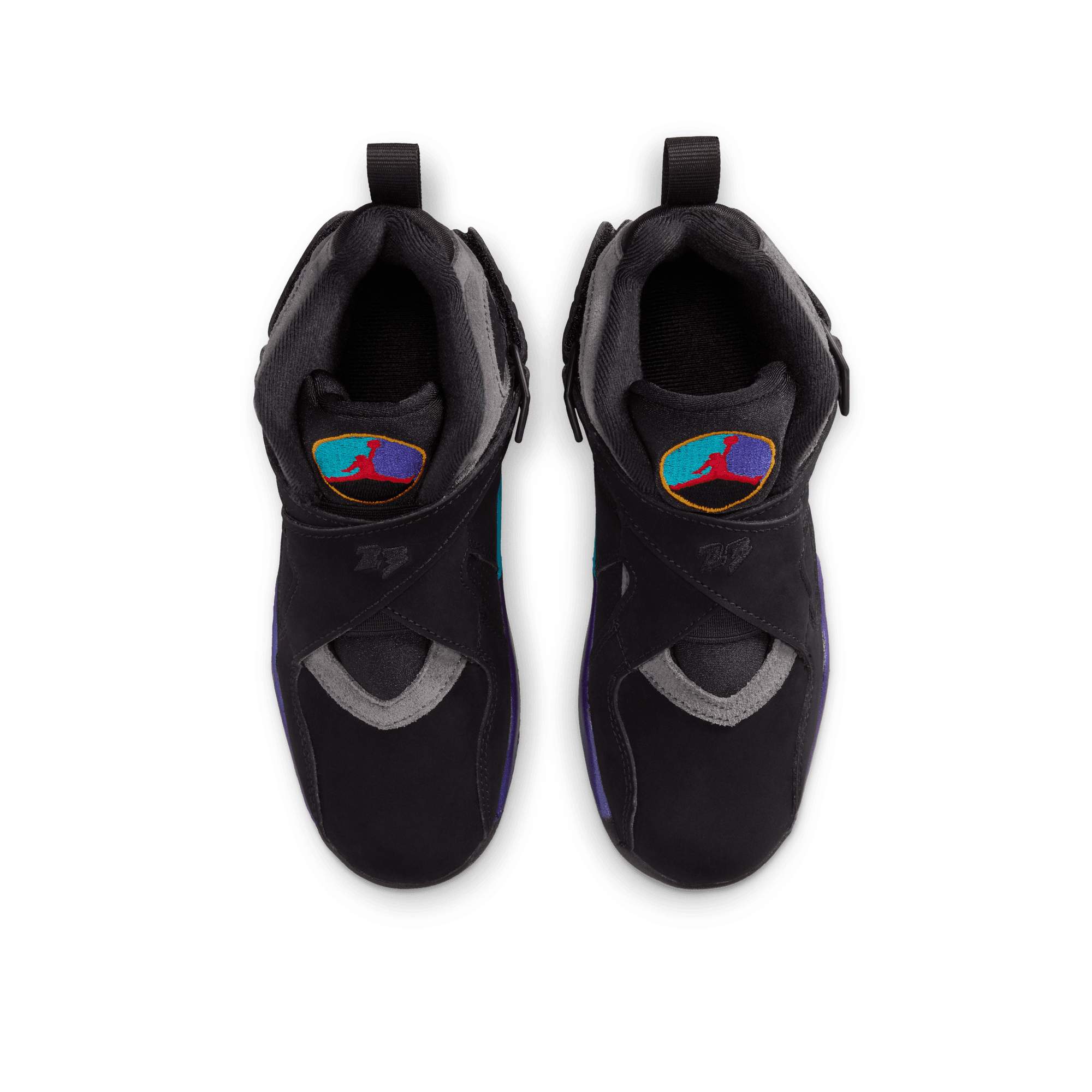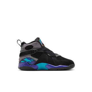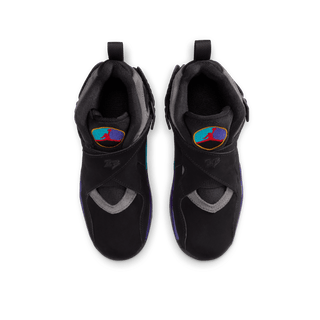 One of the most revered OG colorways is back on shelves for the first time in ten years with the return of the Air Jordan 8 Retro "Aqua". Back in effect for the first time since 2015, this new version of the "Aqua" stays true to the original with a black and flint grey nubuck upper augmented with a totally `90s aqua and concord color splash on the mudguard and midsole. Classic Air Jordan 8 elements like the multi-color chennille tongue logo and the cross straps are still as crucial as they were in 1993, while a multi-color patterned insole and outsole finish off this crucial reissue.