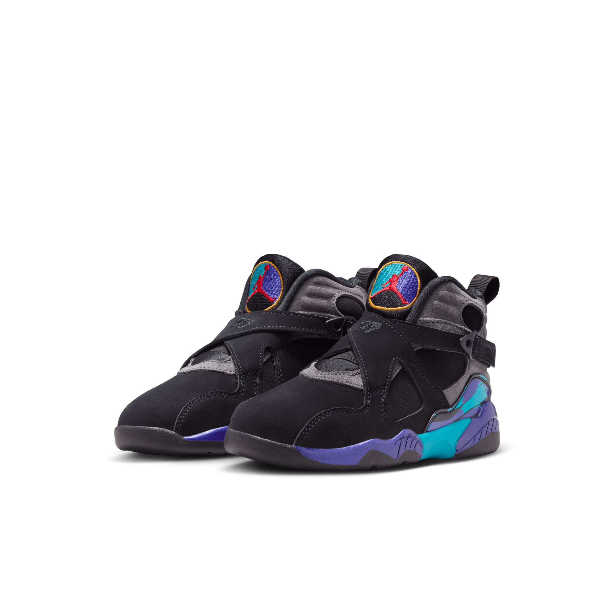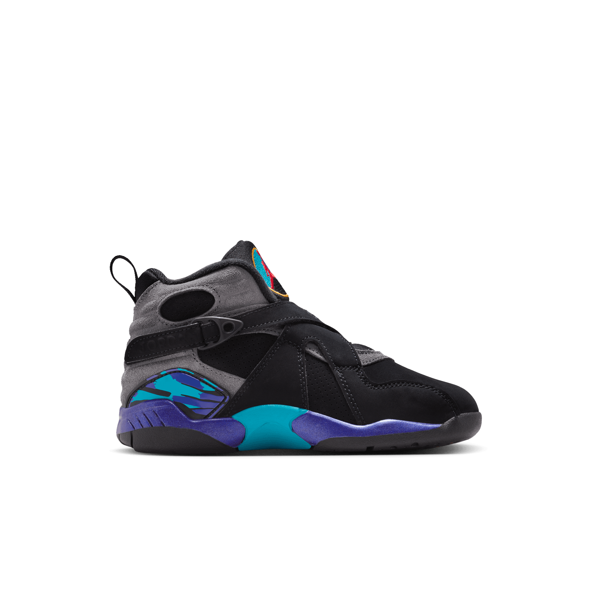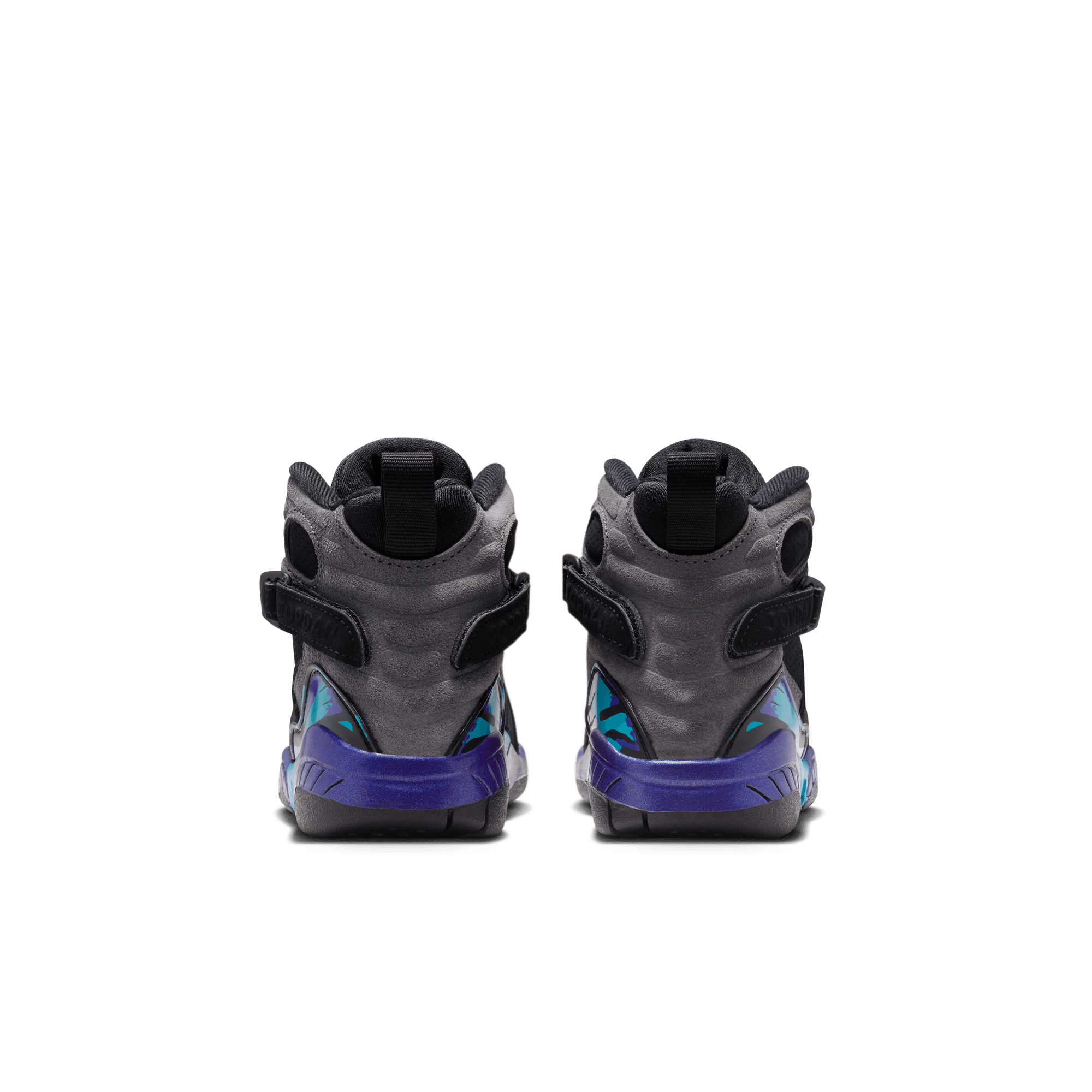 One of the most revered OG colorways is back on shelves for the first time in ten years with the return of the Air Jordan 8 Retro "Aqua". Back in effect for the first time since 2015, this new version of the "Aqua" stays true to the original with a black and flint grey nubuck upper augmented with a totally `90s aqua and concord color splash on the mudguard and midsole. Classic Air Jordan 8 elements like the multi-color chennille tongue logo and the cross straps are still as crucial as they were in 1993, while a multi-color patterned insole and outsole finish off this crucial reissue.