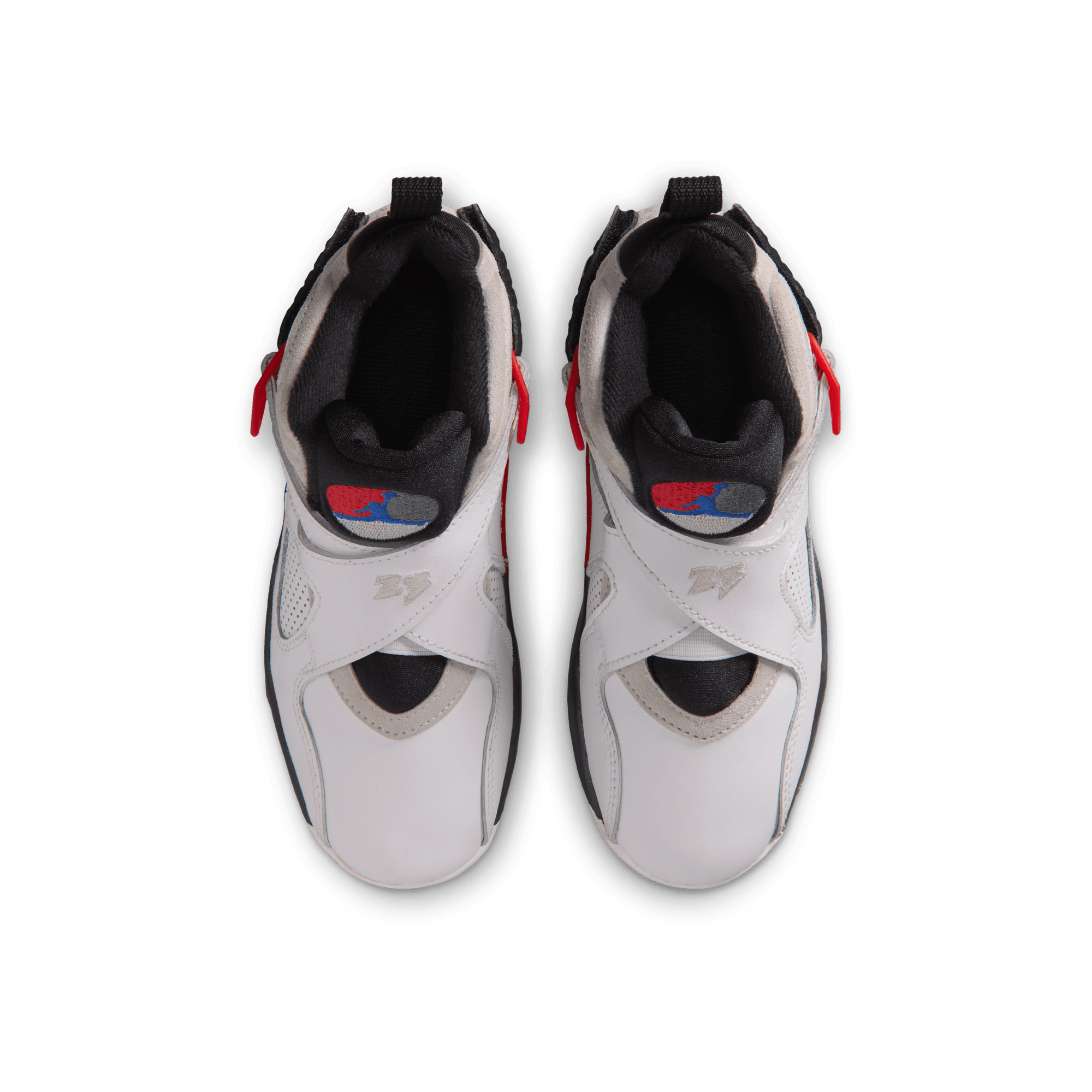Jordan Brand says "Merry Christmas, Doc," with the return of one of the most beloved OG colorways of all time: the Air Jordan 8 Retro "Bugs Bunny". Back for the first time since 2013, this new version of the "Bugs Bunny" stays true to the original that Jordan debuted during the second half of the '92-'93 season. The smooth, mini-perforated, white leather high-top upper features a grey suede overlay on the heel and collar; red, white and black abstract color splash on the mudguard and outsole; and a graphite Air midsole. Classic Air Jordan 8 elements like the multi-color chennille tongue logo and the cross straps are still as crucial as they were in 1993, while the signature multi-color patterned insole finishes off this fan-fave reissue.