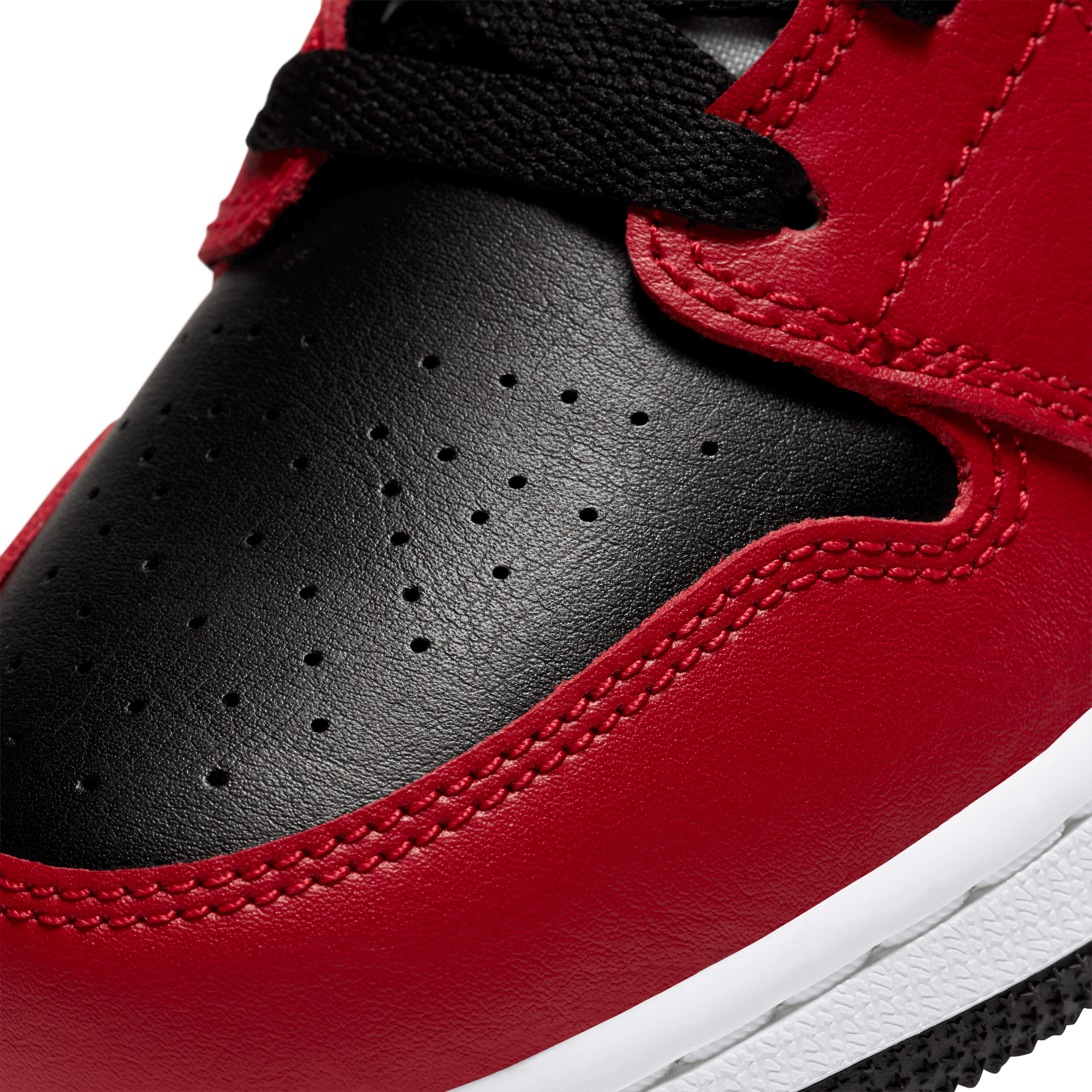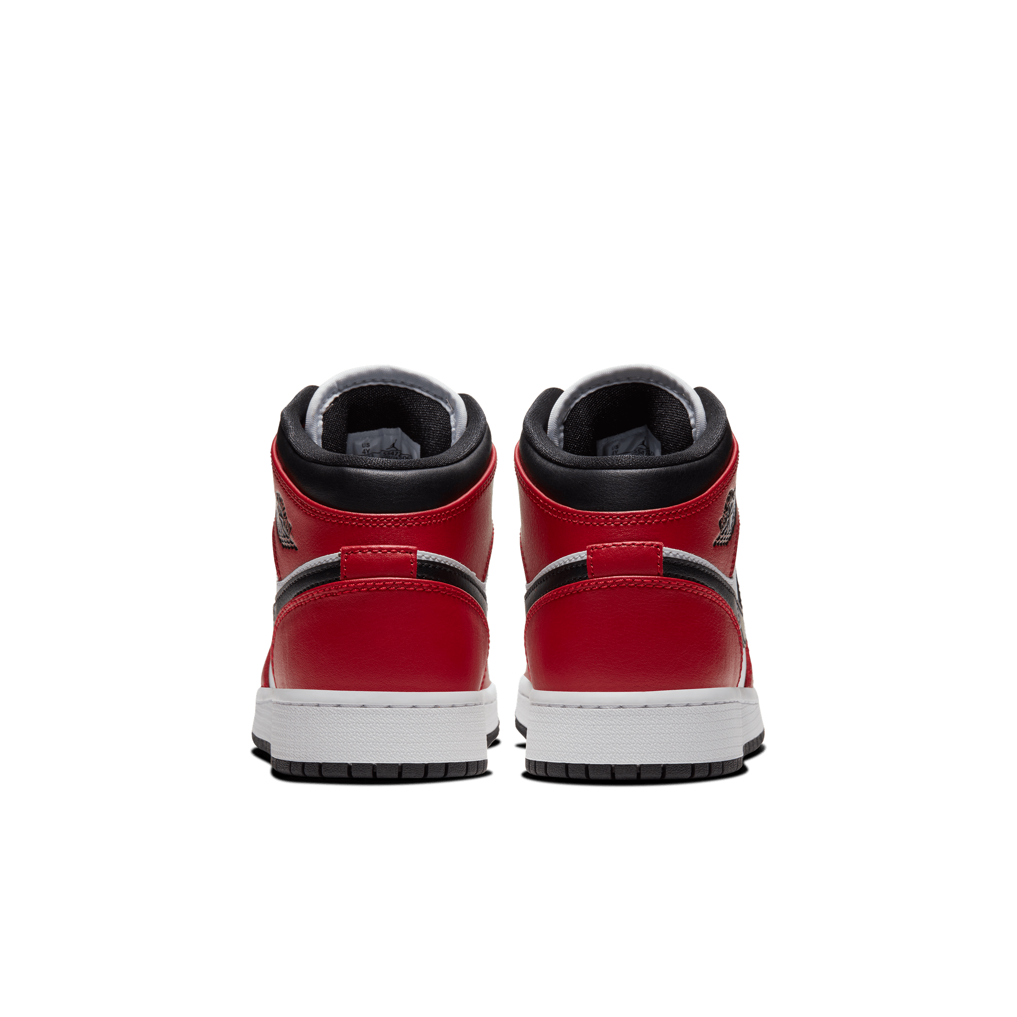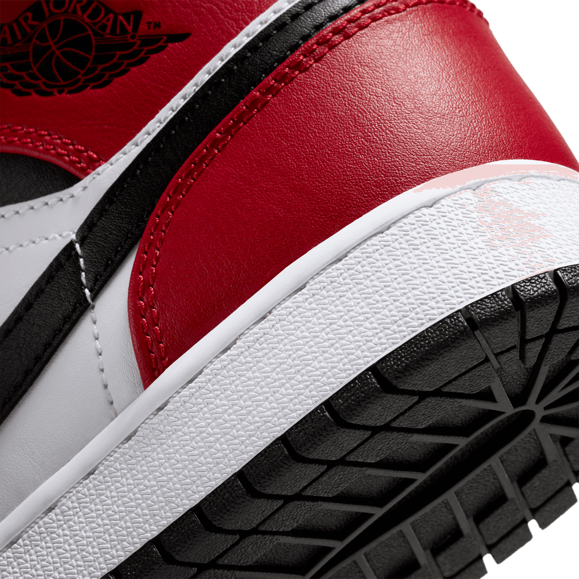 Two iconic OG colorways of the original Air Jordan combine to form another classic Bulls-inspired look on the Air Jordan 1 Mid "Chicago Black Toe". This mid top version of the classic silhouette takes the classic "Chicago" blocking of red overlays on smooth white leather with a black swoosh and collar, and adds the the signature "Black Toe" of a black toe box and red cap. Black branding on the red tongue tag and Wings logo, black laces, and lining, white midsole and black rubber outsole finish off the historic look.