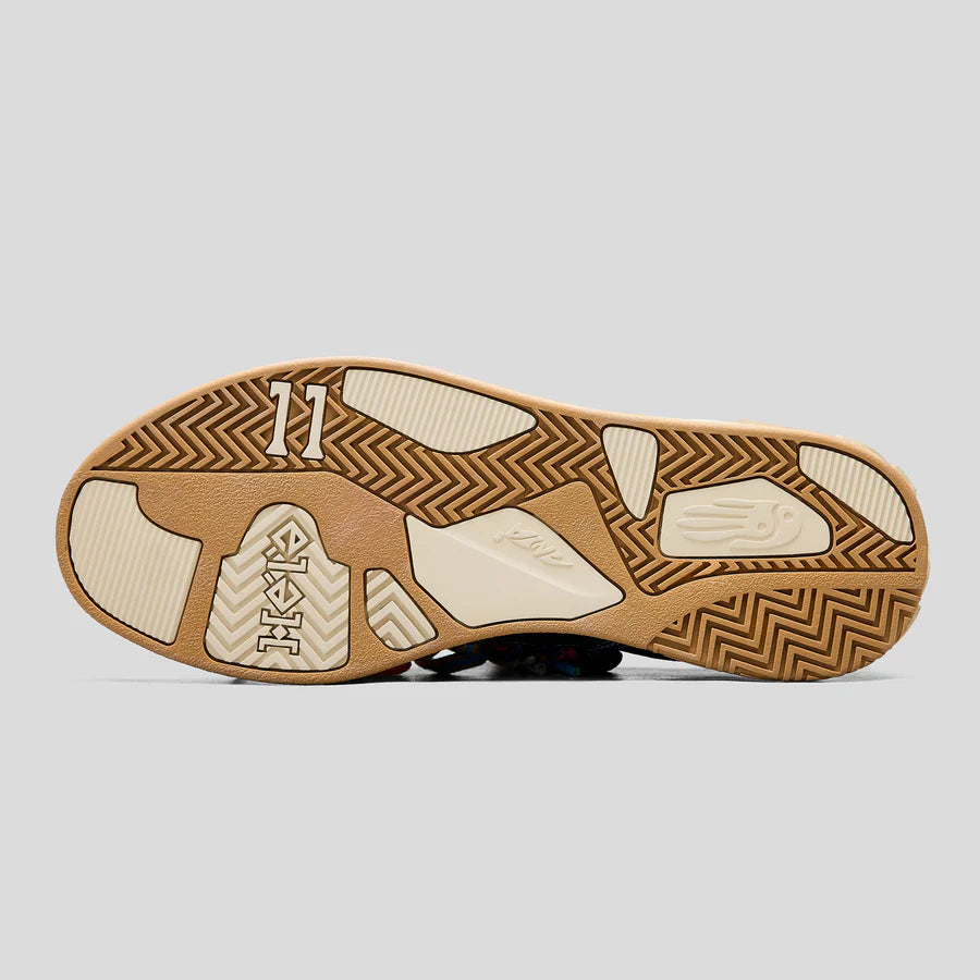 Kyrie Irving brings his artistry from the court to the street with a fusion of heritage, love, and versatility crafted for everyday style: the ANTA Kai 1 Hélà Style "Roots". Designed exclusively for Kyrie, this signature lifestyle sneaker that balances elegance and impact while paying homage to Kyrie's native American roots. The upper is crafted from premium suede split cow leather with personal touches throughout like KAI's shield on the toe, embroidered signature on the tongue, metallic "KAI's Code" badge on the side and his embroidered logo on the heel. The multi-layered lacing design symbolizes the nurturing influences that shaped Kyrie's growth, while the four major plates on the sole create the blueprint of Kyrie's ideal world: