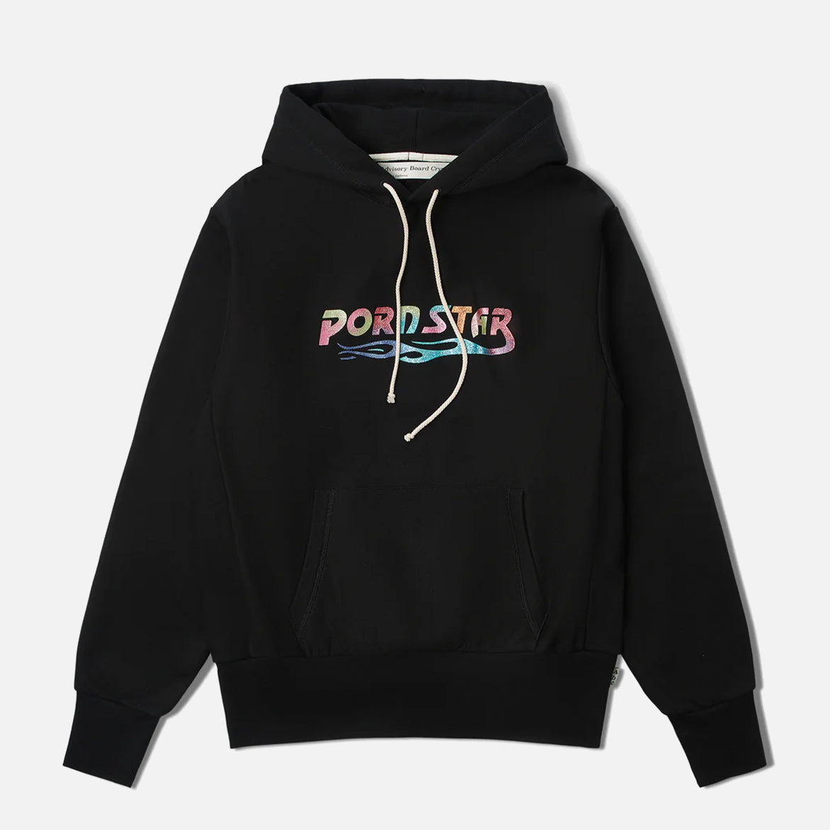 Los Angeles' Advisory Board Crystals transcends traditional streetwear by incorporating spirituality, intentionality and a commitment to wellness into their brand ethos. ABC's Pornstar hoodie is made from heavyweight fleece a multi-color metallic glitter pornstar print on the front. Additional details include drawstring hood, kangaroo pocket, ribbed cuffs and waistband, the signature pulltab and hologram on back neck, woven label with clg code and collection flag labels at side seam.