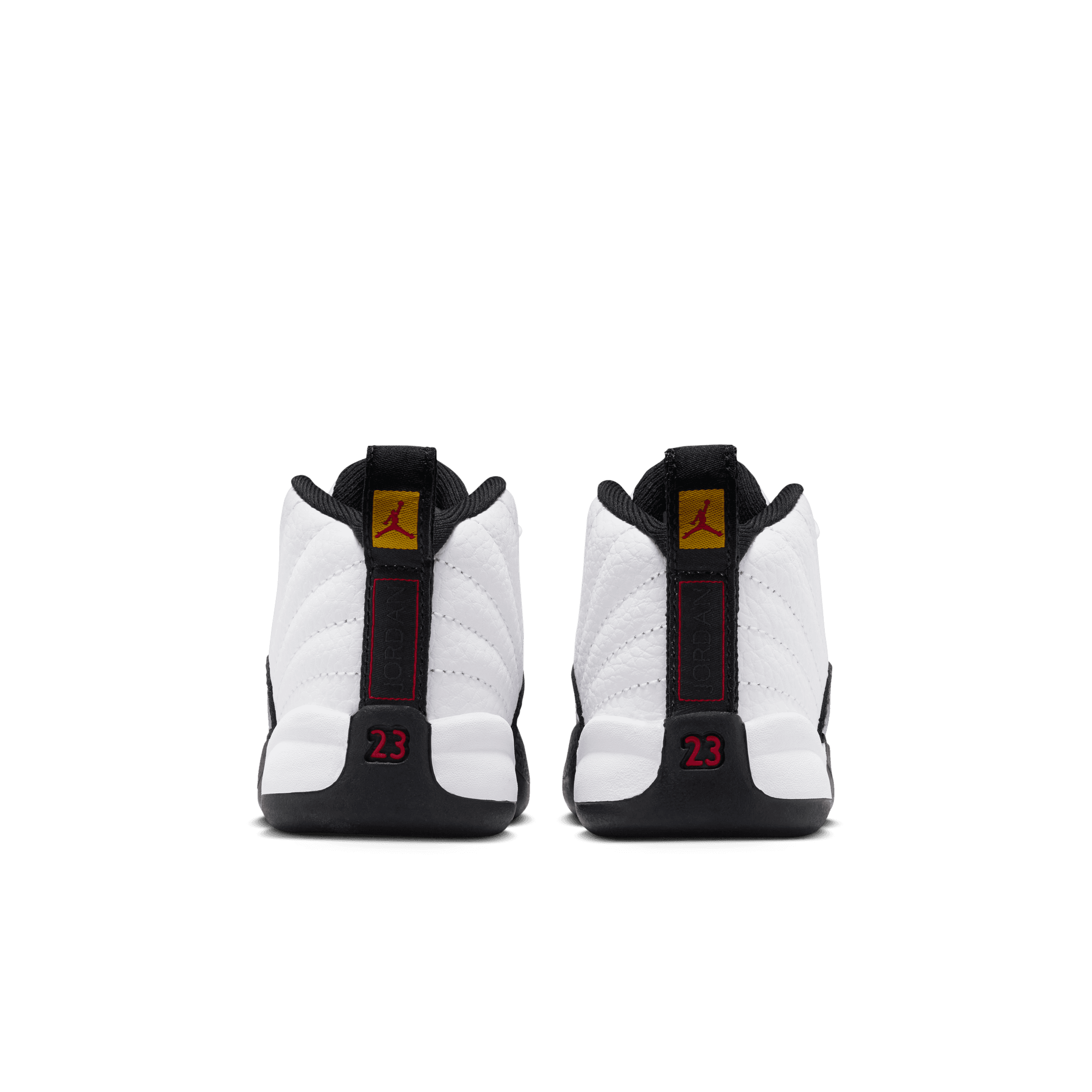 Jordan Brand is reviving one of their most iconic releases of all time for the first time in over a decade with the return of the Air Jordan 12 Retro "Taxi". Originally released in 1996, and last retro'd in 2013, the classic colorway is back in it's clean and classy construction of white tumbled leather upper and black pebbled leather mudguard accented with the signature metallic gold upper eyelets. Gold and red branding hits the black woven heel strip, while a black embroidered Jumpman and "TWO 3" on the tongue handle the branding. White laces and lining, black midsole, red Jumpman on the toe and 23 on the heel, yellow carbon fiber shank and a black rubber outsole complete the design.