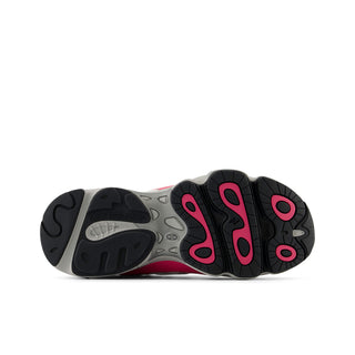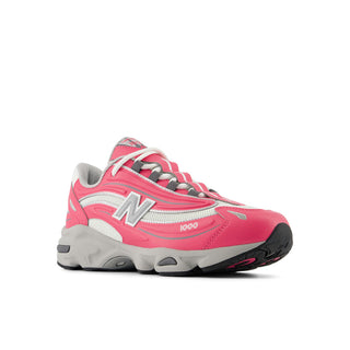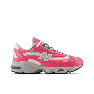New Balance continues the return of the 1000, an archival running style originally released in 1999, with brand new kids' sizing. This Dragon Berry version of the 1000’s innovative streamlined design features a performance-inspired honeycomb mesh upper in white mesh overlaid with swooping red leather panels, for a tech-inspired look that is equal parts sleek and rugged. White mesh accents hit the heel and tongue while a grey jewel-like 'N' logo on the sides, silver embroidery on the tongue tag, heel and 1000 on the front quarter handle the branding. The sculpted grey midsole features ABZORB cushioning in the heel and forefoot, with a Stability Web midfoot shank and black rubber outsole.