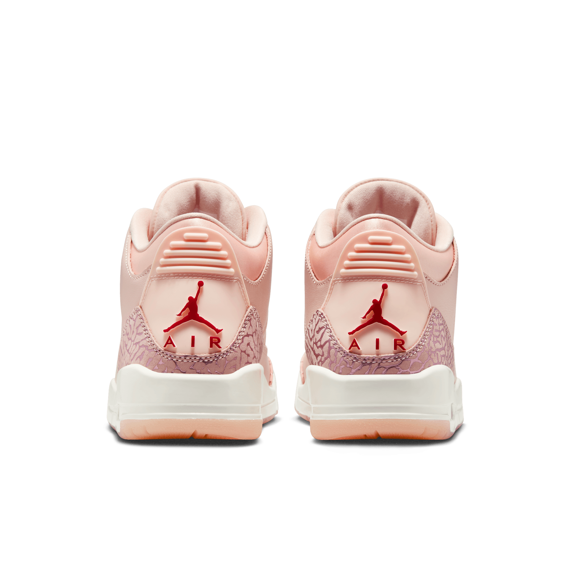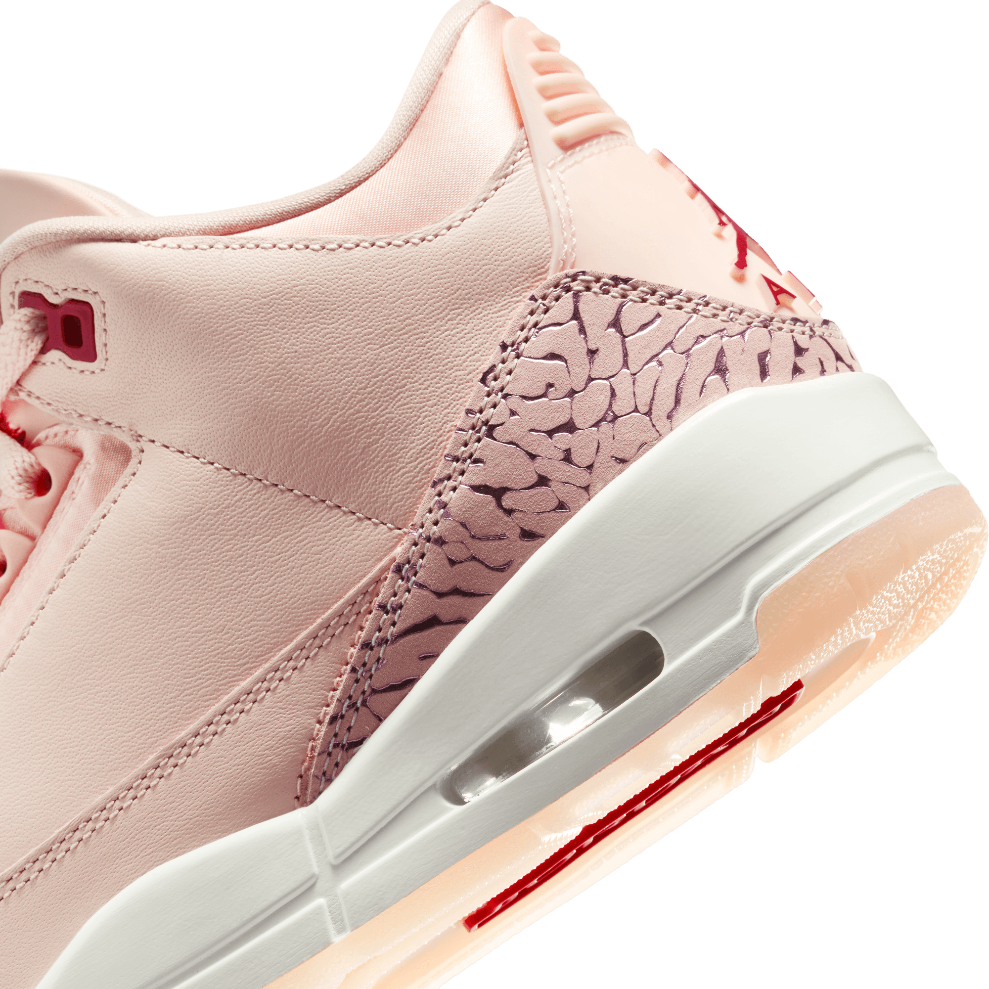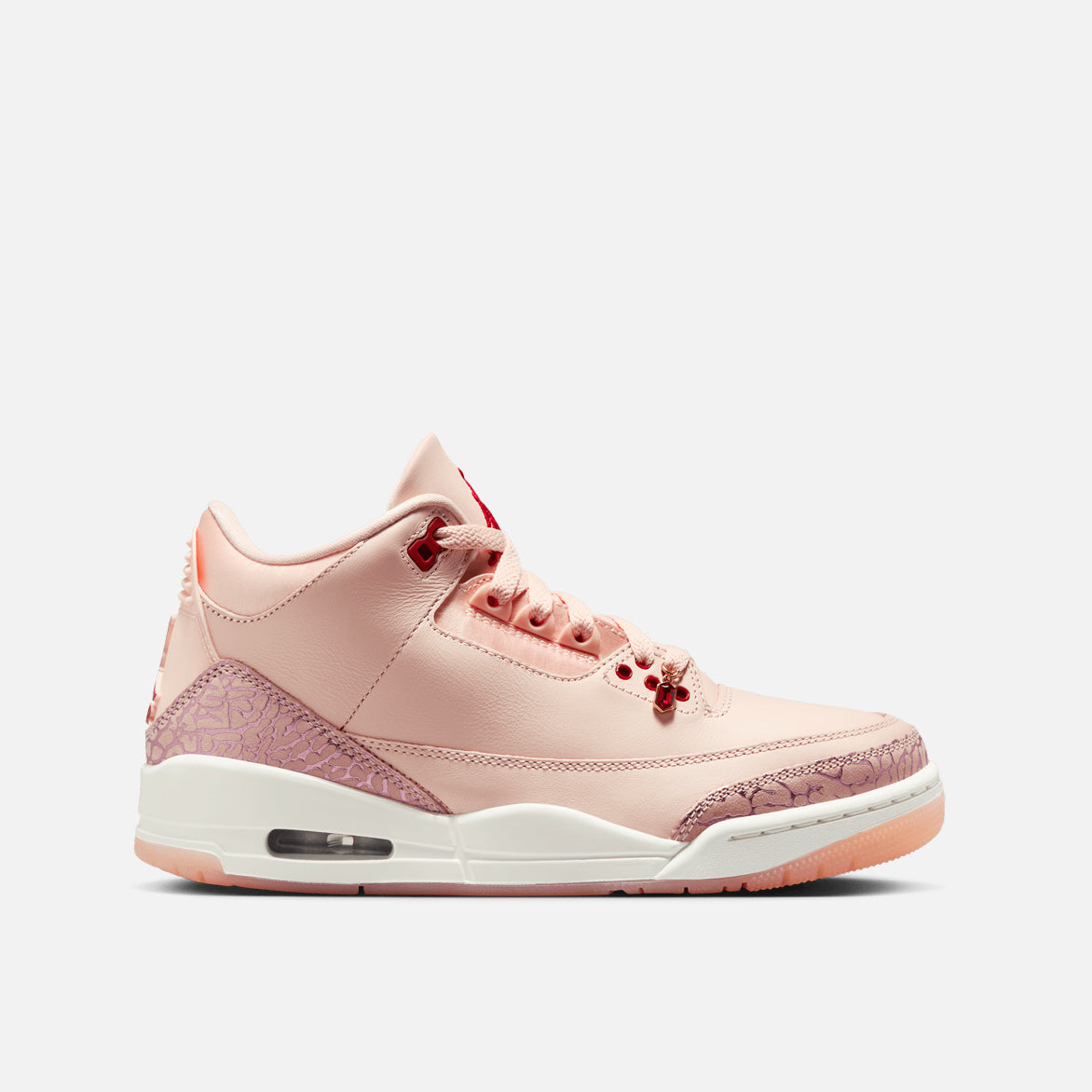 Jordan Brand brings all the charm and romance of Valentine's Day to its latest women's exclusive on the WMNS Air Jordan 3 Retro "Treat Yourself". The iconic silhouette is built from a soft pink leather upper with dark pink elephant print overlays on the toe and heel that feature pink metallic detailing. Red branding hits the tongue and heel, with gold and garnet-like charms hanging from the pink laces being the standout feature. A white midsole and semi-translucent pink outsole finish off this holiday-themed release.