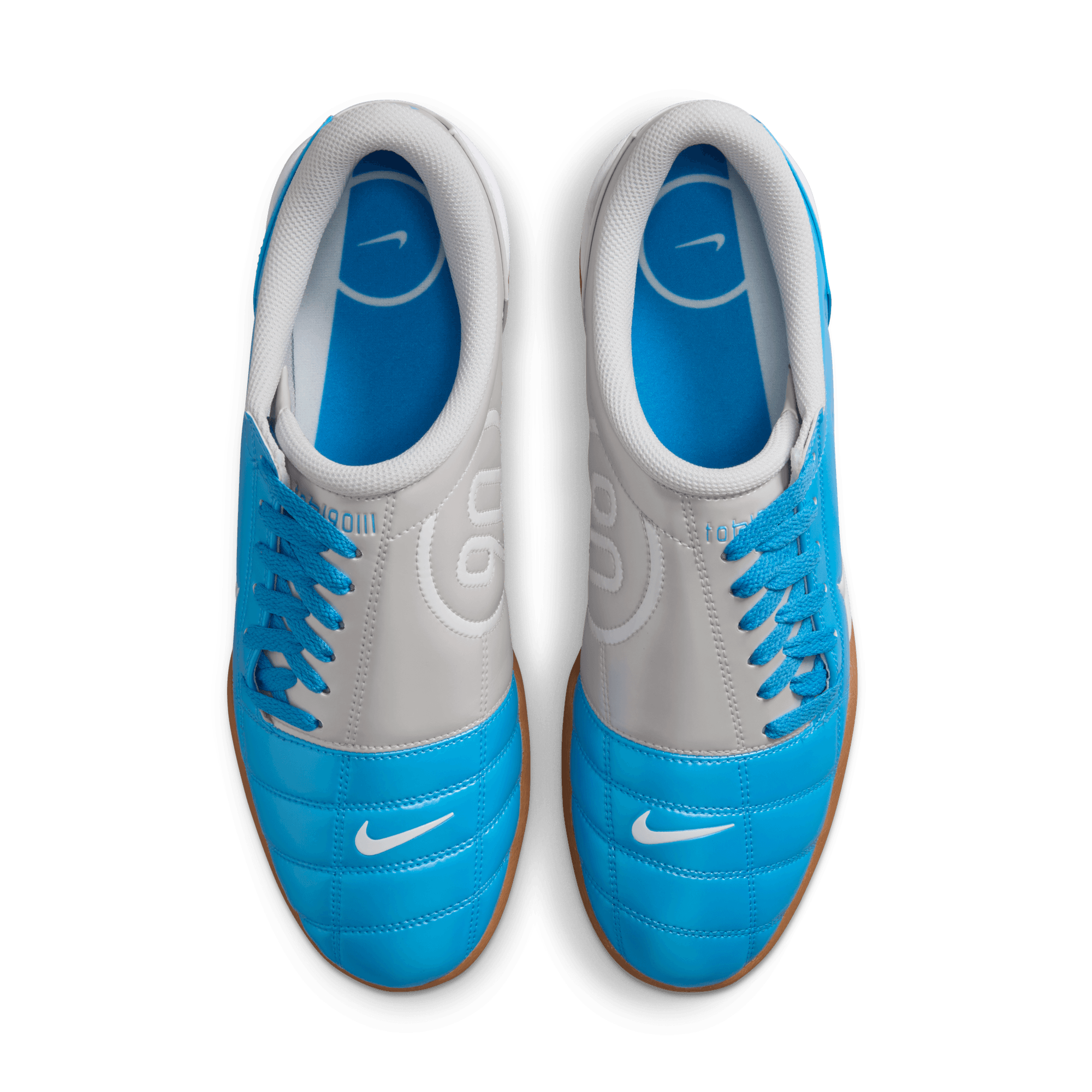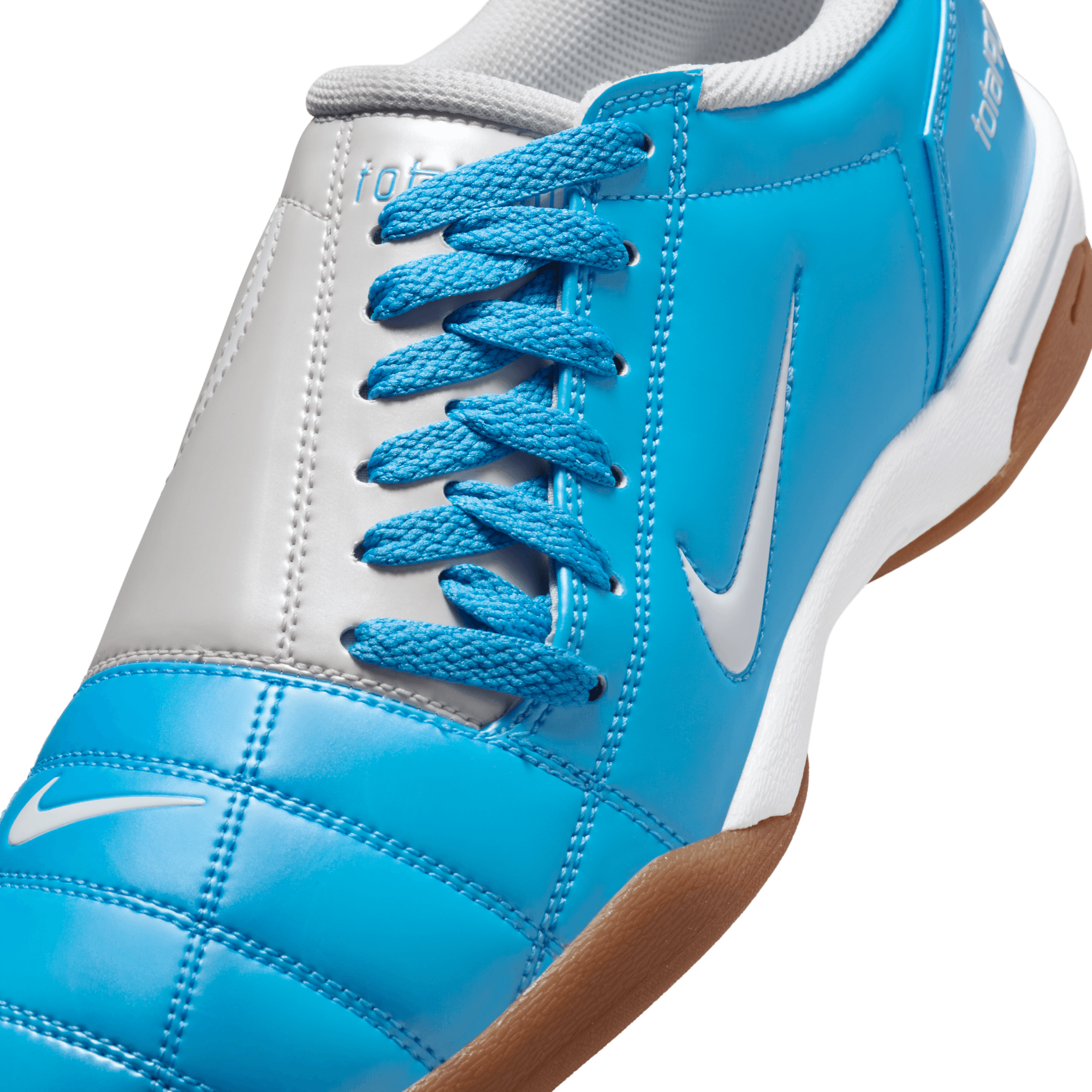 Nike remakes a Y2K soccer superstar into a lifestyle option with the Total 90 SP "University Blue". Born on the pitch in 2000, the Total 90 left a lasting legacy on the beautiful game. Now it's back and ready for the street with authentic soccer style, reloaded for today. This modern edition swaps out the cleats for a flat, gum rubber sole but keeps the iconic quilted upper and asymmetrical lacing of the original. Smooth baby blue and grey leather combine on the upper with white branding for a UNC-like look along with blue laces and a grey lining.