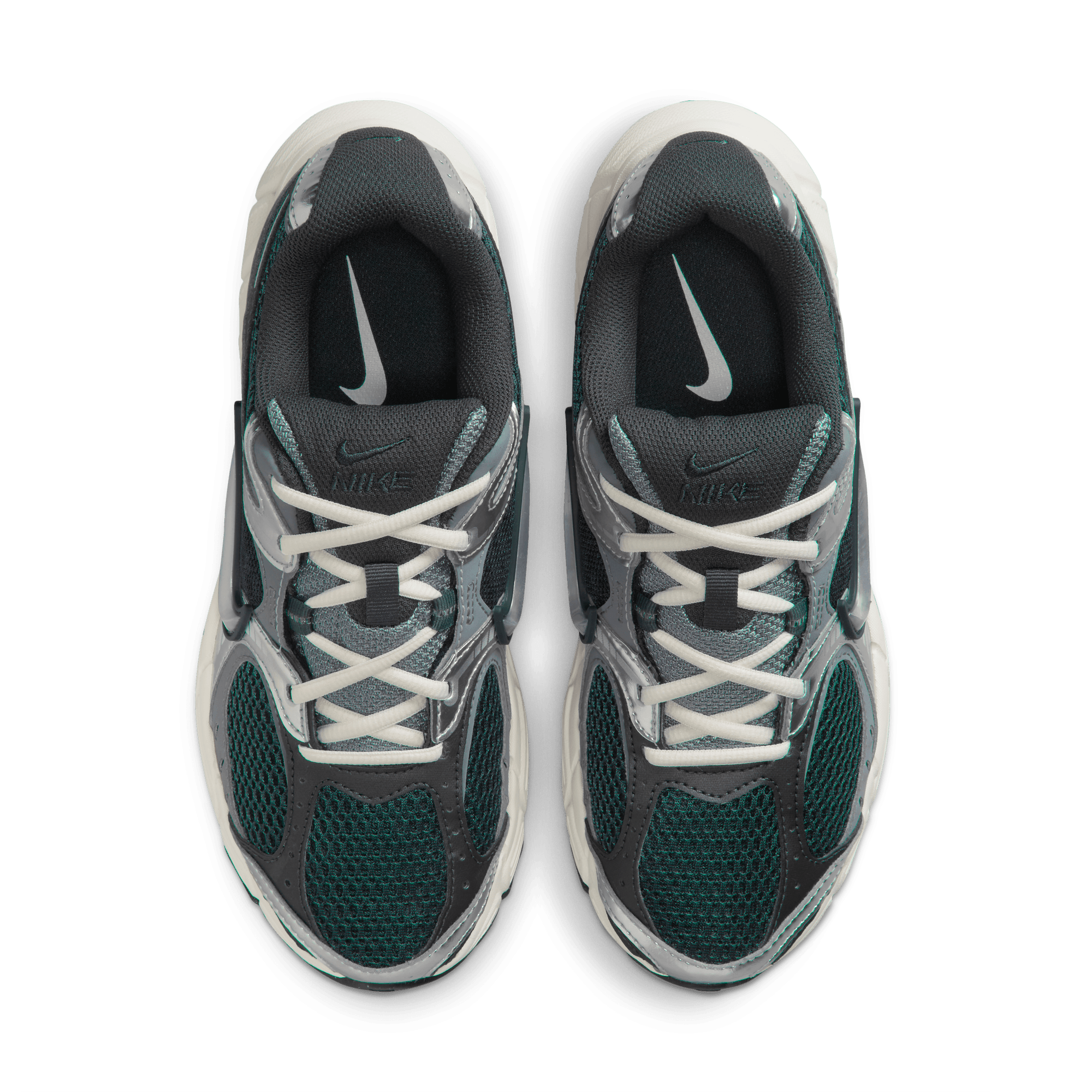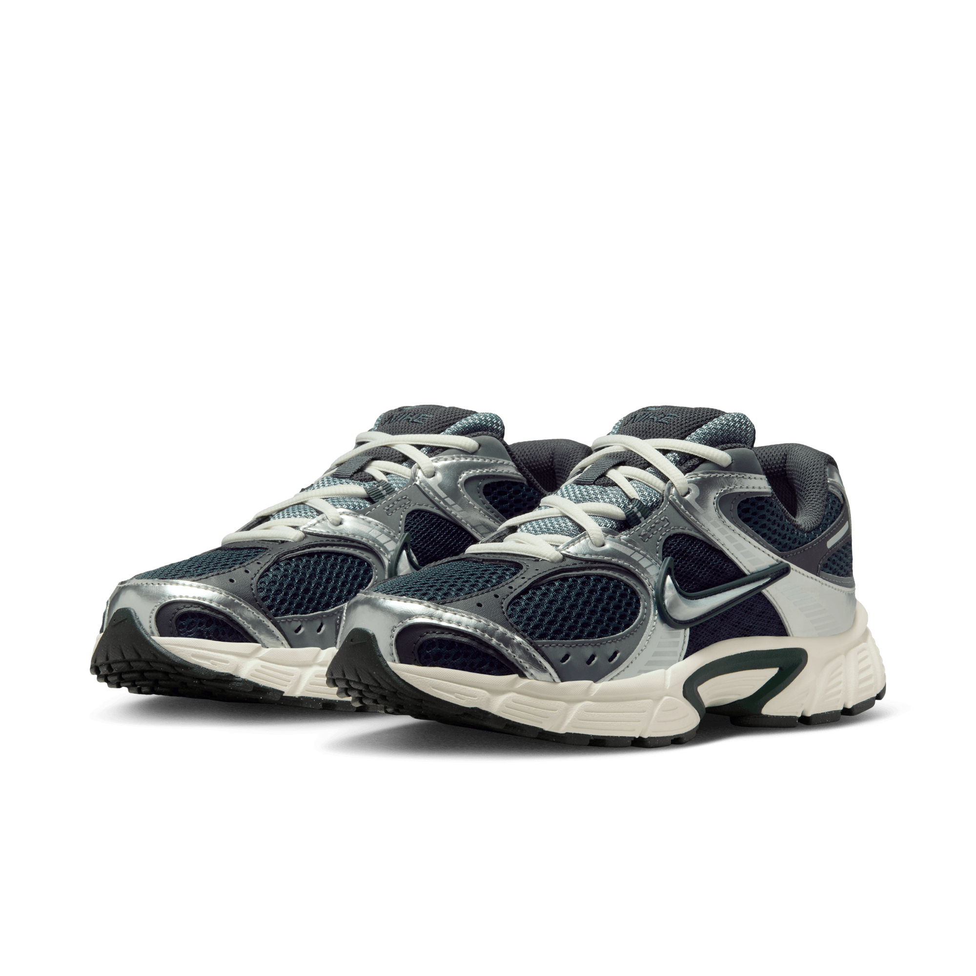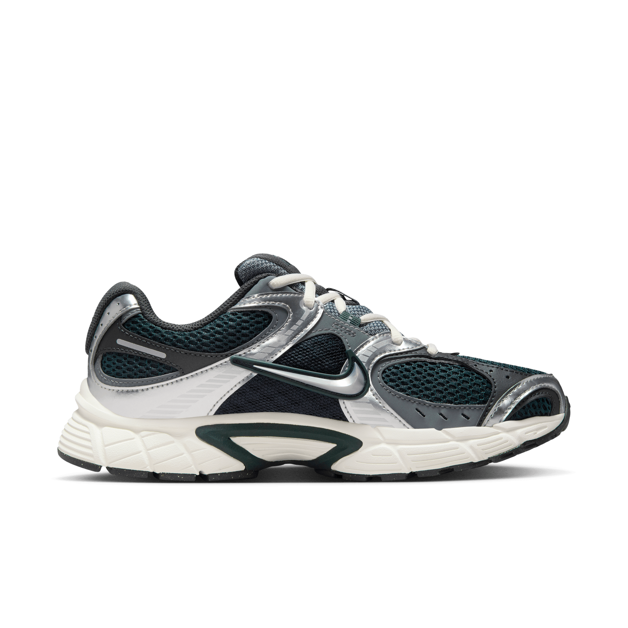 Nike's new running model taps into the 2000s tech runner aesthetic with loads of comfort on the V5 RNR. Staying true to its Y2K roots, the WMNS V5 RNR pairs a breathable and durable mesh upper with synthetic leather overlays on top of foam midsole that's chunky yet lightweight. Metallic details throughout, a 3D Swoosh logo, embroidered tongue and heel branding and a black rubber outsole with '00s-inspired grooves complete the design.
