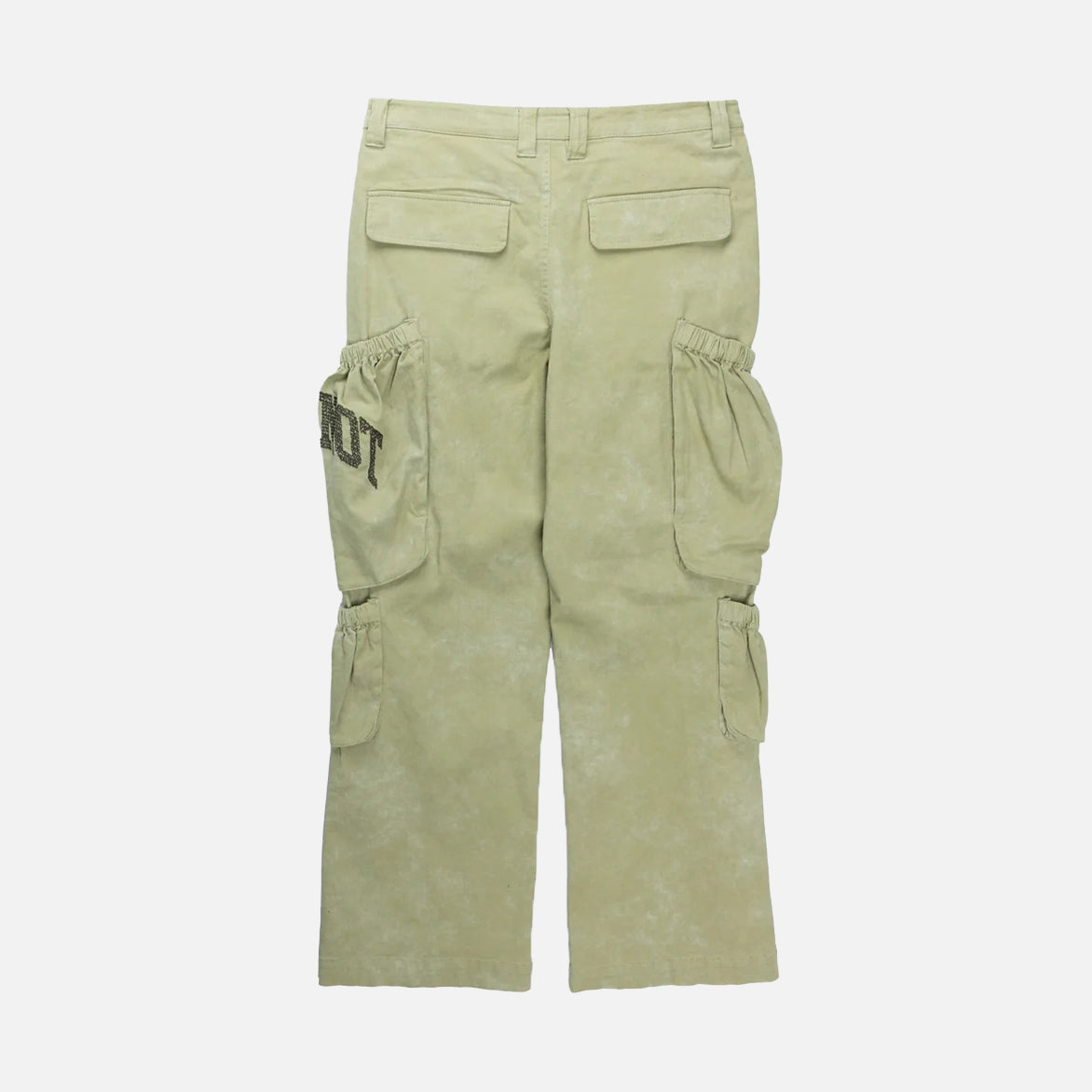 Honor the Gift, founded by Russell Westbrook in 2016, is rooted in creativity, fashion, self-belief, and the concept that no matter where you come from you can reach wherever you want to go. The Twill Cargo Wide Leg pants are 97% cotton/3% spandex baggy fit cargo pants in a green marbled wash with double elasticated cargo pockets, zipper fly, shank button and embroidered Why Not branding on the large cargo pocket.